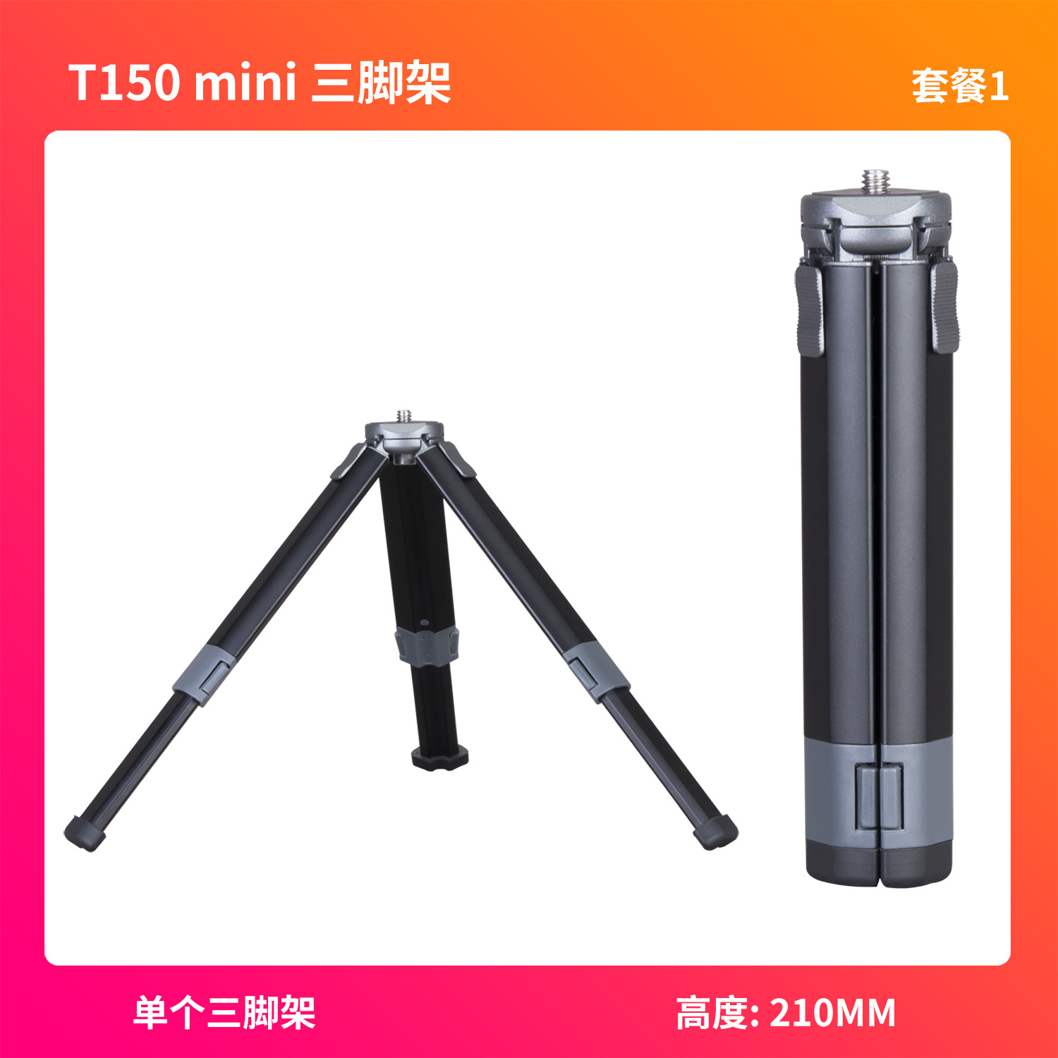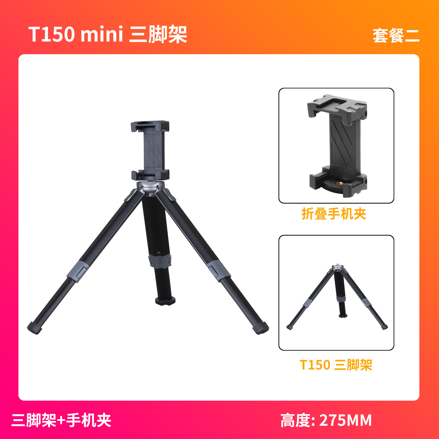 • T150-단일 삼각대 + 휴대폰 클립