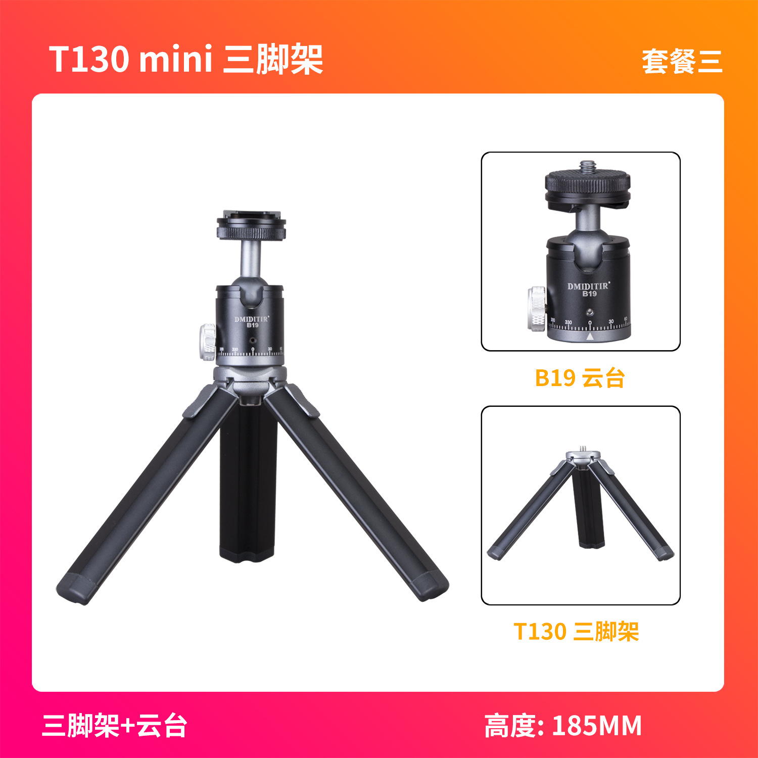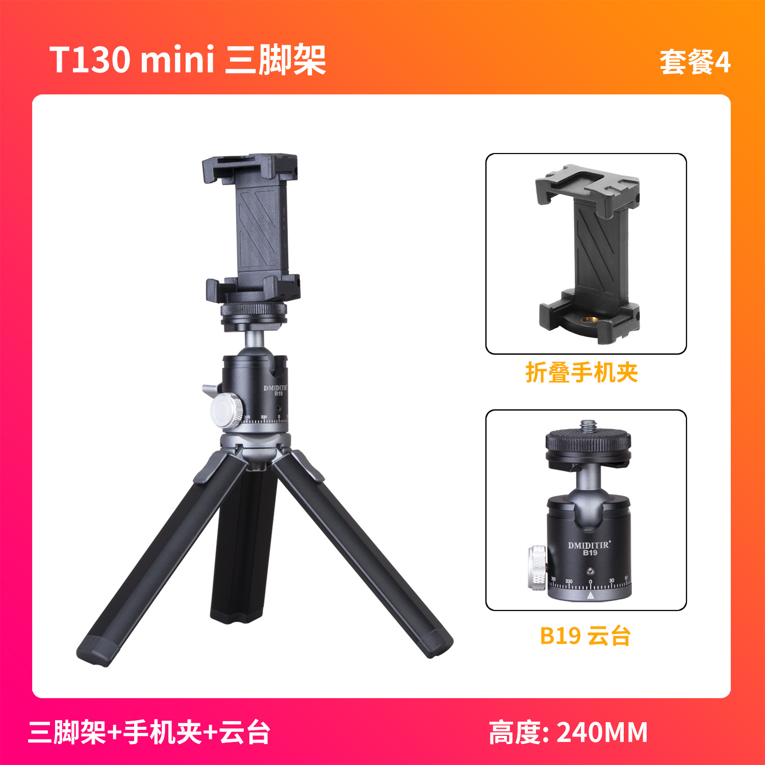 • T130-싱글 삼각대+휴대폰 클립+B19