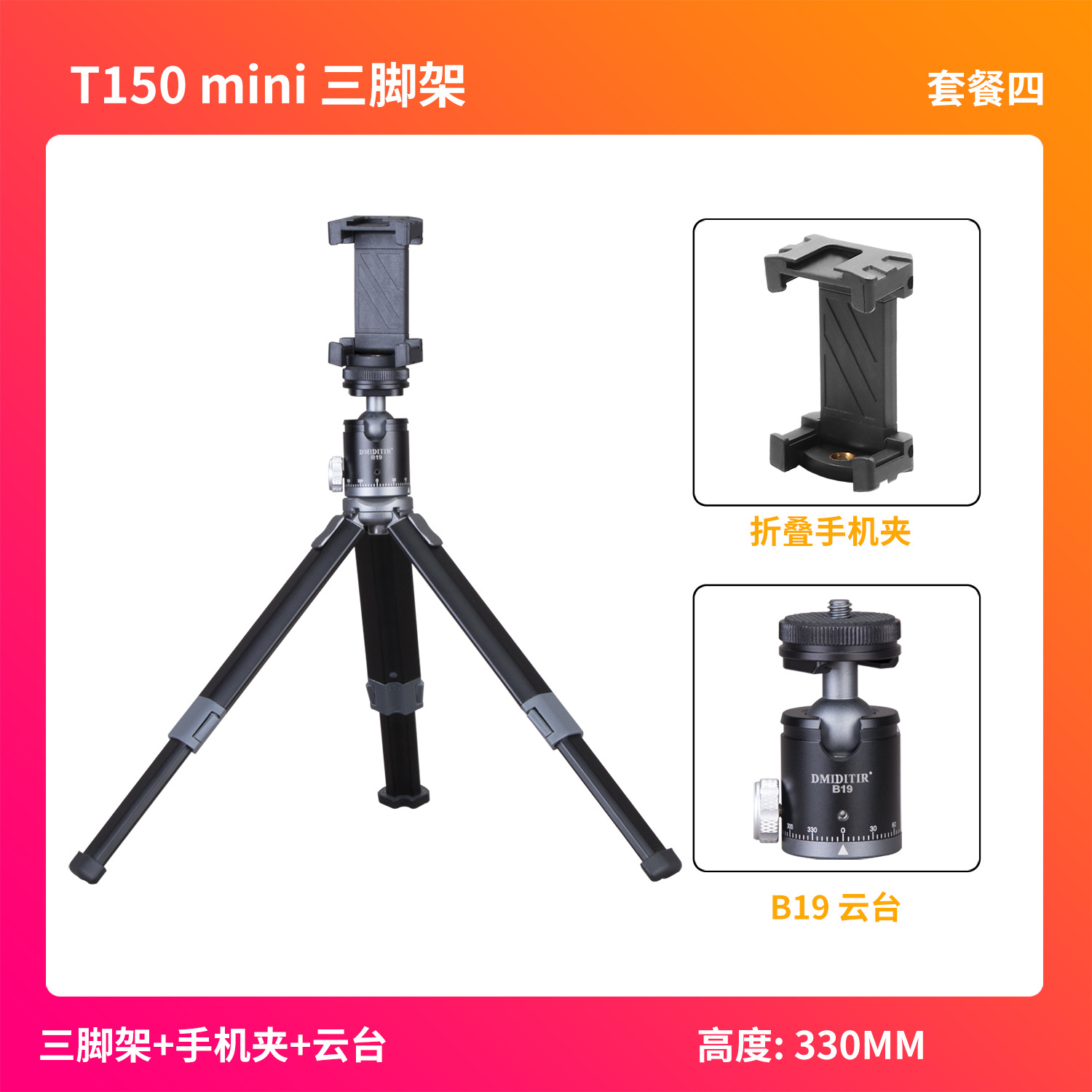 • T150-싱글 삼각대+휴대폰 클립+B19