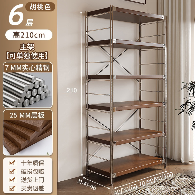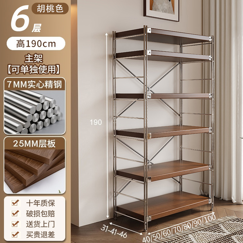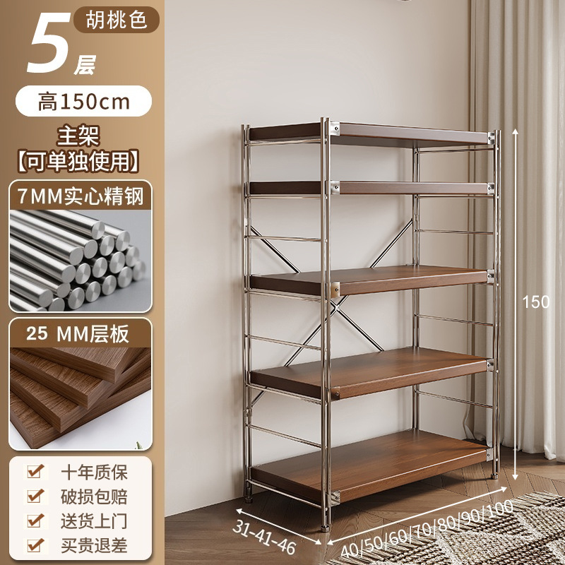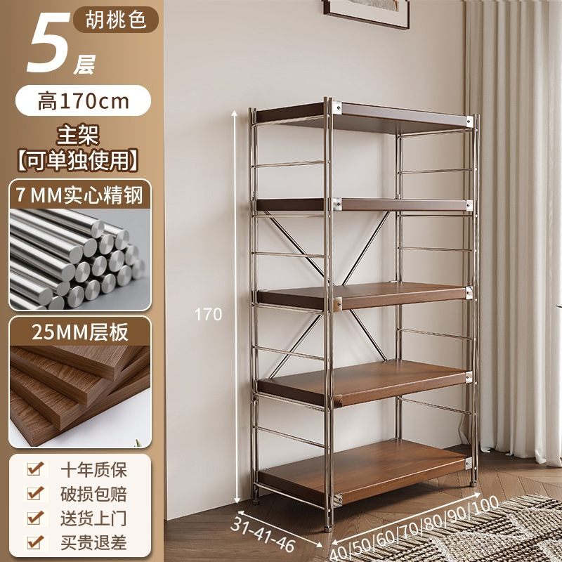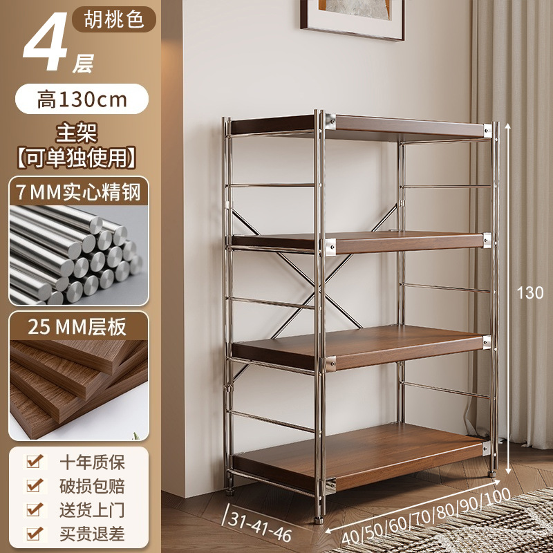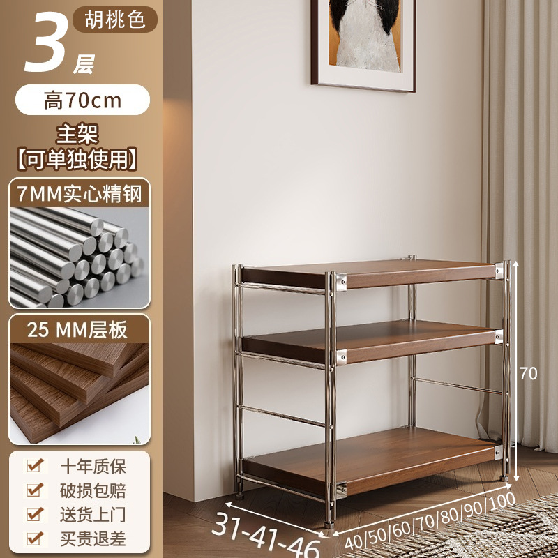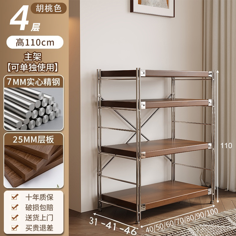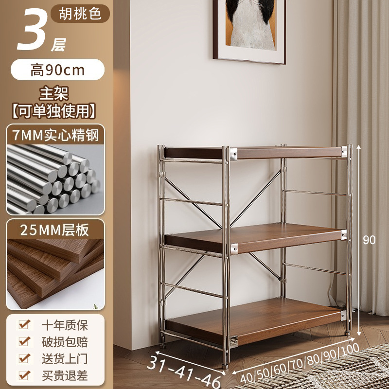 통나무 스타일 일본식 주방 수납 선반 다층 녹슬지 않는 스틸 수납 선반 바닥 스탠딩 전자 레인지 수납 선반 가정용 선반스토어 가기