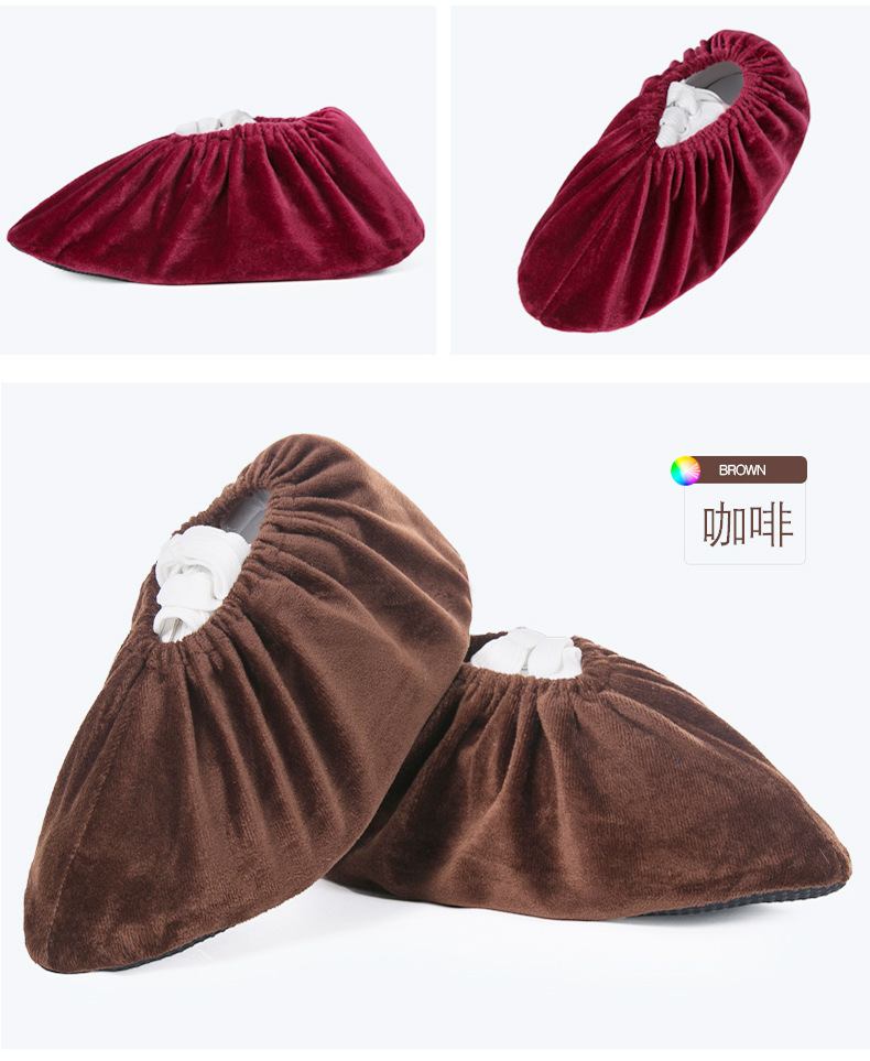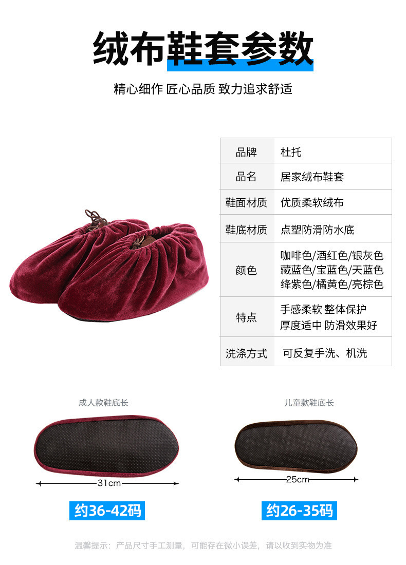 벨벳 신발 커버, 가정용 직물, 반복적으로 세탁 가능, 두꺼워지고 미끄럼 방지 및 내마모성, 실내 발 커버, 로고, 어린이 자수 가능
