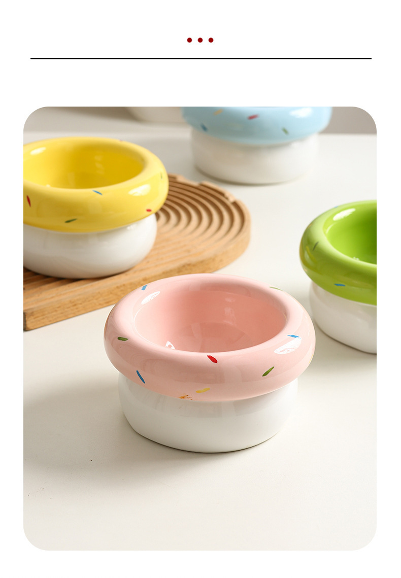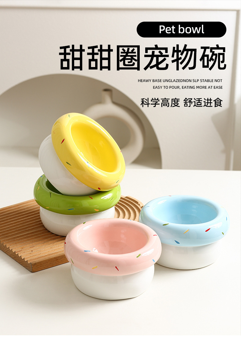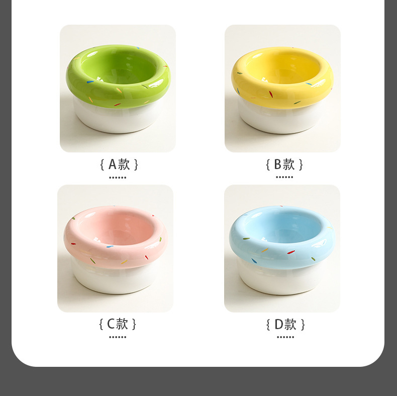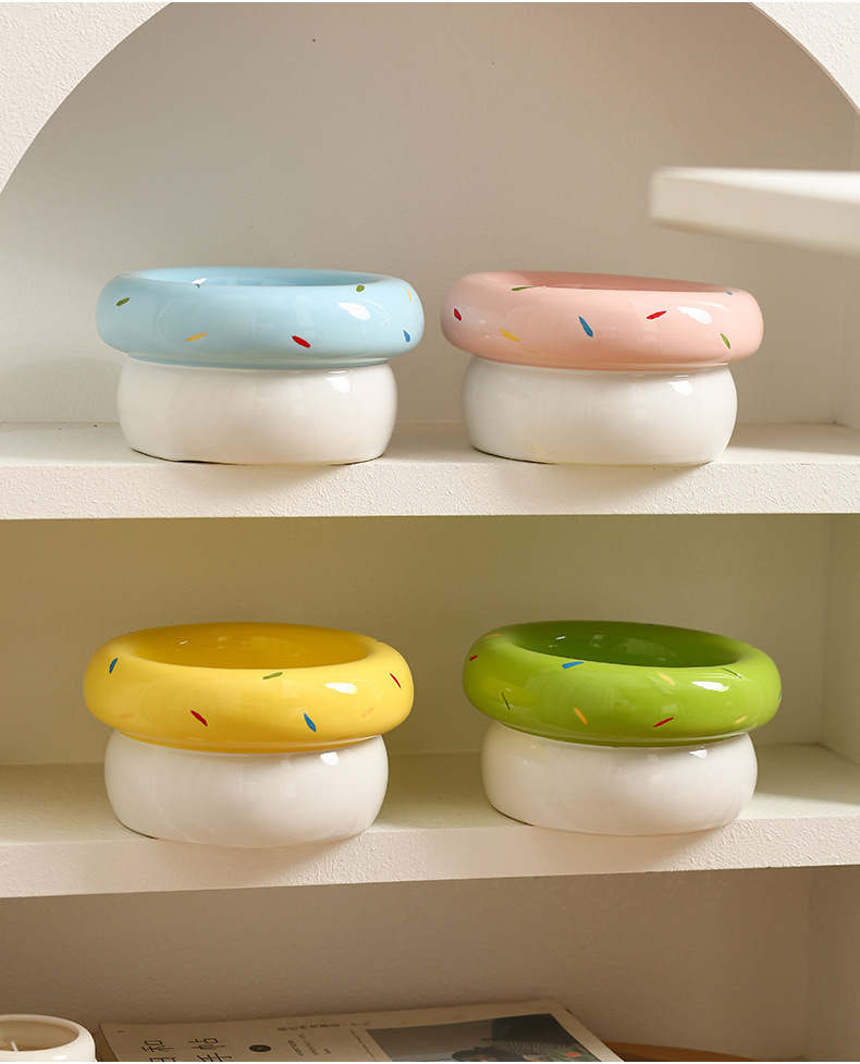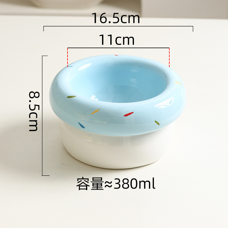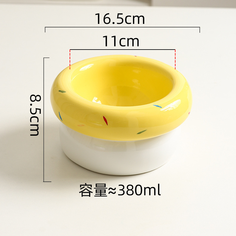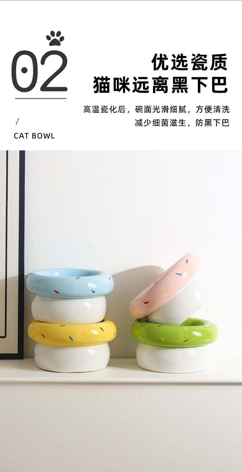 도넛 고양이 그릇 세라믹 애완 동물 그릇 대구경 고양이 사료 그릇 물 그릇 개밥 그릇 뒤집힘 방지 및 검은 턱 방지