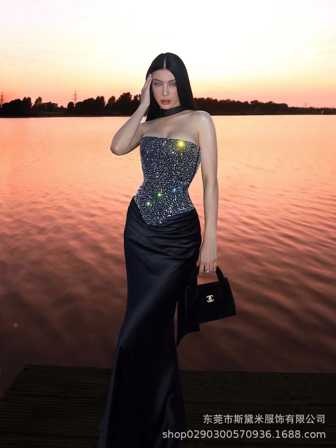 SDM165 기질 핫 다이아몬드 핫걸 스트랩 타이트 탑/롱 새틴 스커트 별도로 대외 무역 공급스토어 가기