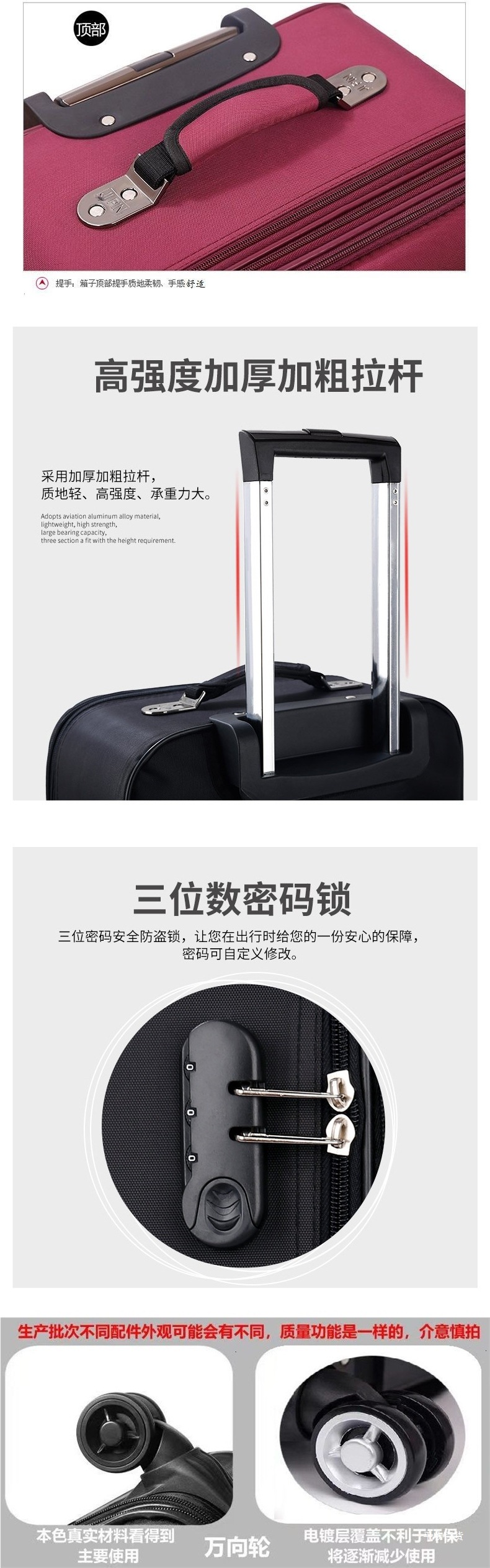 범용 휠이있는 옥스포드 천 가방 남성과 여성 학생을위한 트롤리 가방 비밀번호 상자 20 인치 24inch 26inch 내구성스토어 가기