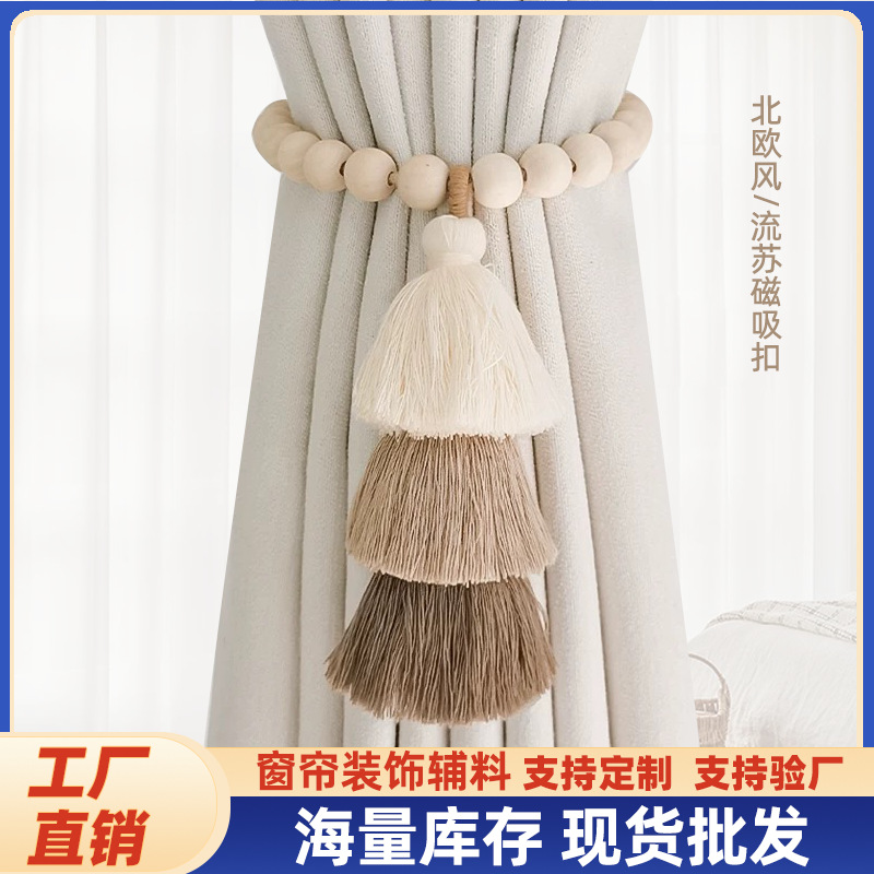 국경 간 스팟 창 스크린 마그네틱 버클 3 색 술 타이 커튼 장식 북유럽 스타일 나무 비즈 커튼 버클스토어 가기