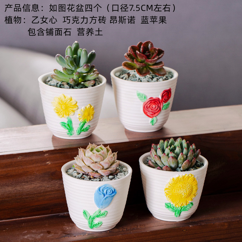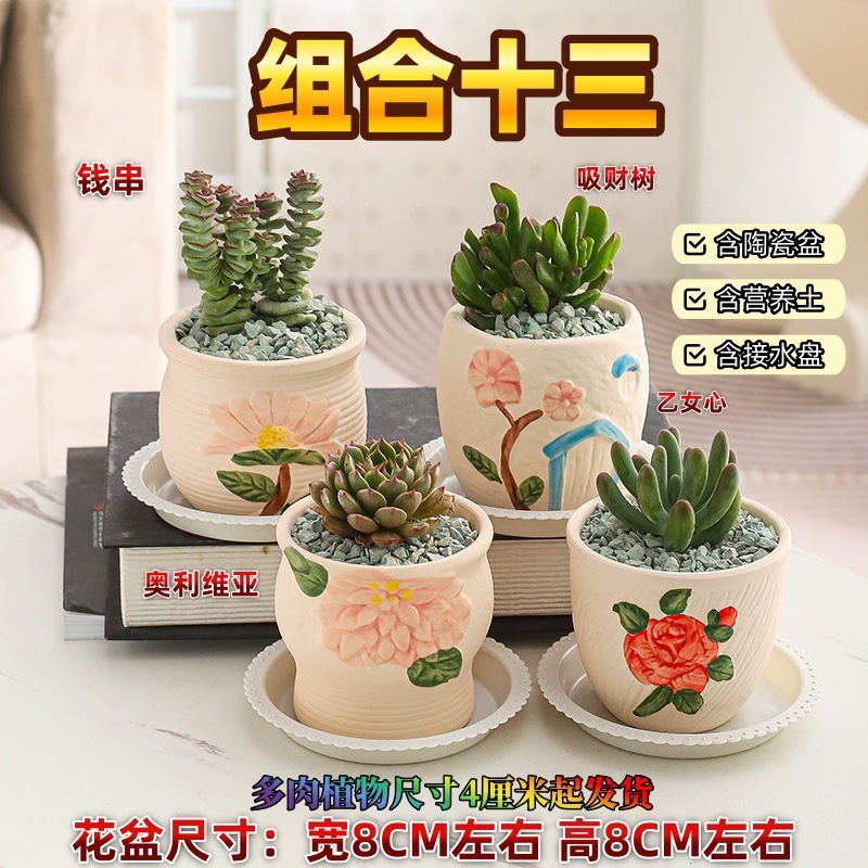 초보자를 위한 다육식물 조합 패키지 화분에 심은 다육식물, 화분과 흙이 포함된 사무실 데스크탑 녹색 식물과 꽃스토어 가기