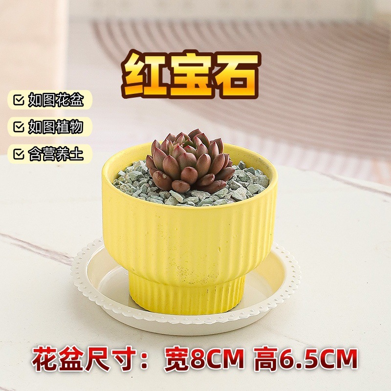 • 작은 신선한 스타일 2개의 무작위 화분 3개 [세라믹 화분 + 흙 + 작은 트레이 포함]