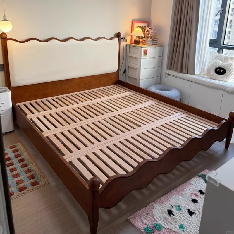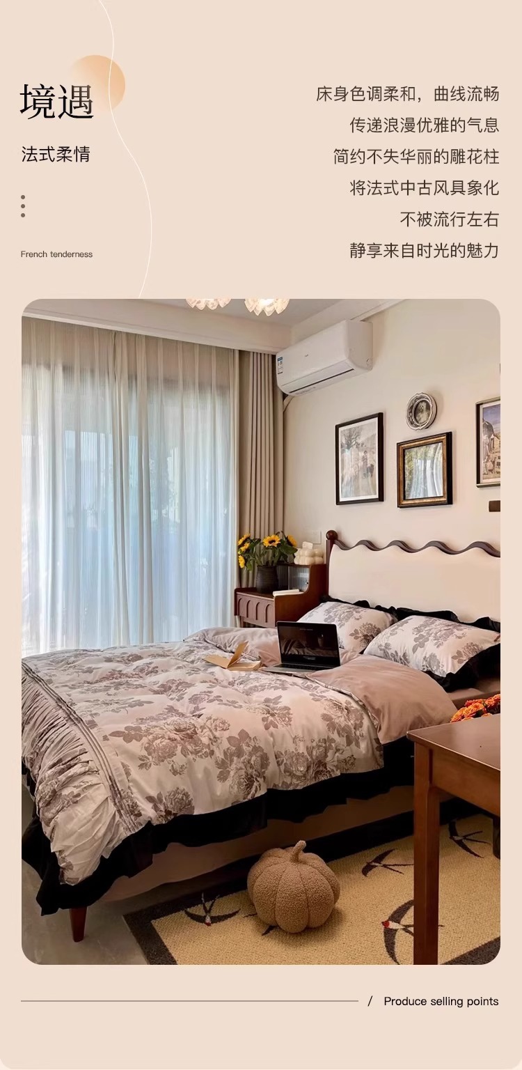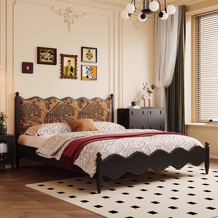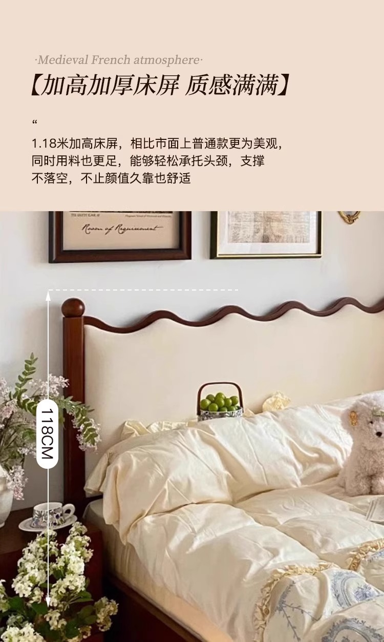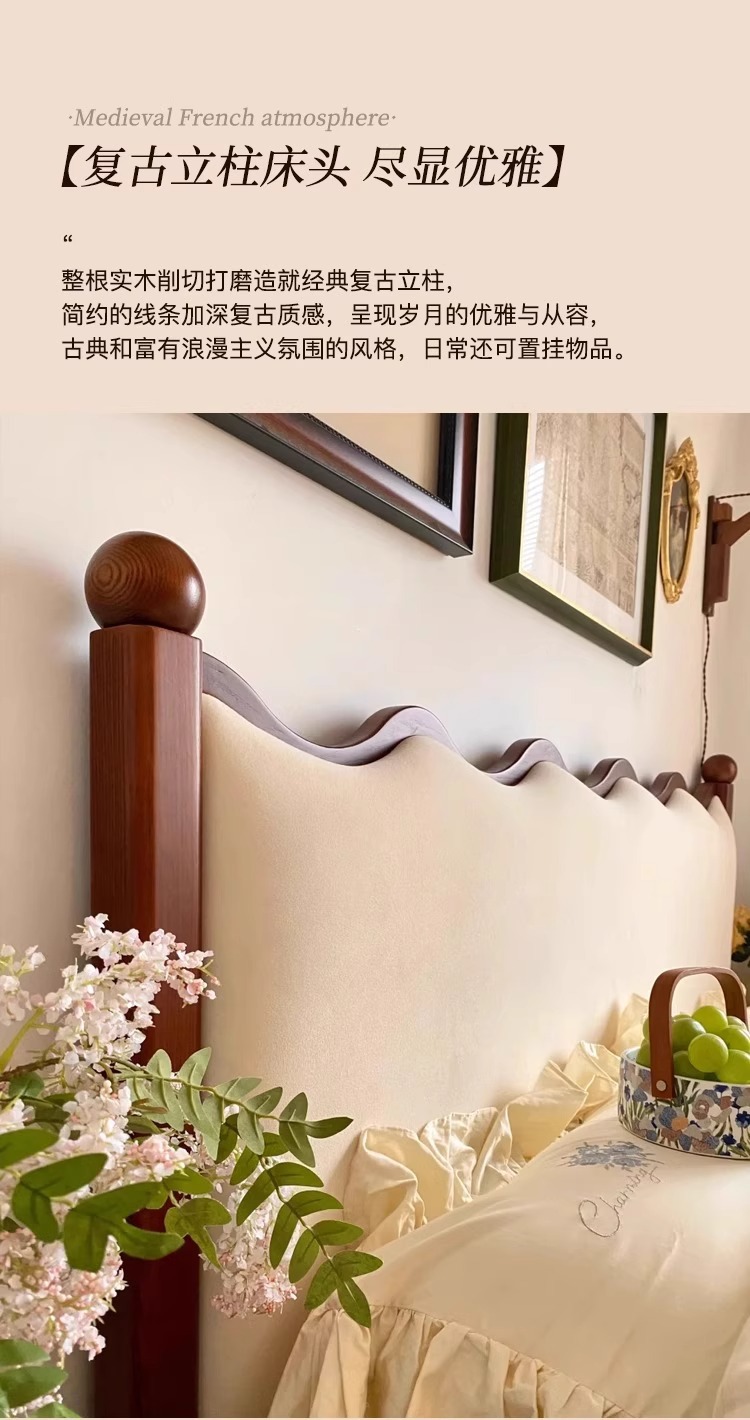 새로운 프랑스 복고풍 단단한 나무 침대 부드러운 패키지 마스터 침실 패브릭 더블 침대 물결 모양의 고대 스타일 작은 아파트 공주 침대