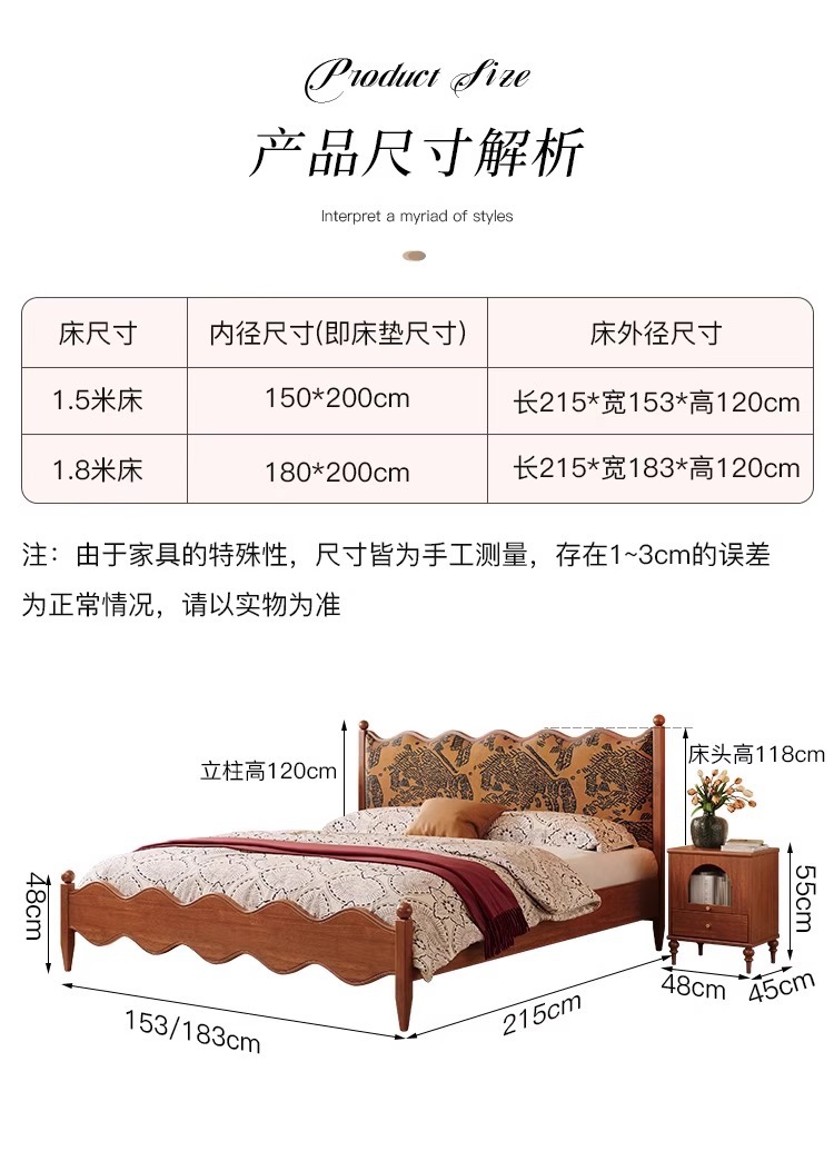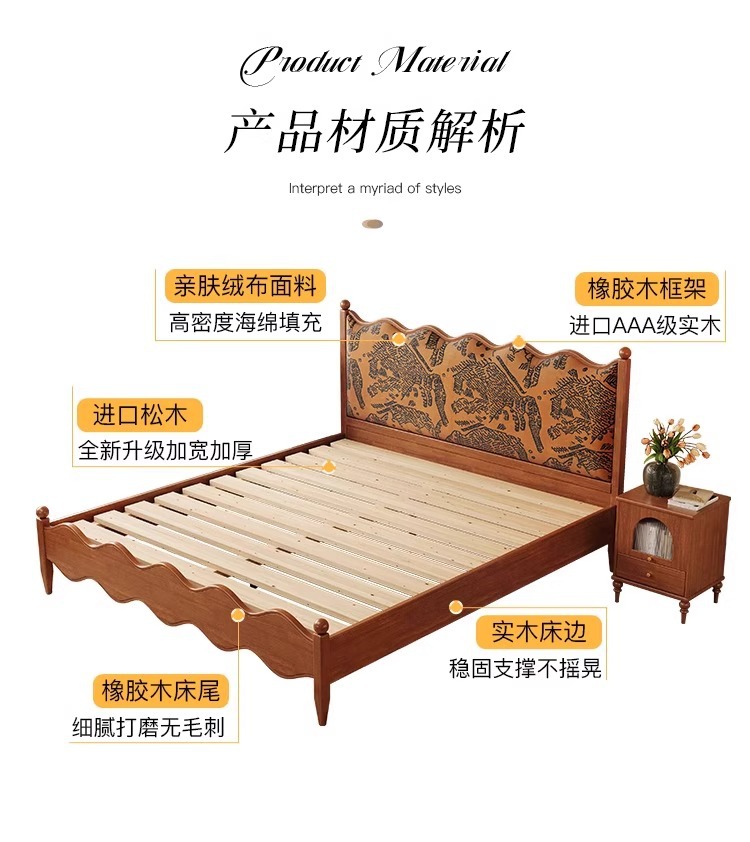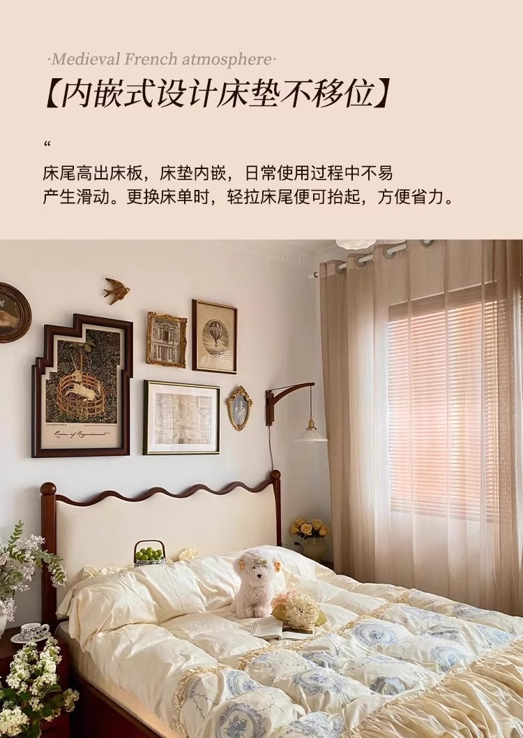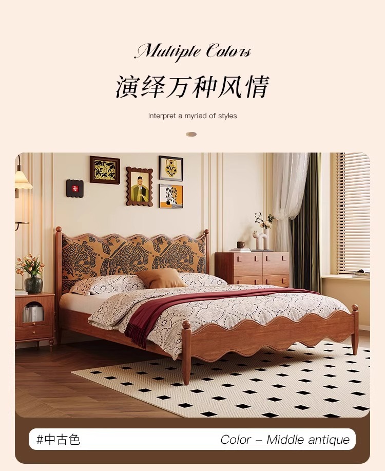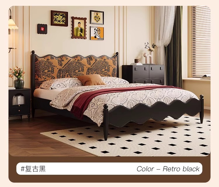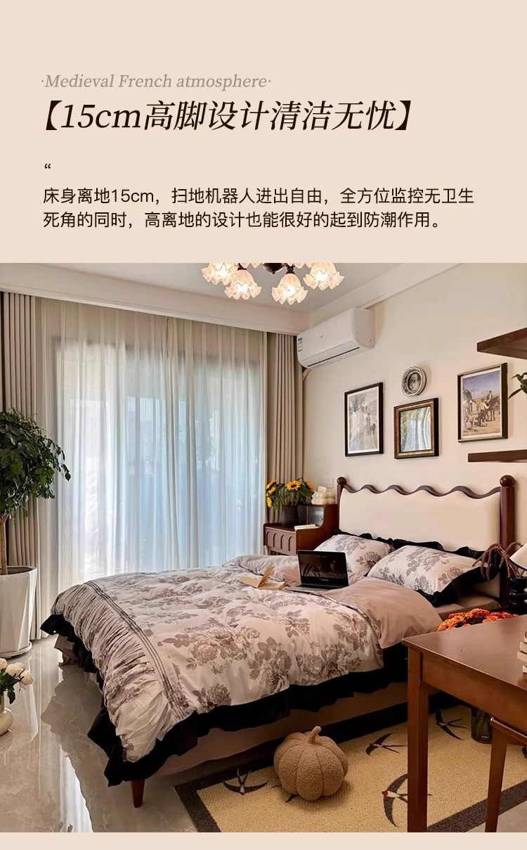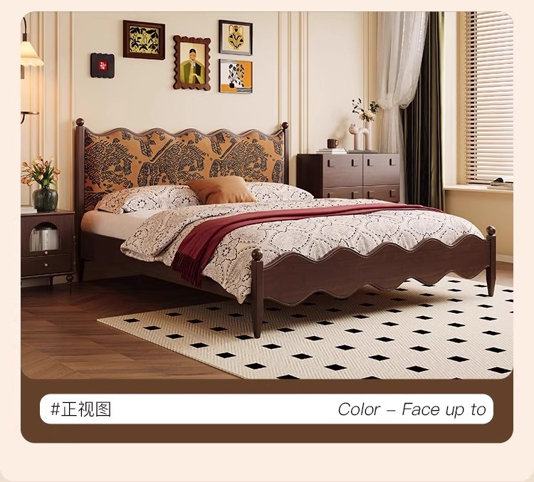 새로운 프랑스 복고풍 단단한 나무 침대 부드러운 패키지 마스터 침실 패브릭 더블 침대 물결 모양의 고대 스타일 작은 아파트 공주 침대