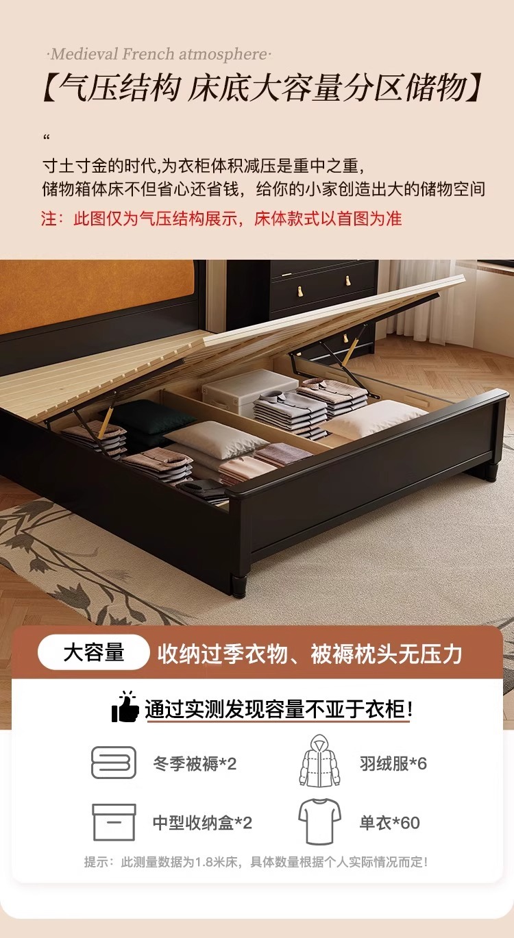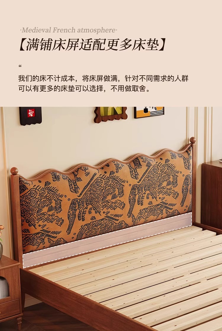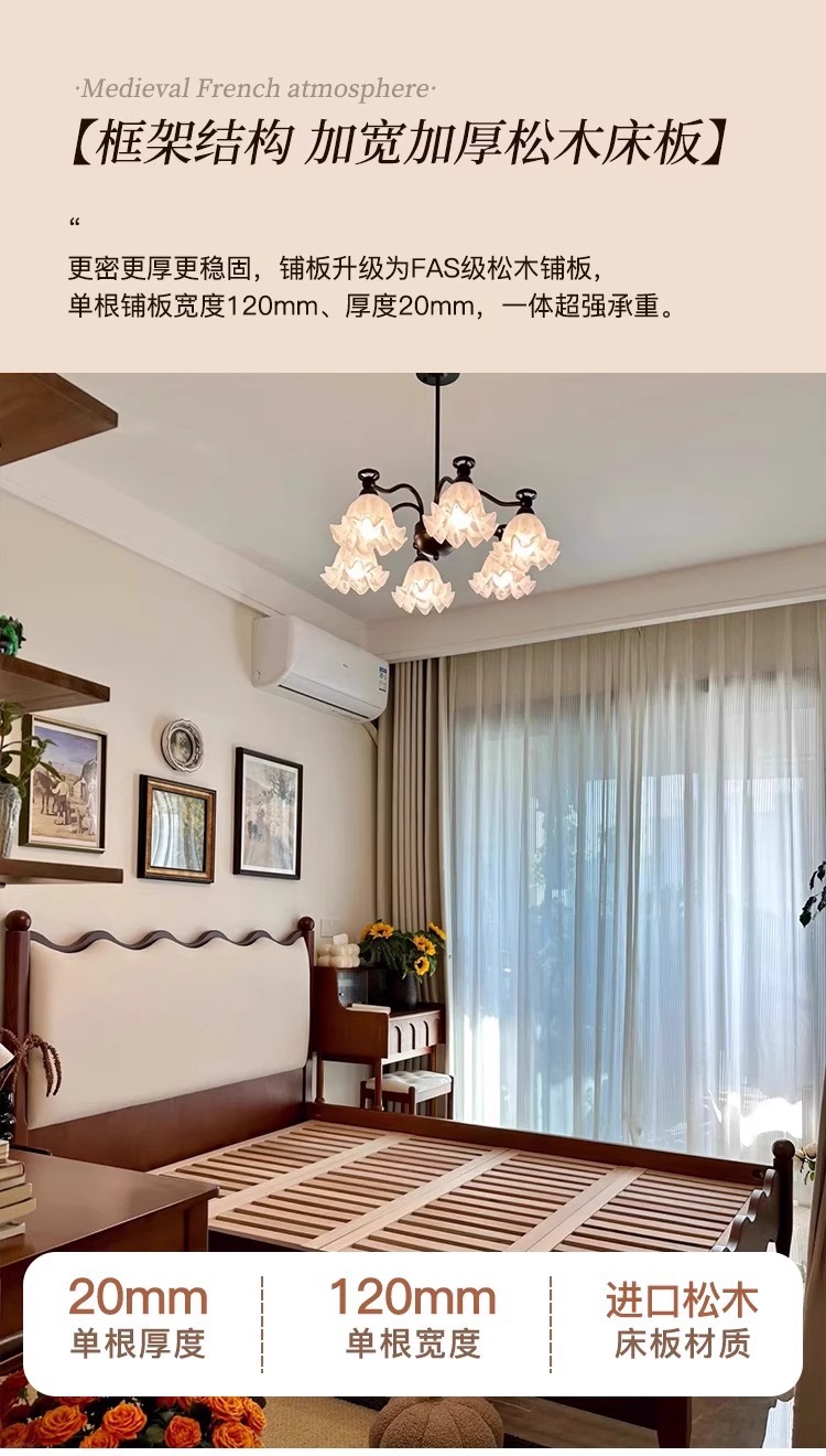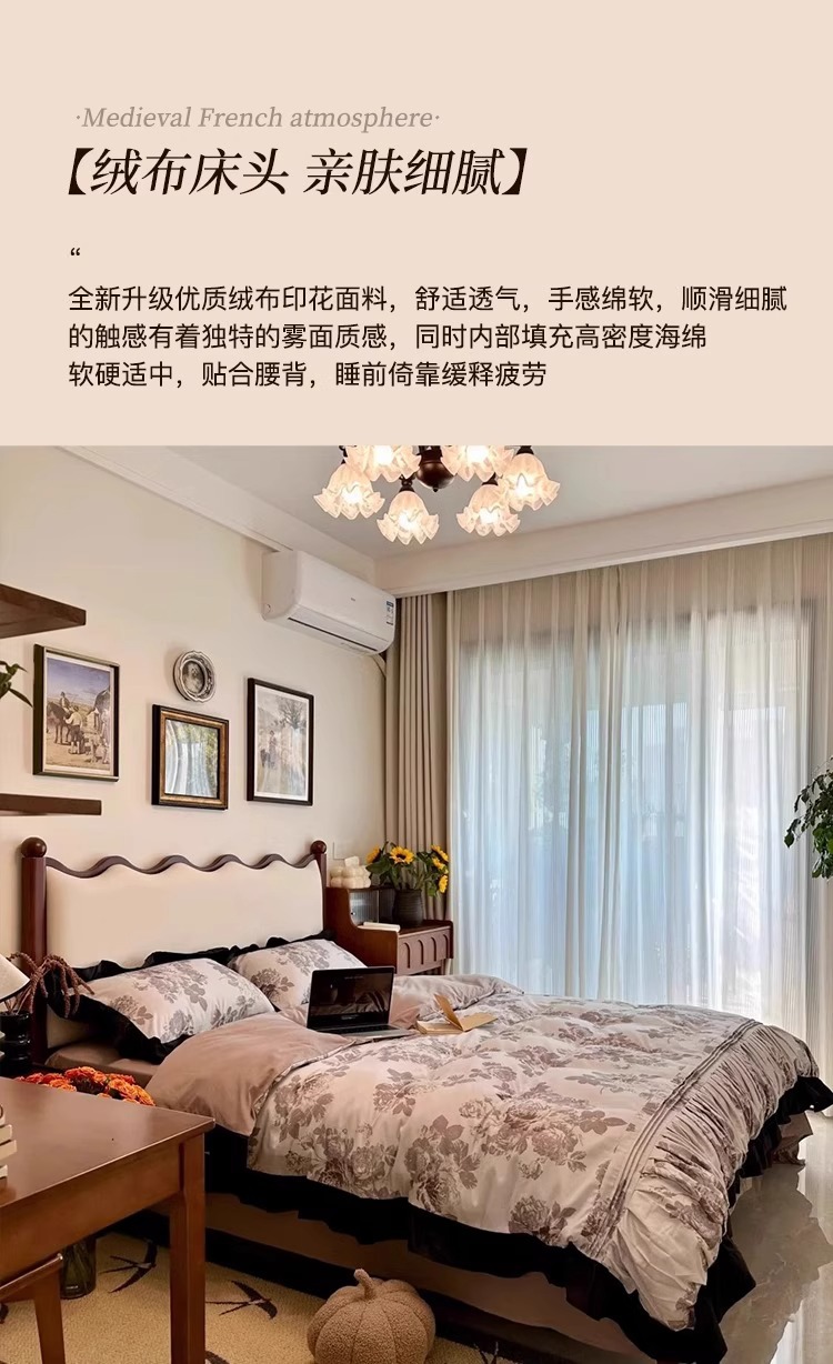 새로운 프랑스 복고풍 단단한 나무 침대 부드러운 패키지 마스터 침실 패브릭 더블 침대 물결 모양의 고대 스타일 작은 아파트 공주 침대스토어 가기