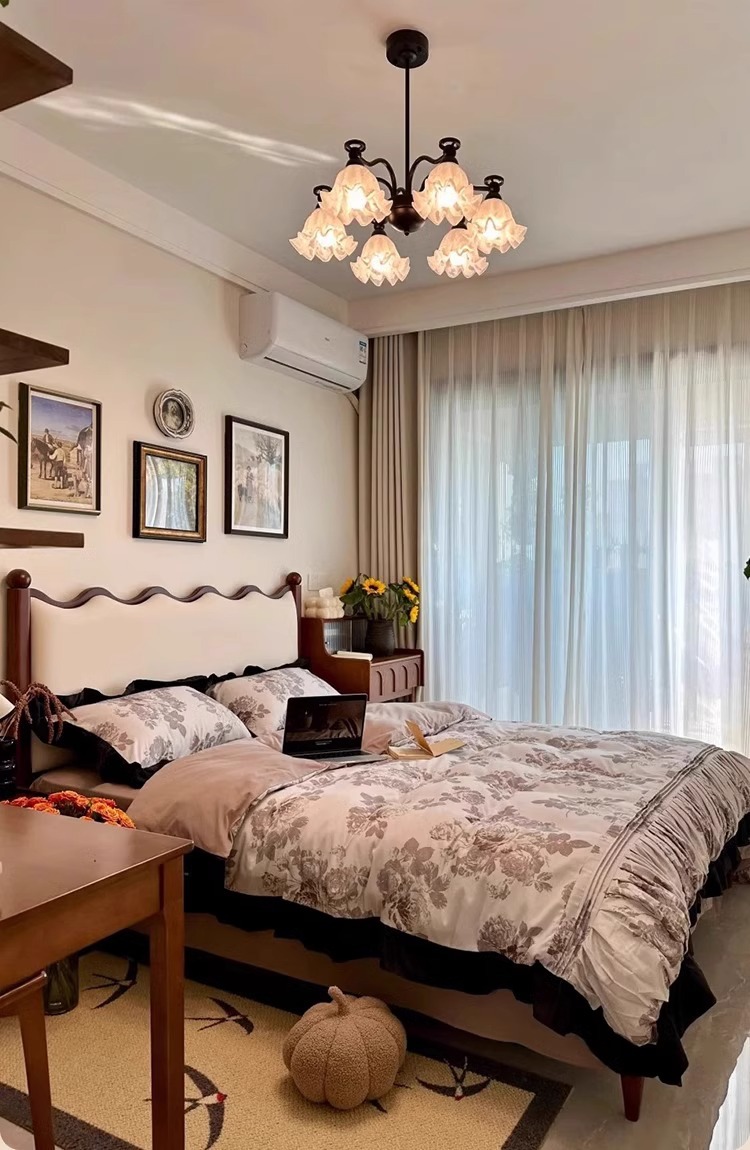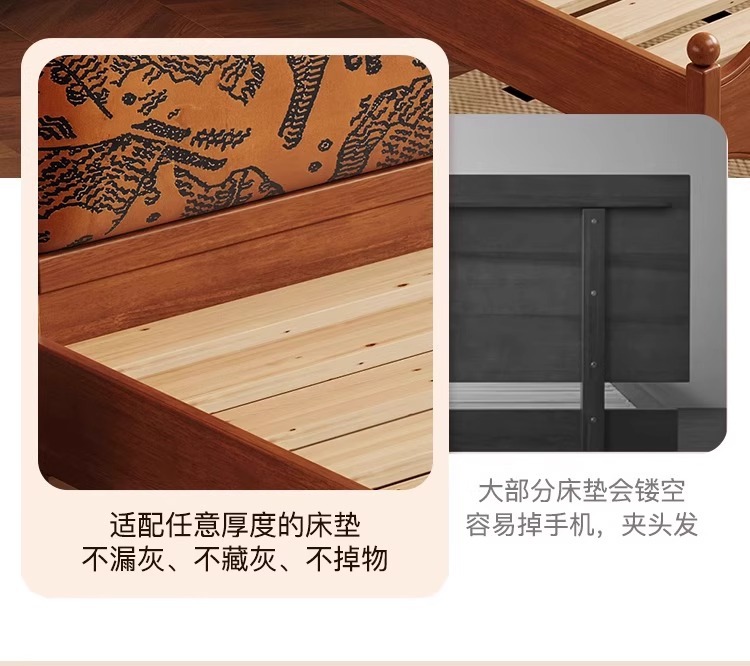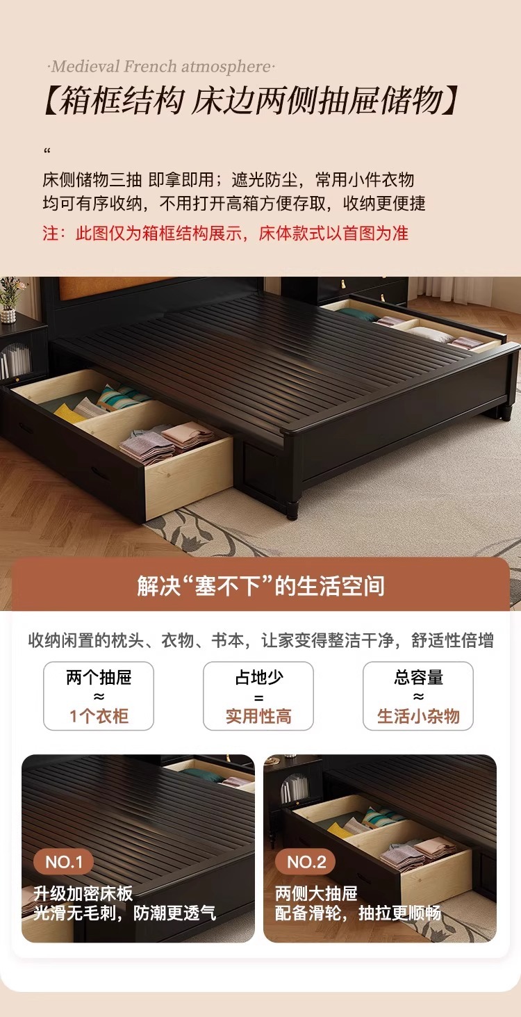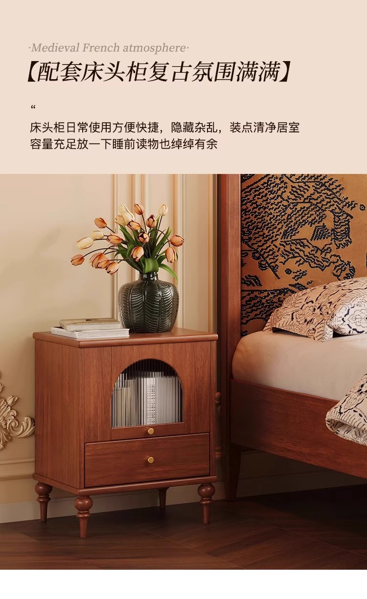 새로운 프랑스 복고풍 단단한 나무 침대 부드러운 패키지 마스터 침실 패브릭 더블 침대 물결 모양의 고대 스타일 작은 아파트 공주 침대스토어 가기