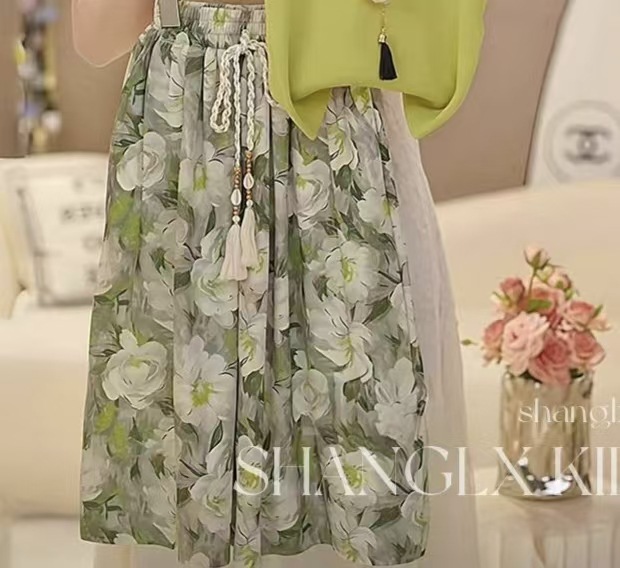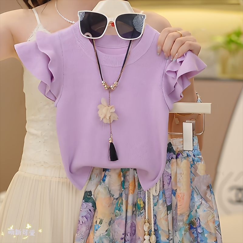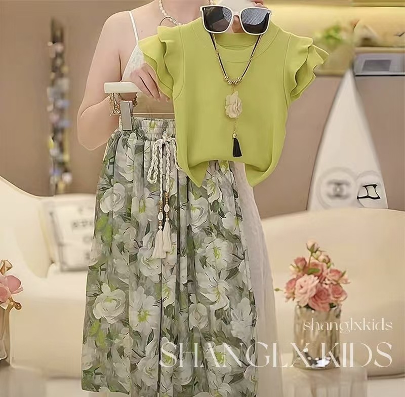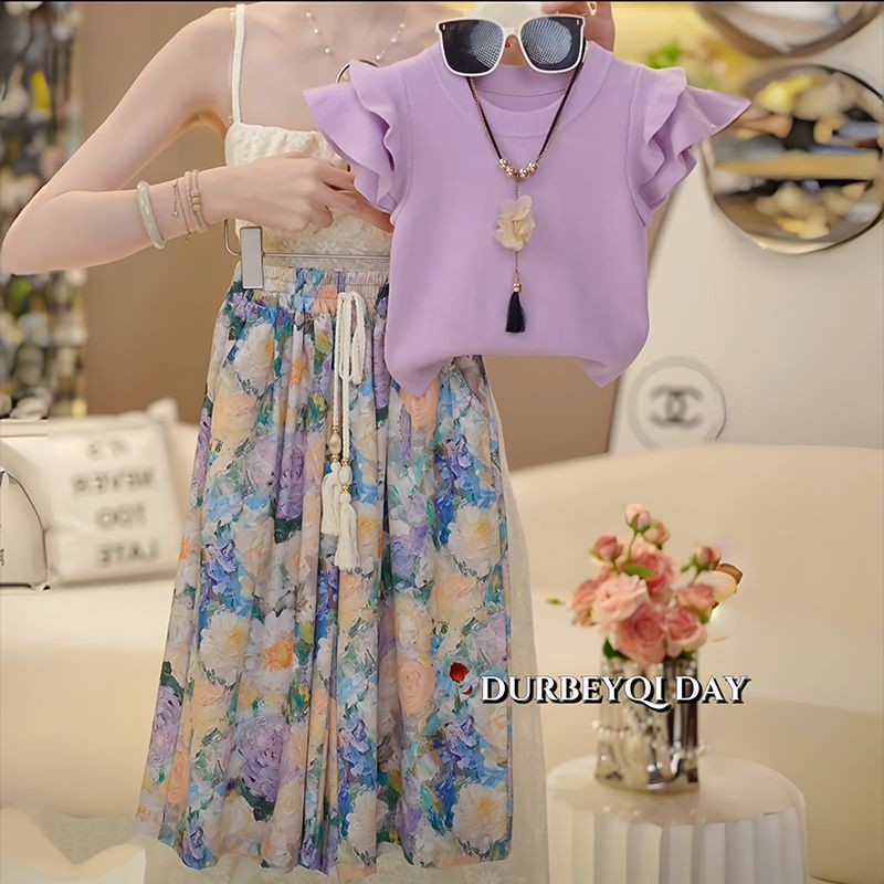 여자 와이드 레그 팬츠 정장 여름 2025 새로운 어린이 캐주얼 루즈하고 세련된 여자 여름 투피스 세트스토어 가기