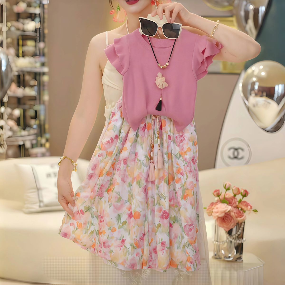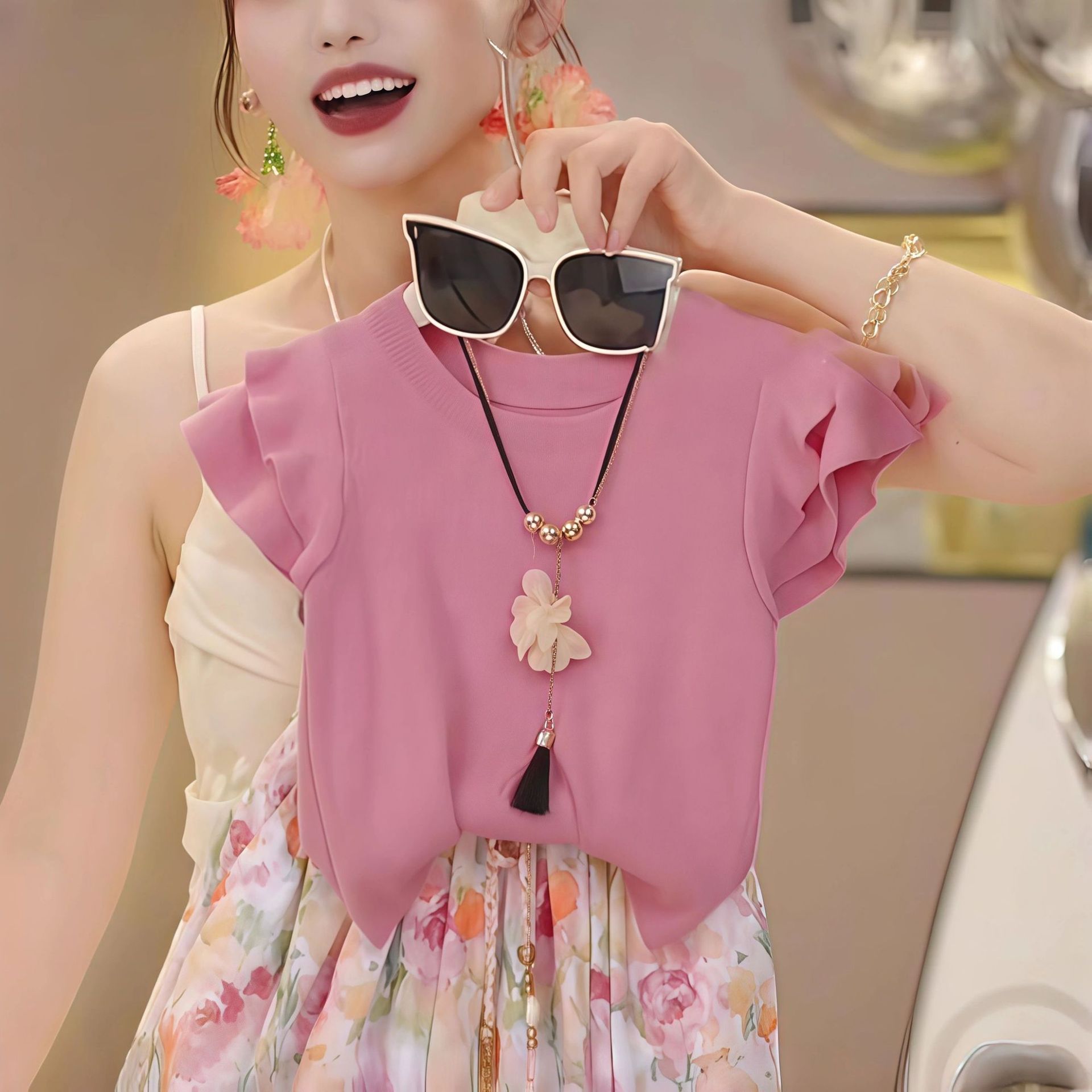 • 핑크색 니트 반소매