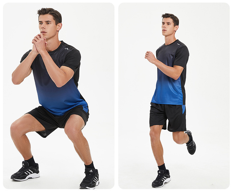 새로운 여름 캐주얼 스포츠웨어 남성용 짧은 양복 통기성 러닝웨어 상쾌한 축구 유니폼 속건성 의류 티셔츠 남성용