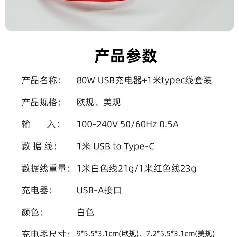 • 80W 유럽 표준 + 1m 빨간색 typec 케이블 + OPP 가방