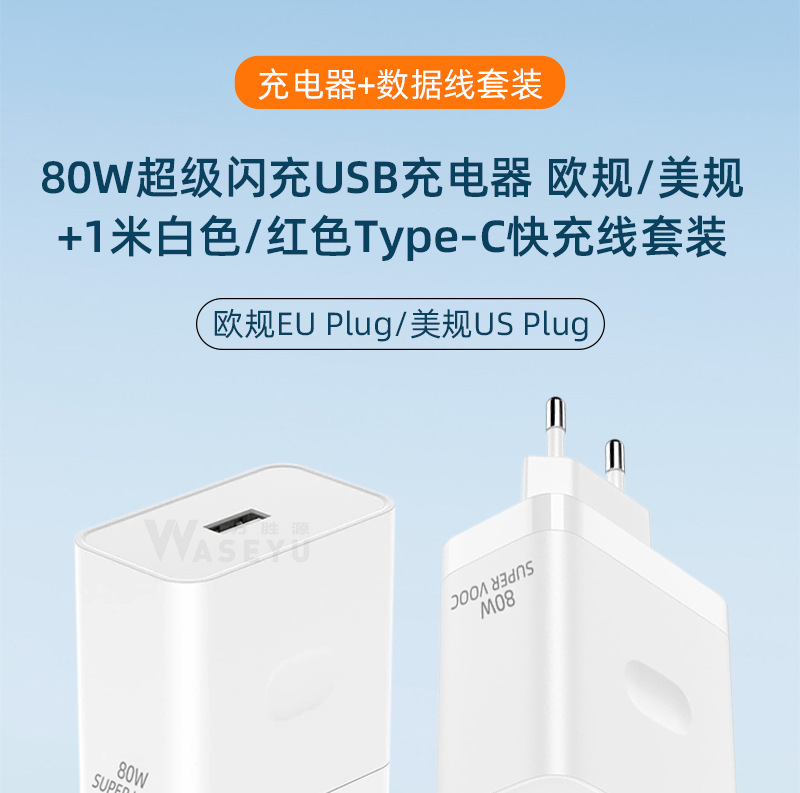 80W超级闪充充电器适用于华为OPPO一加手机typec快充线100W充电头