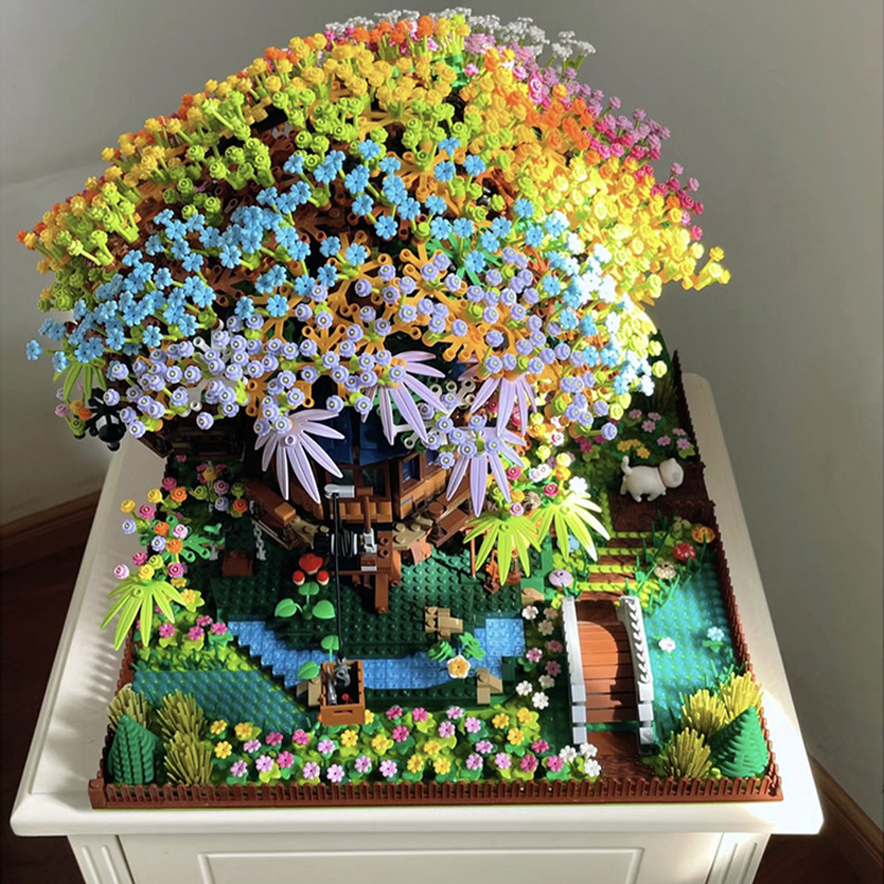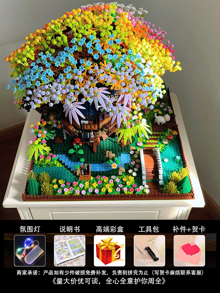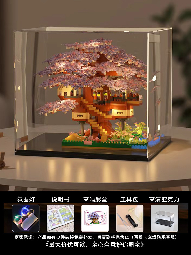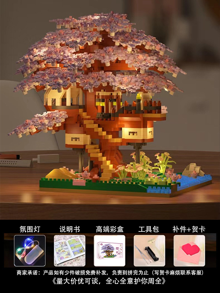사쿠라 트리 하우스 빌딩 블록 2025 새로운 스타일 장난감 소녀 선물 교육 조립 건물 스트리트 뷰 빌라 하우스 퍼즐