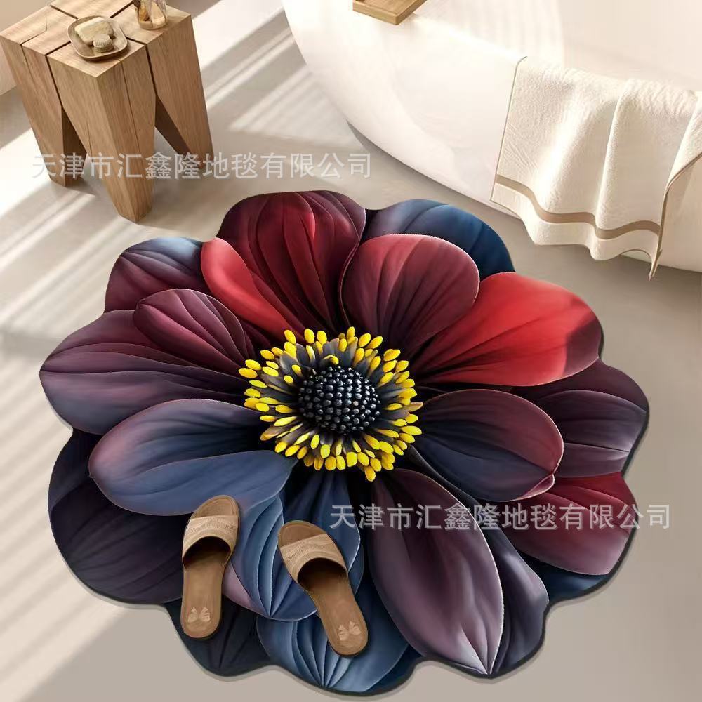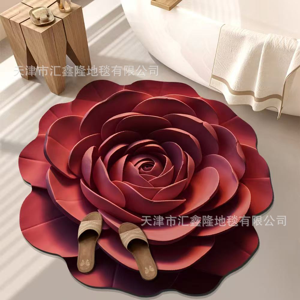 국경 간 3D 입체 대형 꽃 바닥 매트 홈 거실 카펫 침실 침대 옆 담요 욕실 흡수성 미끄럼 방지 바닥 매트 재고 있음