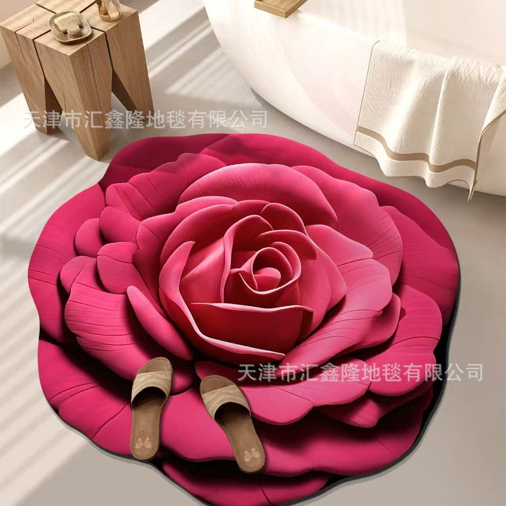 국경 간 3D 입체 대형 꽃 바닥 매트 홈 거실 카펫 침실 침대 옆 담요 욕실 흡수성 미끄럼 방지 바닥 매트 재고 있음스토어 가기