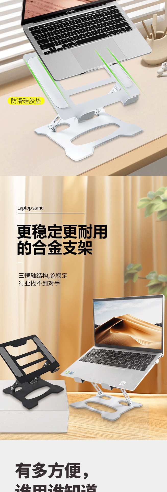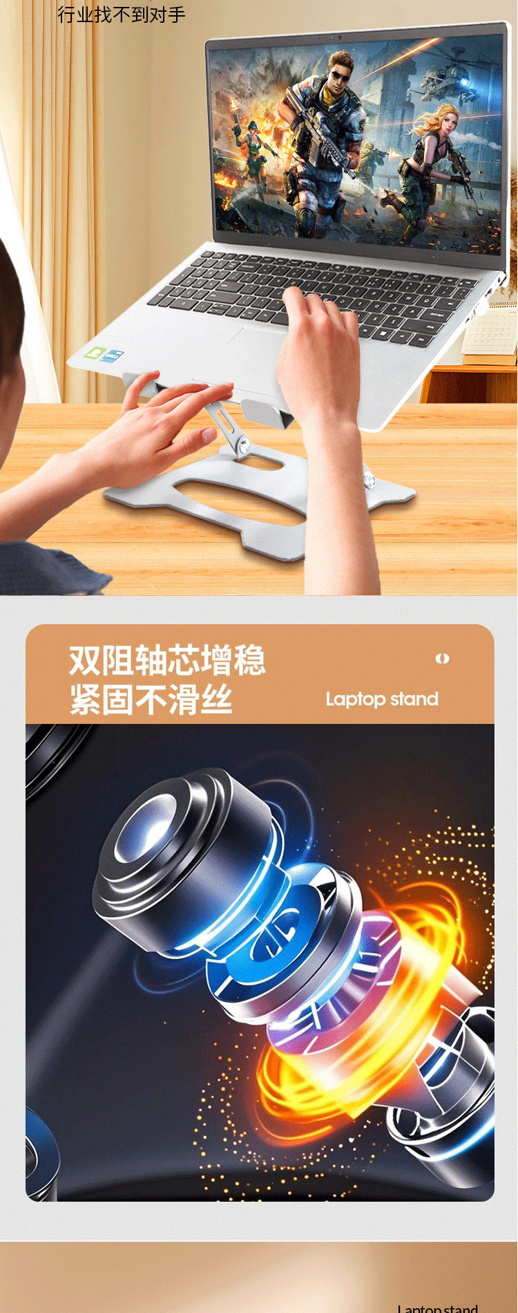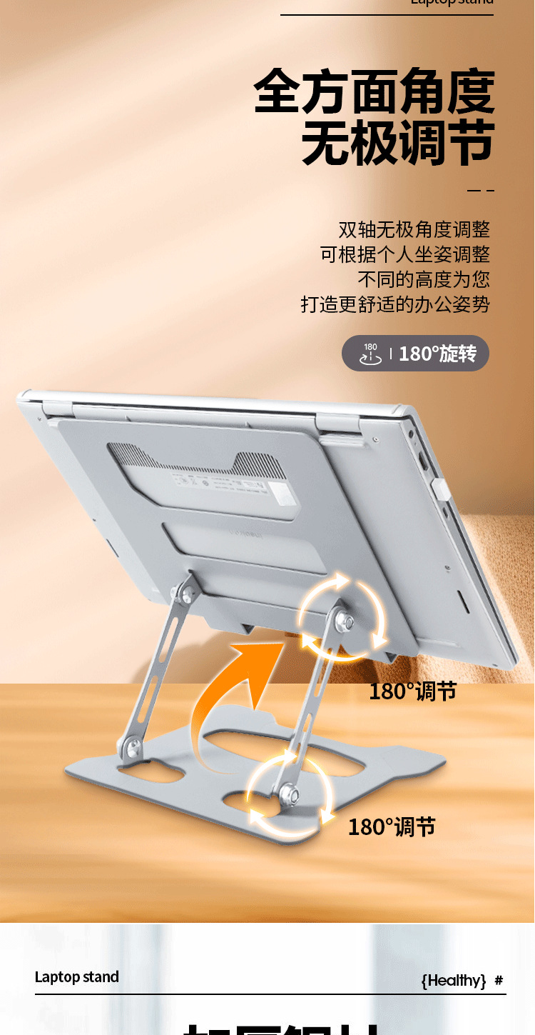풀 카본 스틸 노트북 스탠드, 공중에 놓인 확장 데스크탑, 높이 조절 가능한 냉각 랙 베이스 지지대, 접이식스토어 가기