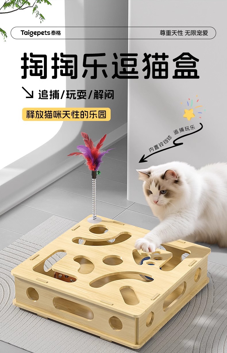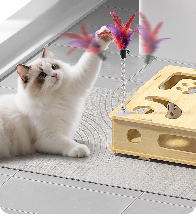 고양이 장난감, 자기 자극 및 지루함 해소 도구, 교육용 게임 상자, 에너지 소모 고양이 놀리는 막대, 종, 미로 상자 용품스토어 가기