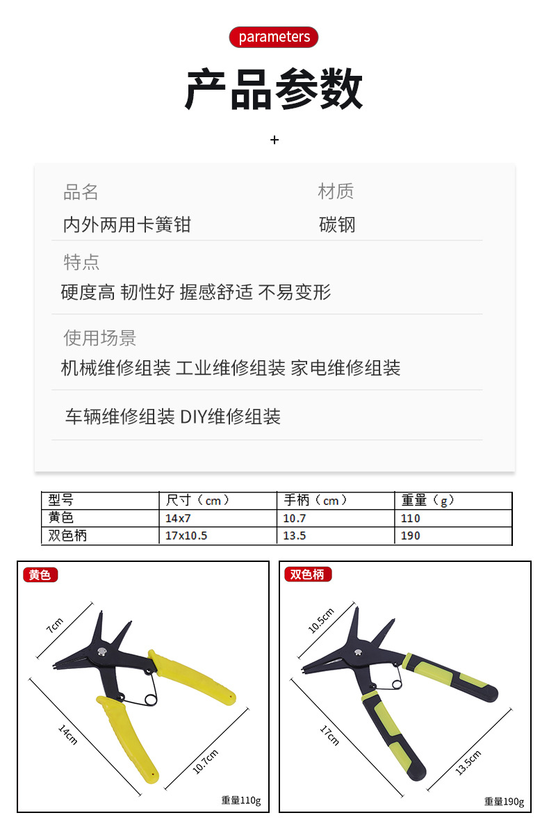 내부 및 외부 사용을 위한 코일 스프링 펜치, 2-in-1 0.05kg 코일 스프링 펜치, 내부 및 외부 코일 스프링 펜치, 총 스프링 분해 및 조립용 코일 스프링 펜치스토어 가기