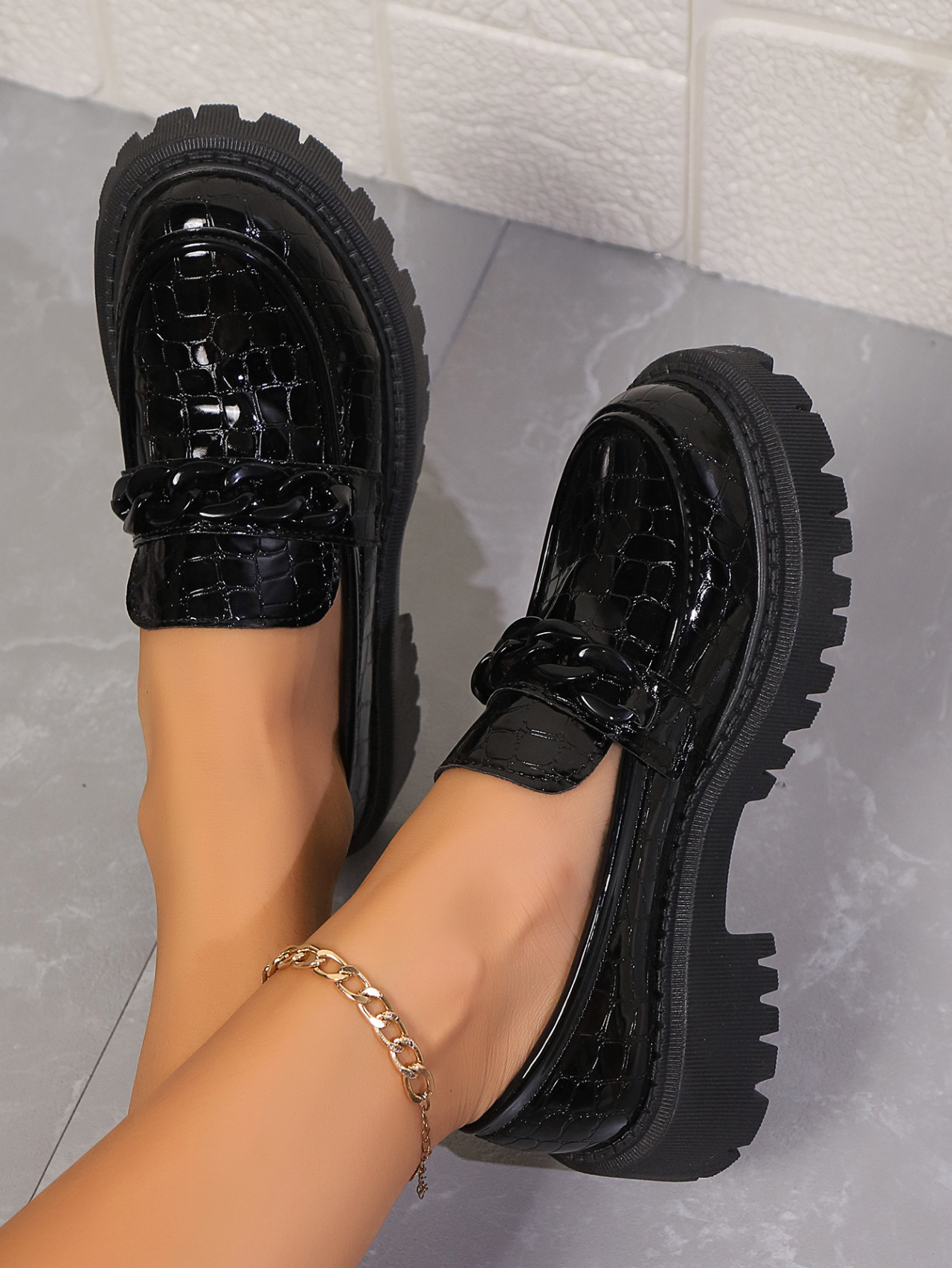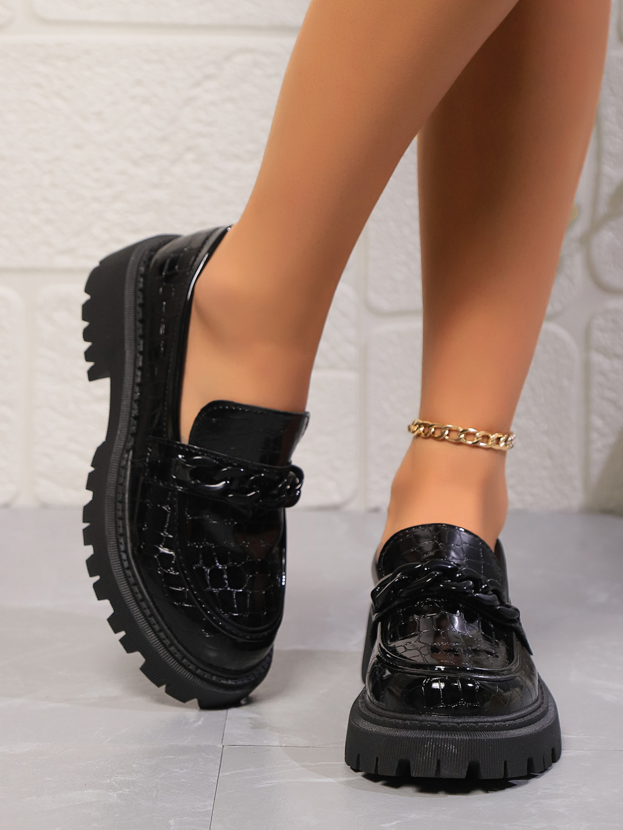여성을위한 대외 무역 대형 로퍼 2025 봄과 가을 새로운 스타일 라운드 발가락 영국 스타일 싱글 신발 여성을위한 한쪽 다리 작은 가죽 신발스토어 가기