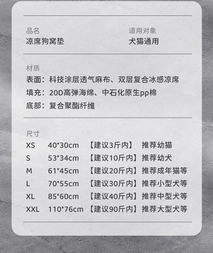 • XS 사이즈 [길이 40cm, 폭 30cm] 1.5kg 이내 - 더 편안하게 잠들 수 있도록 큰 사이즈를 권장합니다.