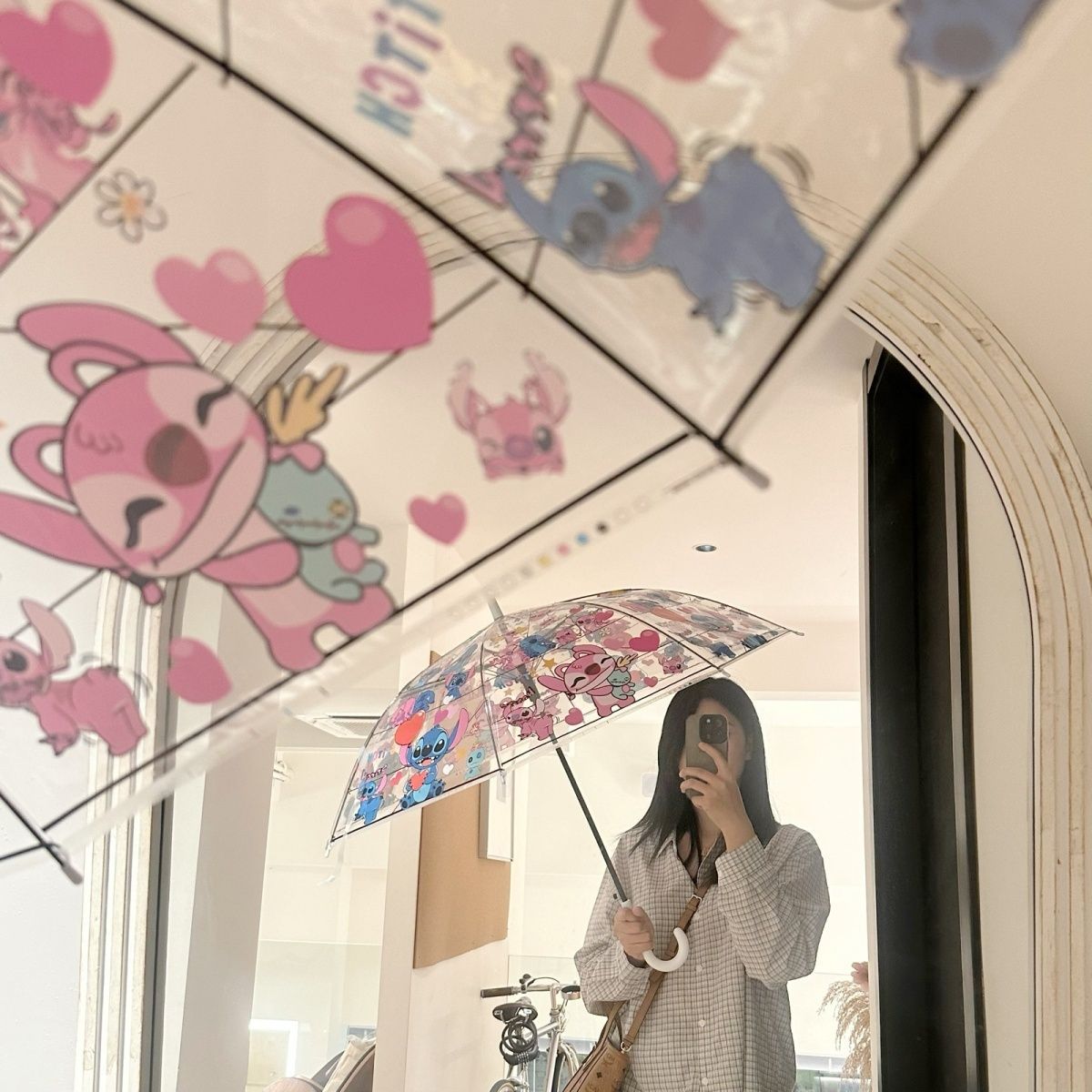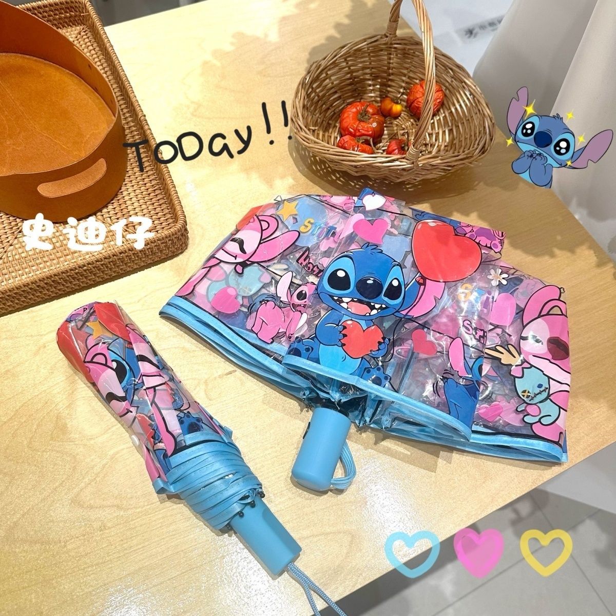 Stitch ins 완전 자동 투명 우산 접이식 여신 신선한 학생 접이식 우산 더블 인터넷 연예인 두꺼운 우산