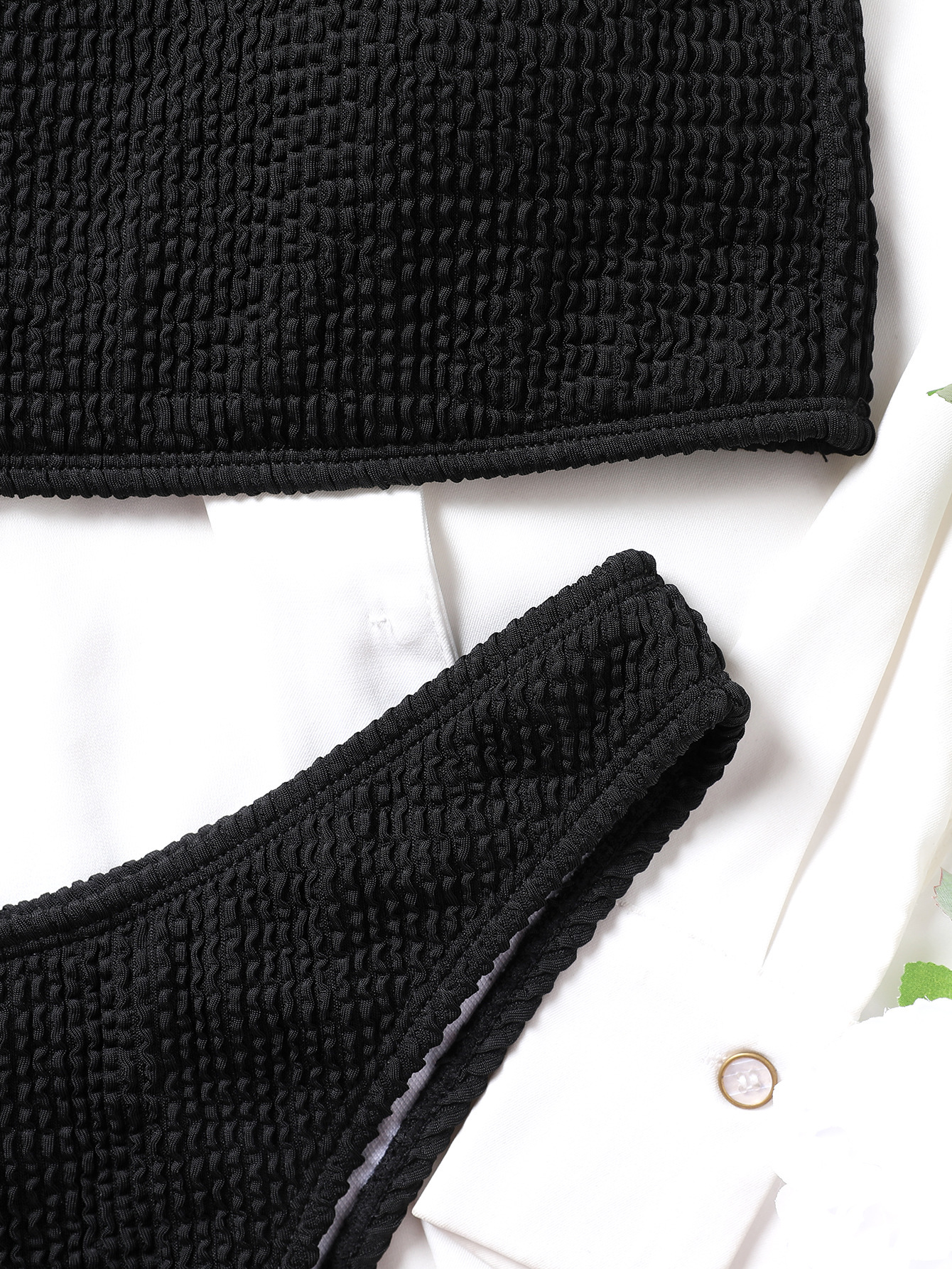 유럽과 미국의 스플릿 수영복, 여성스러운 솔리드 컬러 튜브 탑 타이트 비키니, 아마존 크로스보더 비치 휴가 수영복 여성스토어 가기