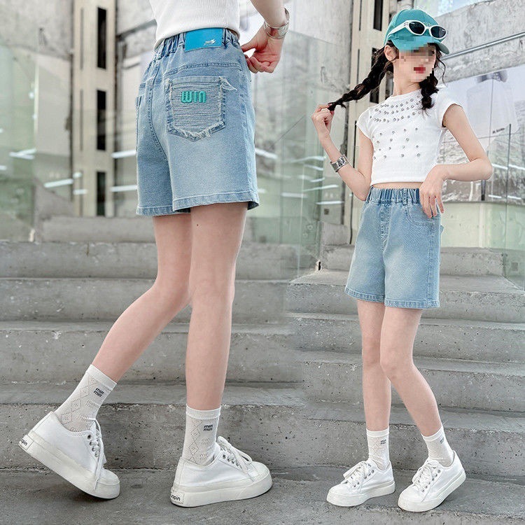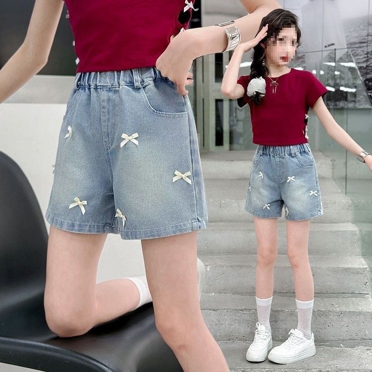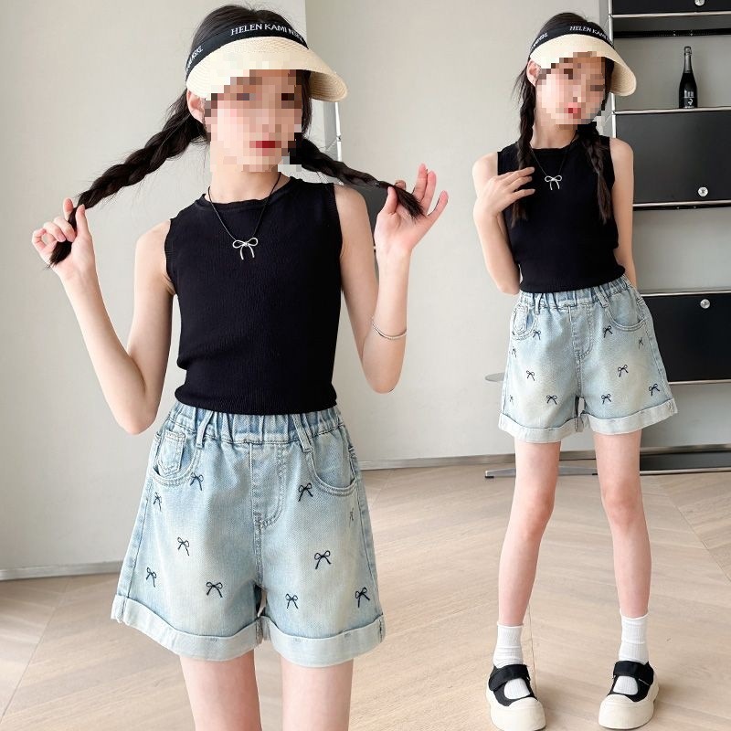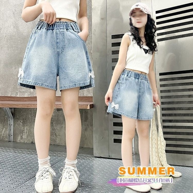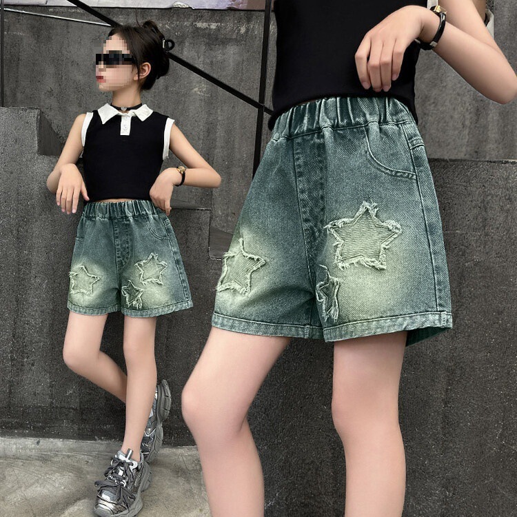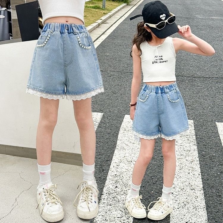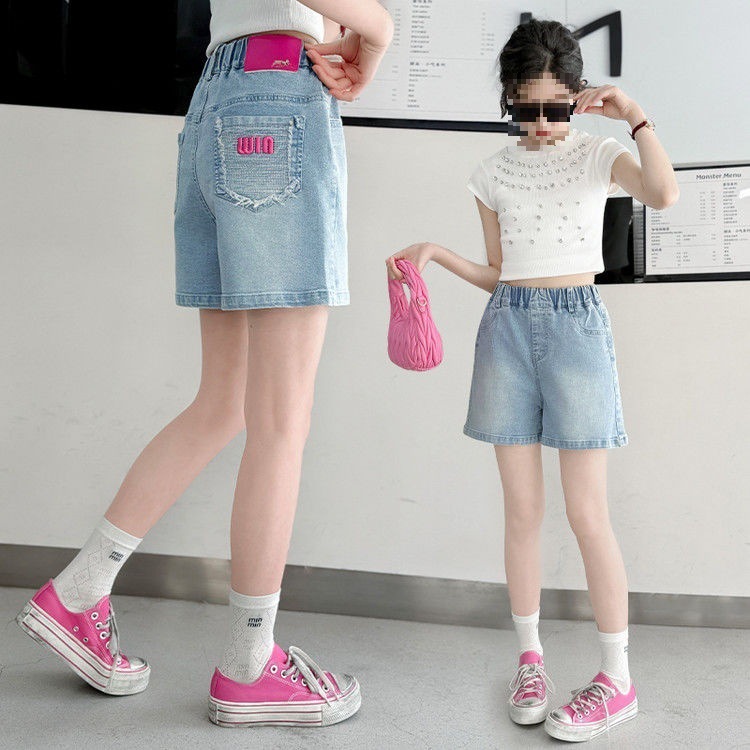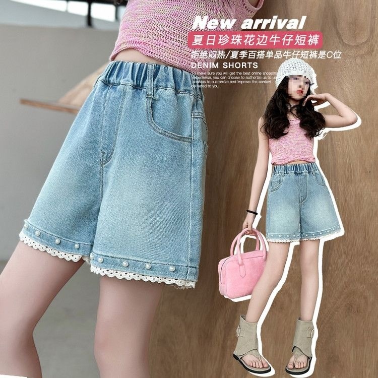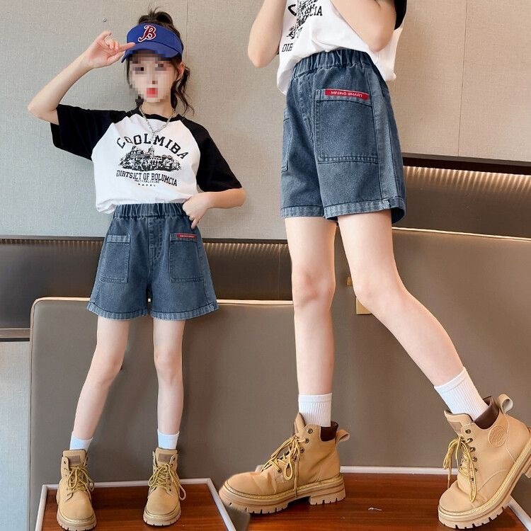 여아 데님 반바지, 트렌디한 여름 신상품, 여아 스타일, 다재다능함, 중대형 아동용 루즈한 하이웨이스트 아동용 반바지, 내구성스토어 가기