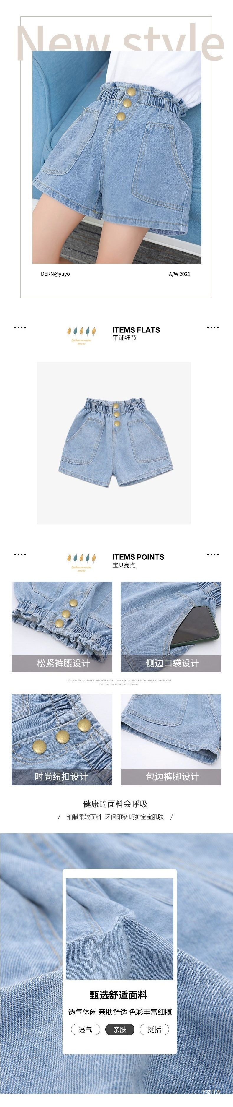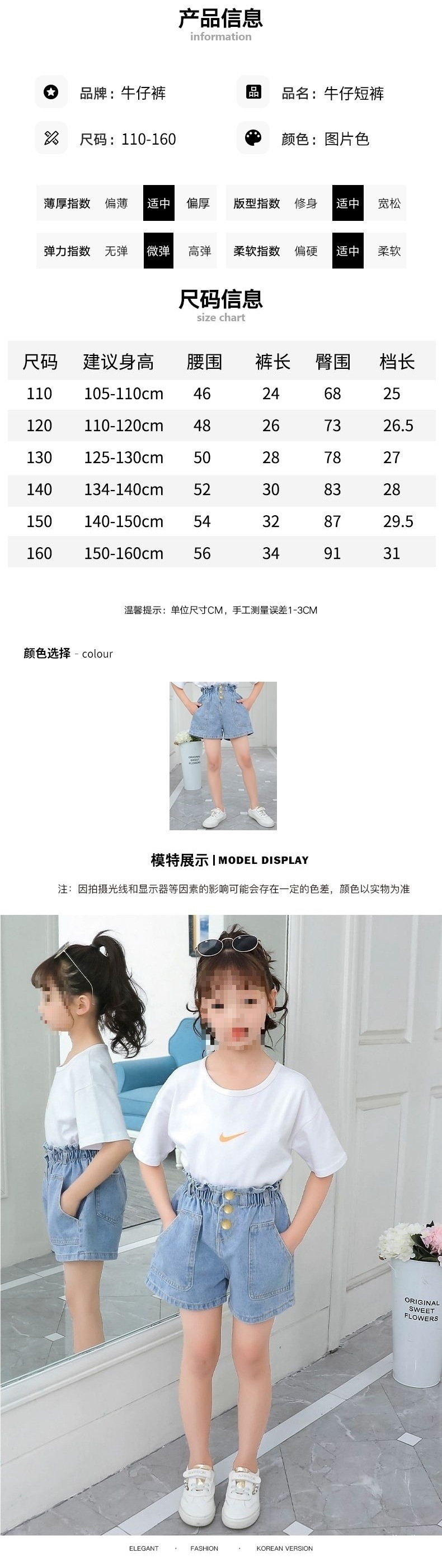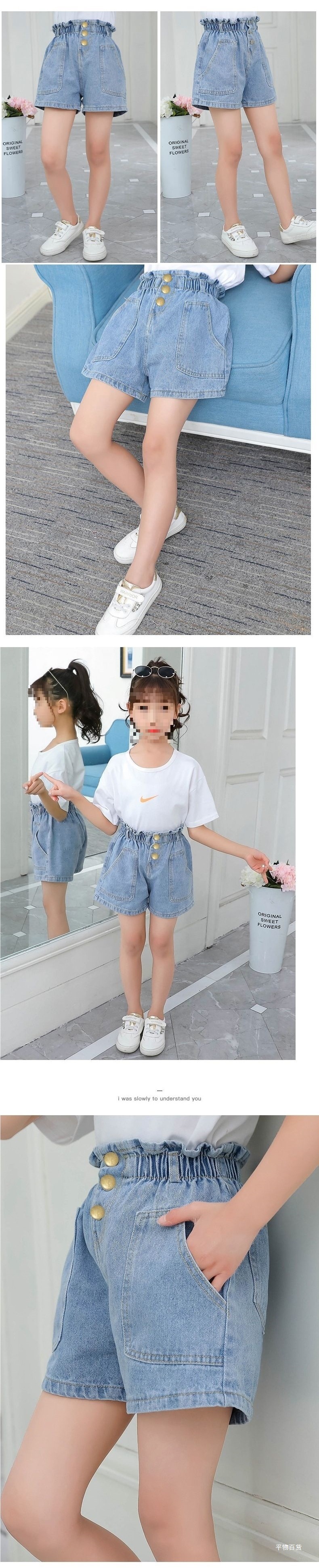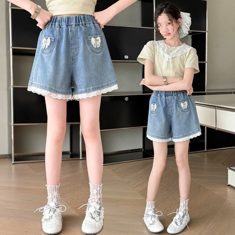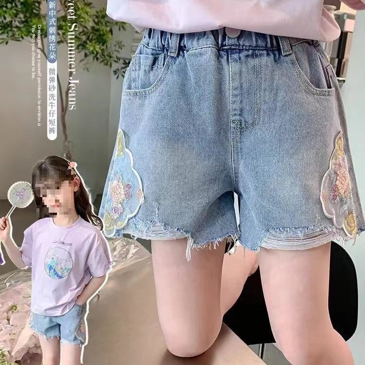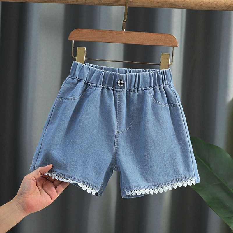 여아 데님 반바지, 트렌디한 여름 신상품, 여아 스타일, 다재다능함, 중대형 아동용 루즈한 하이웨이스트 아동용 반바지, 내구성스토어 가기