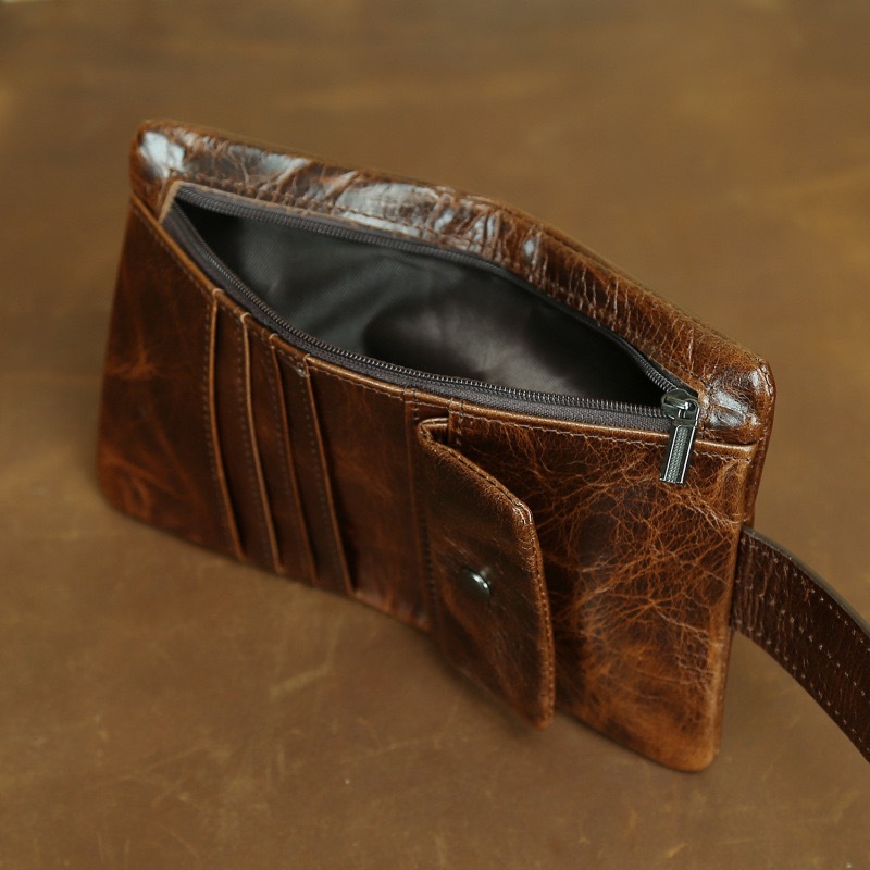국경 간 오일 왁스 가죽 정품 가죽 남성용 짧은 지갑 부드러운 1 층 소 가죽 복고풍 멀티 카드 슬롯 긴 동전 지갑 지갑