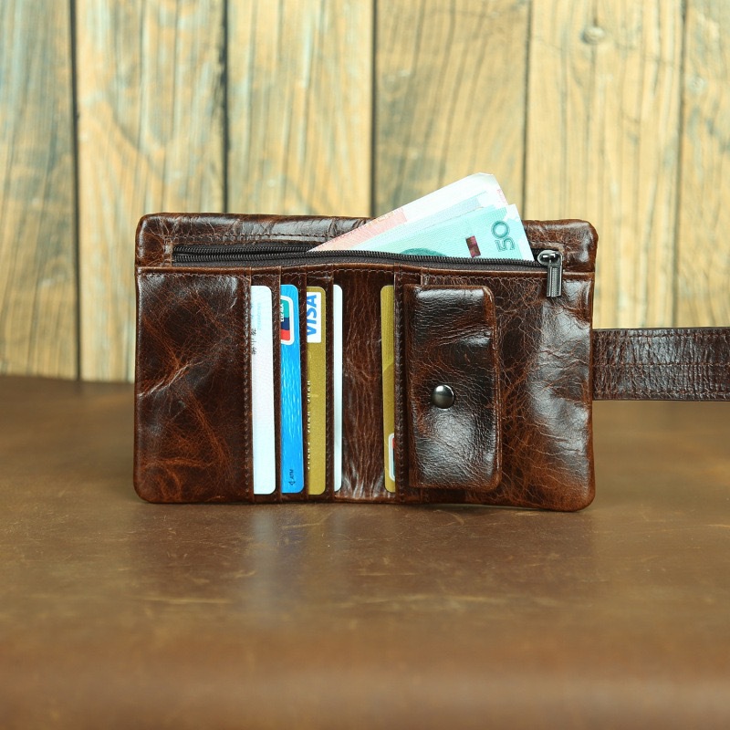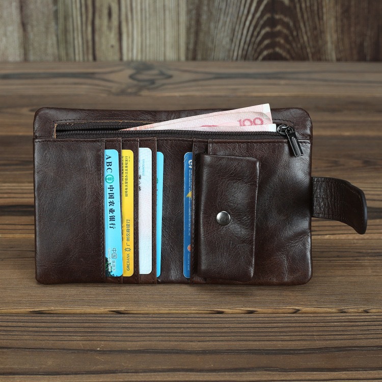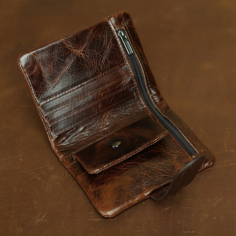 국경 간 오일 왁스 가죽 정품 가죽 남성용 짧은 지갑 부드러운 1 층 소 가죽 복고풍 멀티 카드 슬롯 긴 동전 지갑 지갑스토어 가기
