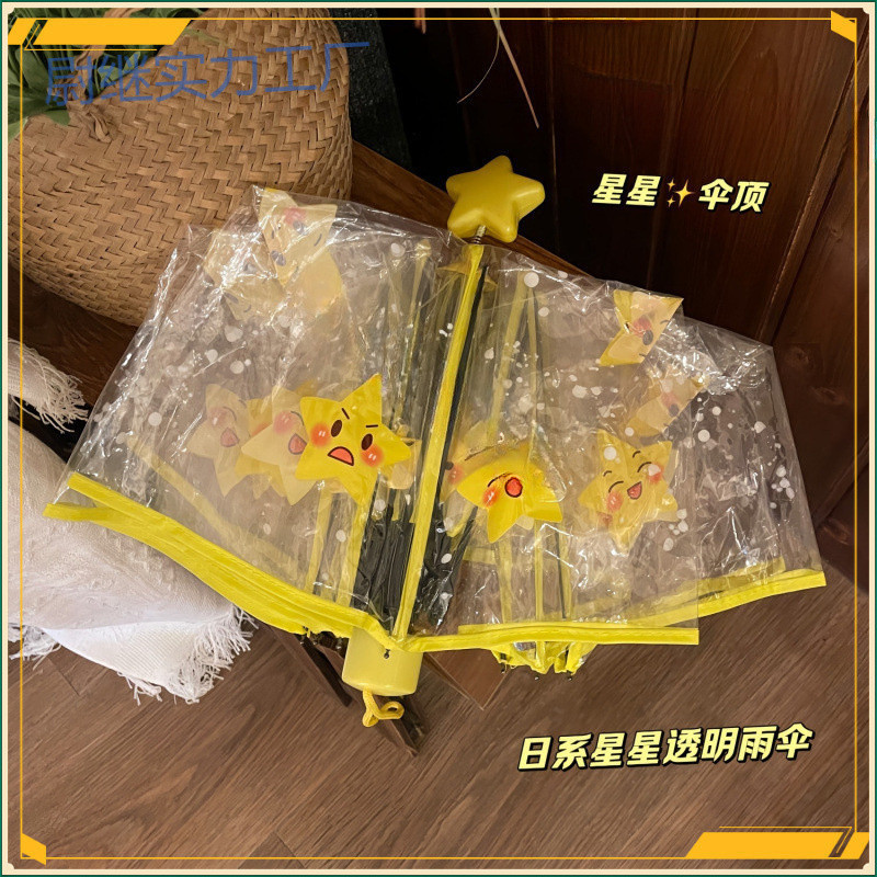 Yp 우산 우산 귀여운 별 ins 접는 어린이 우산 완전 자동 신선하고 투명한 긴 손잡이 학생 만화 플러스스토어 가기