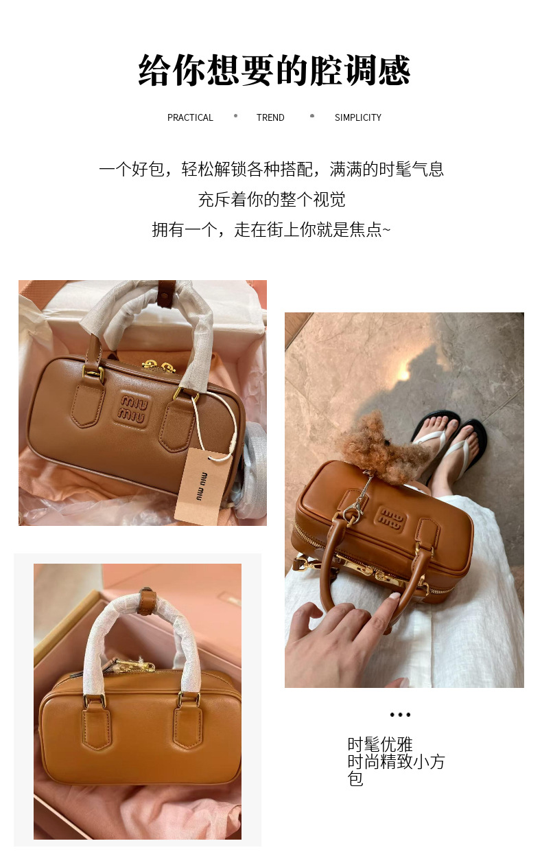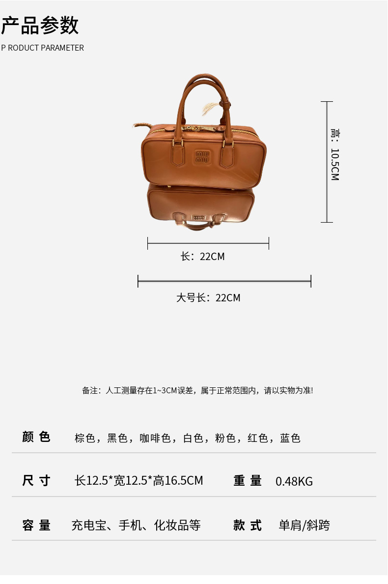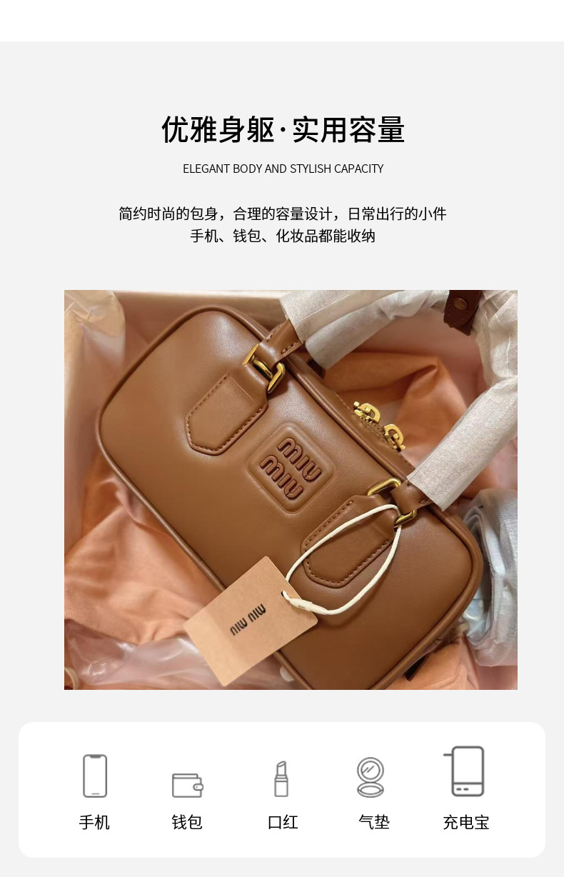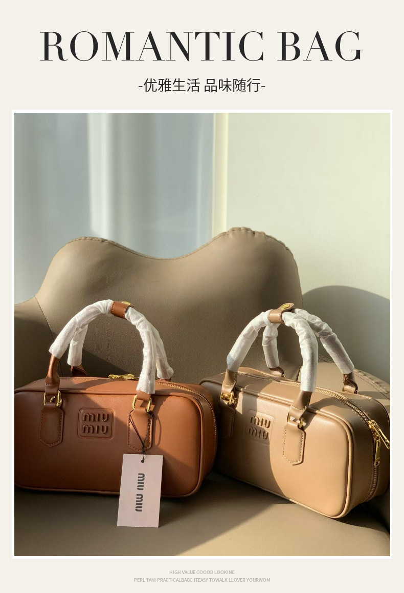 MIU 정품 가죽 보스턴백 핸드백 볼링백 숄더 크로스백 여성용 가방 클러치 백 여성용 고급