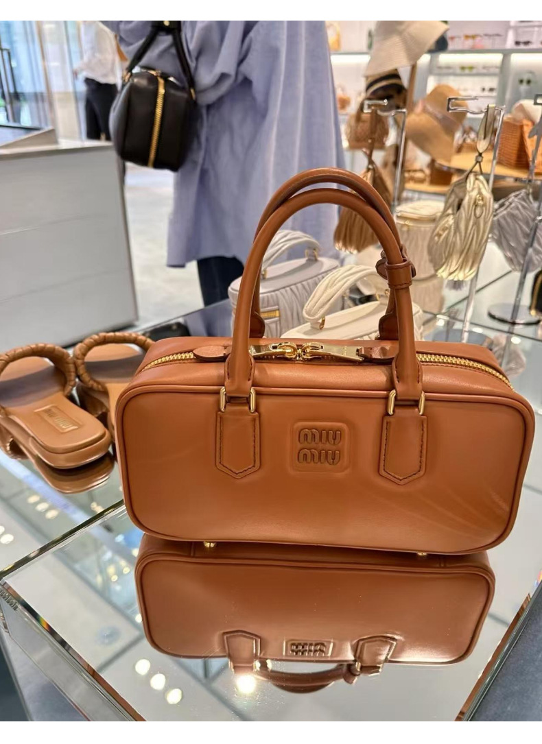 MIU 정품 가죽 보스턴백 핸드백 볼링백 숄더 크로스백 여성용 가방 클러치 백 여성용 고급스토어 가기