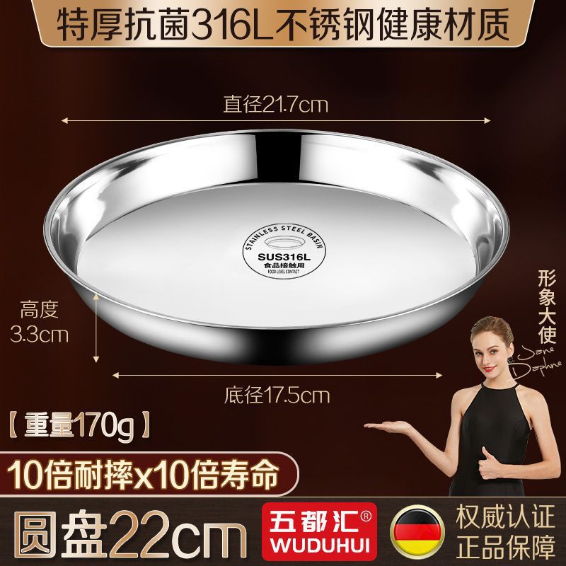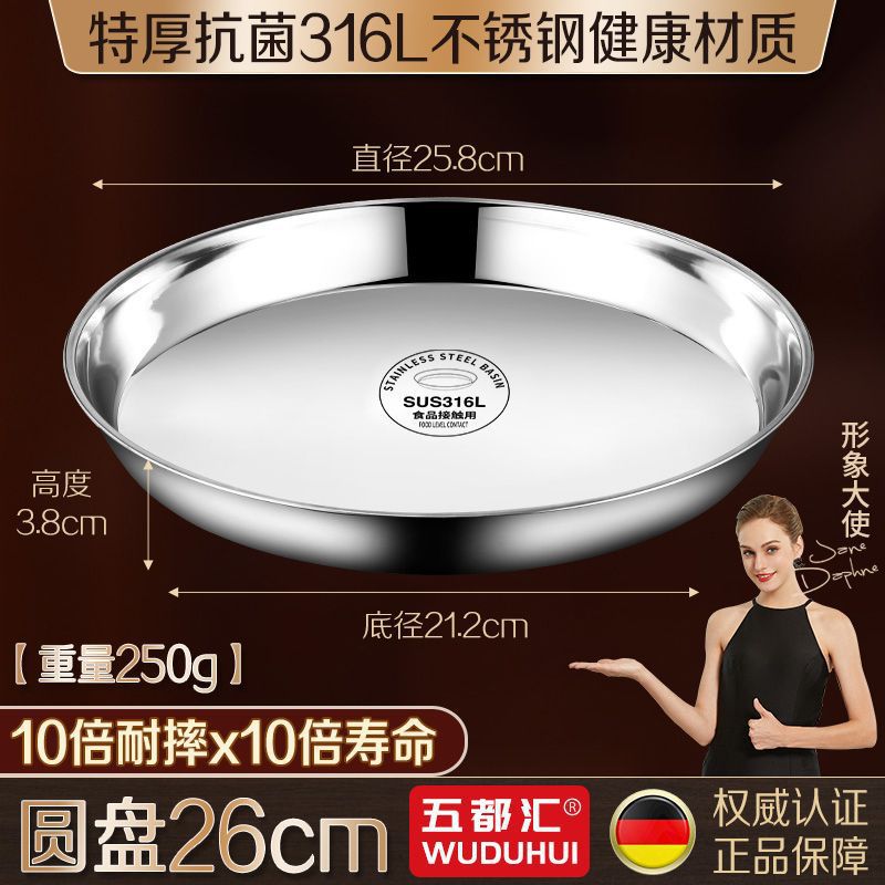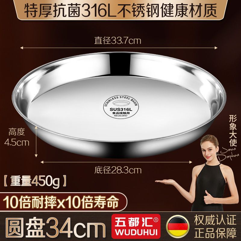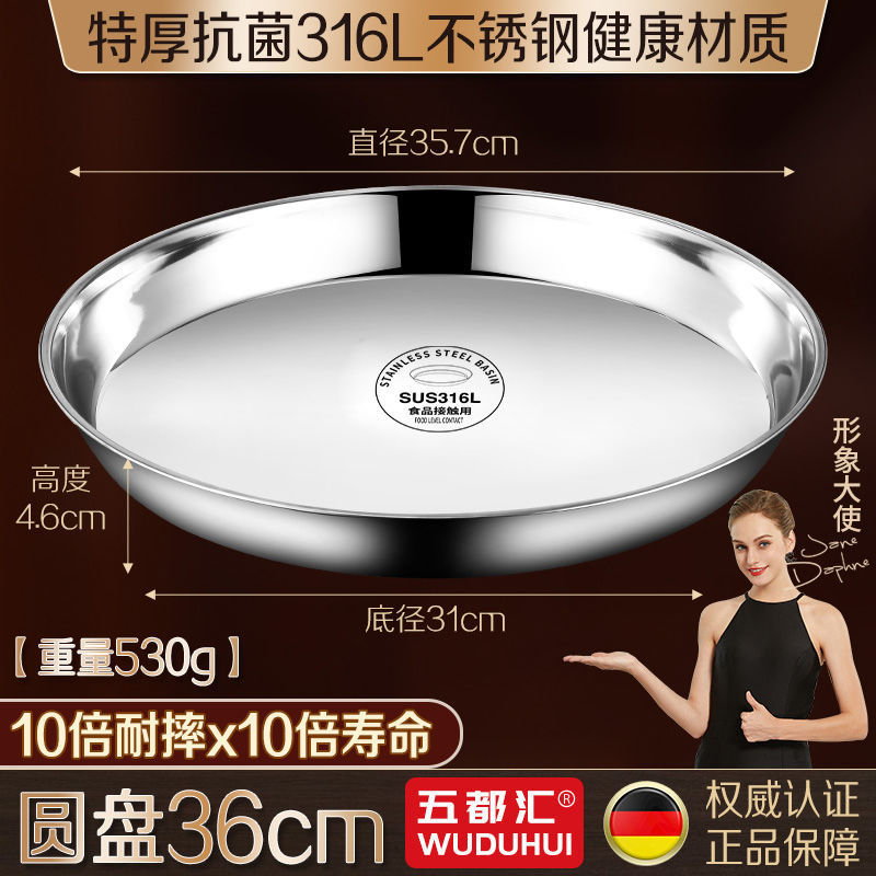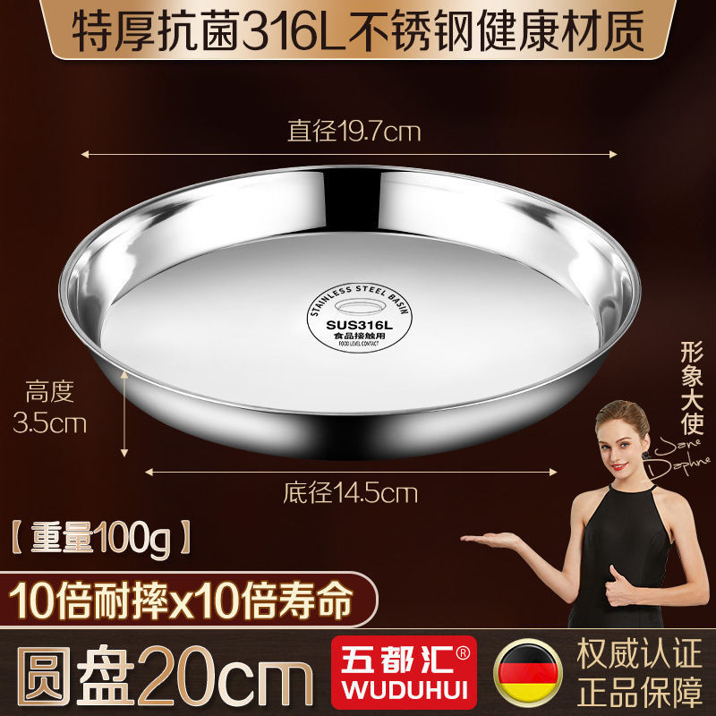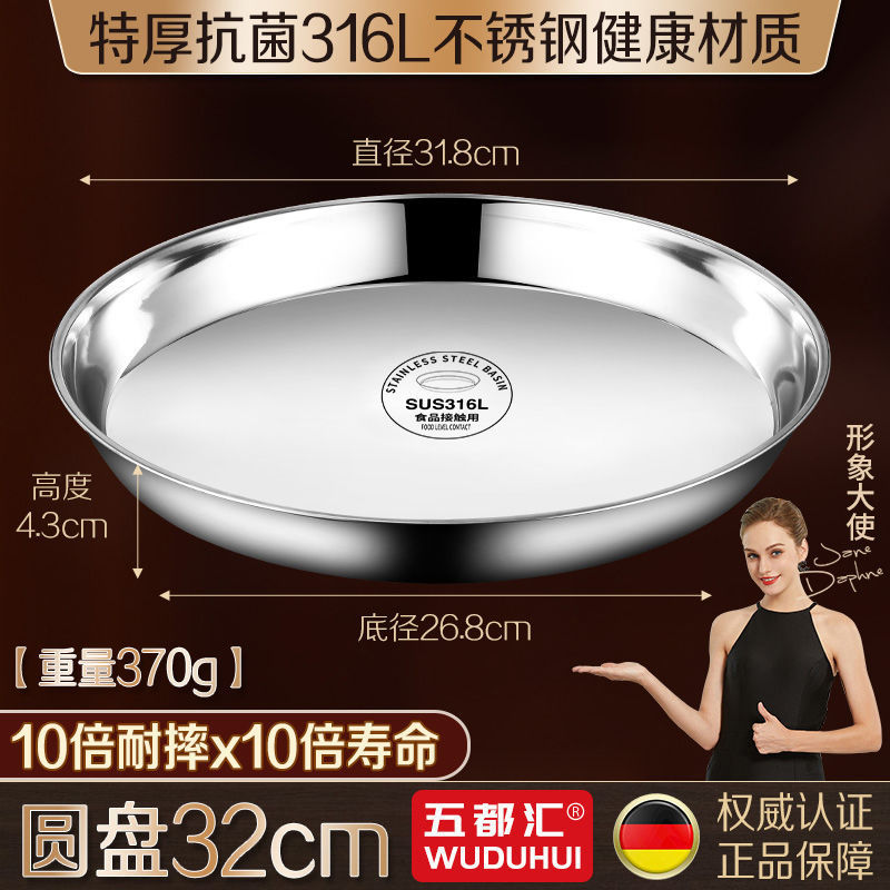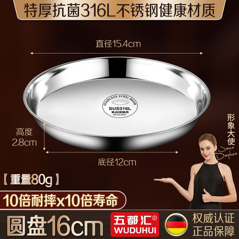 316 스테인레스 스틸 접시 원형 접시 304 식품 등급 접시 접시 가정용 찜 케이크 접시 찜 접시 두꺼운 철 접시 접시스토어 가기