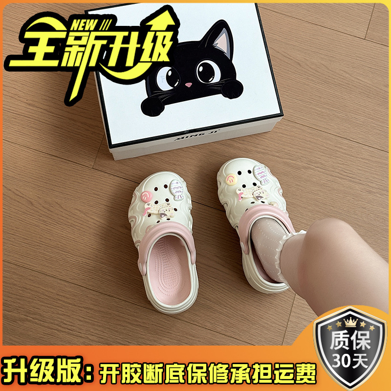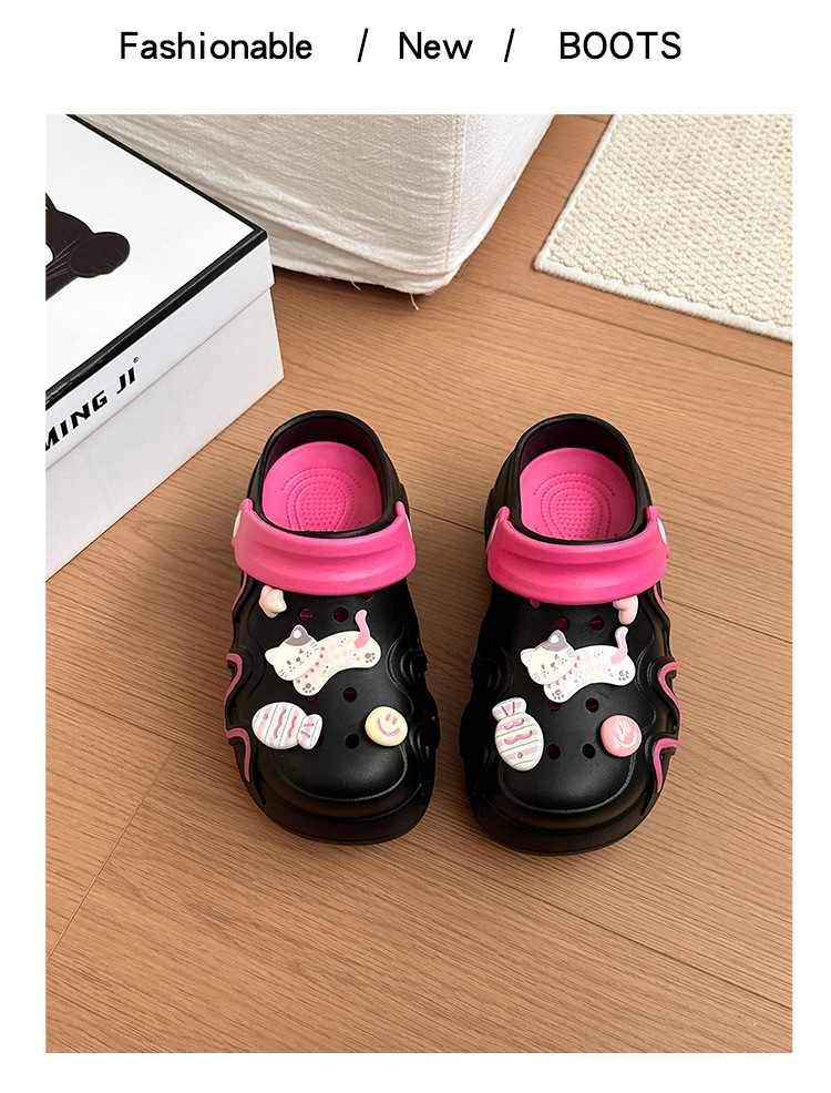여성을위한 귀여운 KT 고양이 구멍 신발 2025 여름 새 겉옷 Xiaoyuzai 두꺼운 밑창 투웨어 비치 발가락 샌들스토어 가기