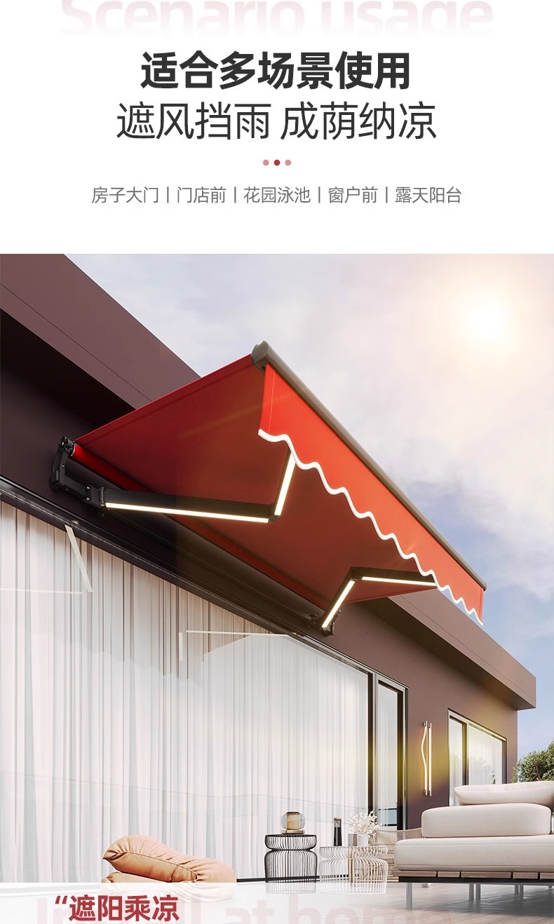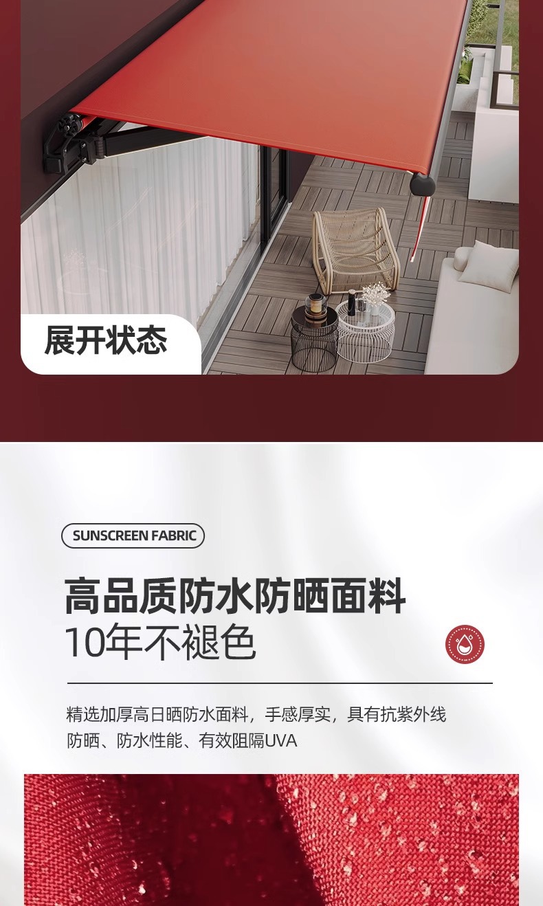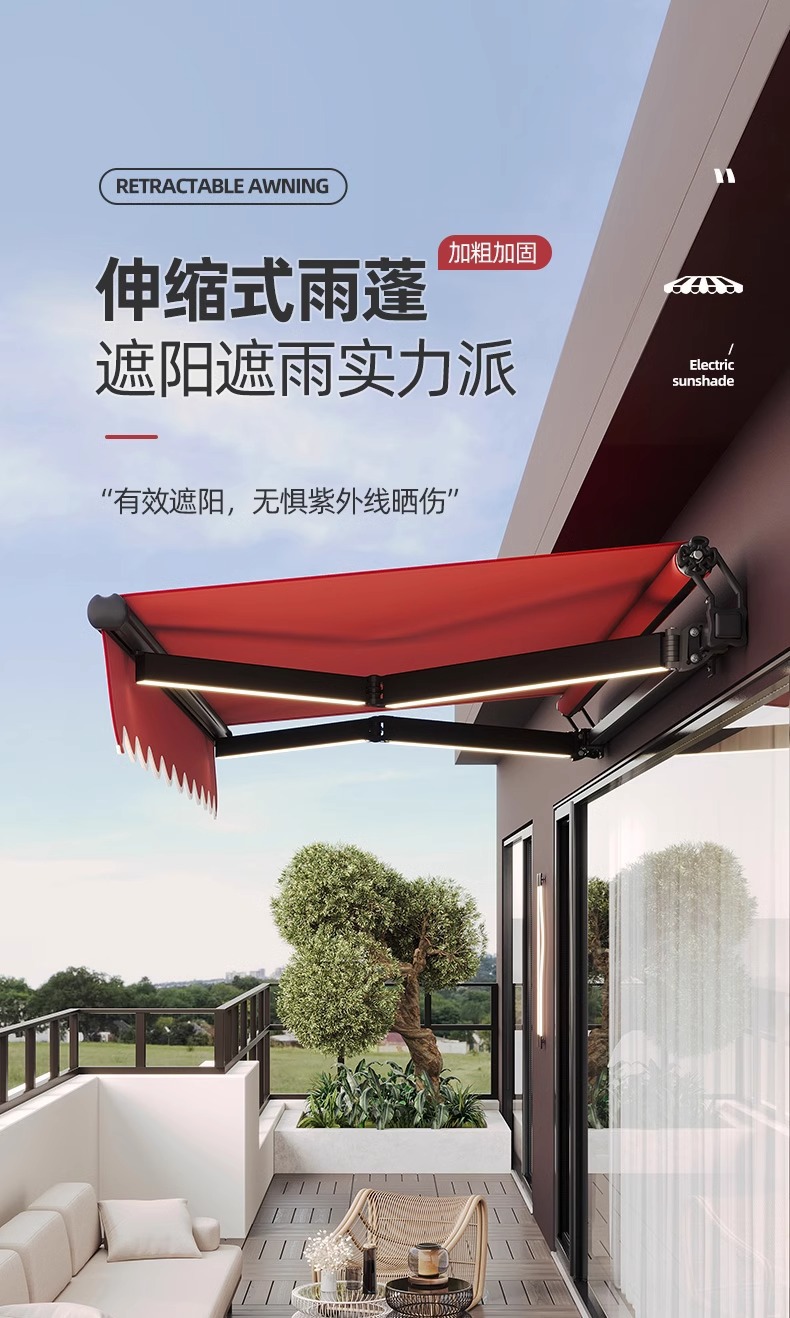더블빔 체인 차양 접이식 개폐식 홈 발코니 파라솔 수축 캐노피 야외 차양 핸드 크랭크 블랙스토어 가기