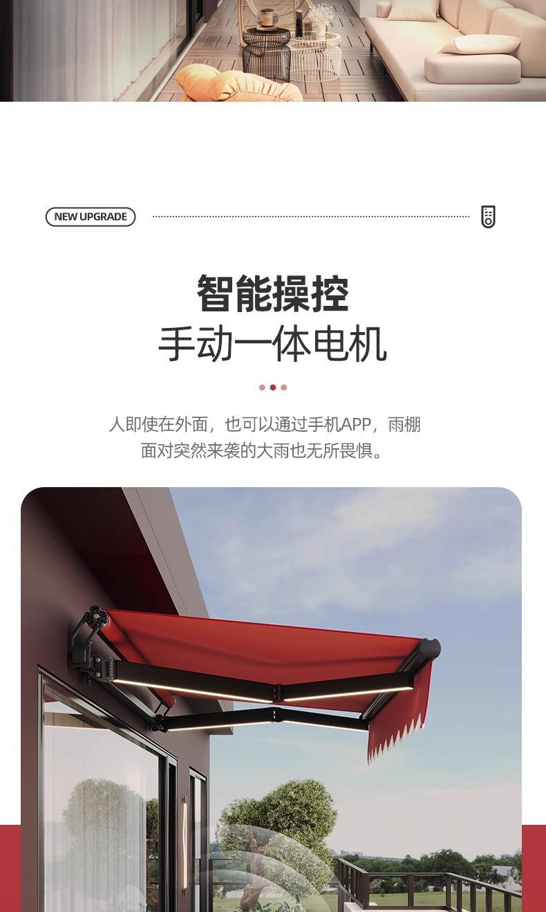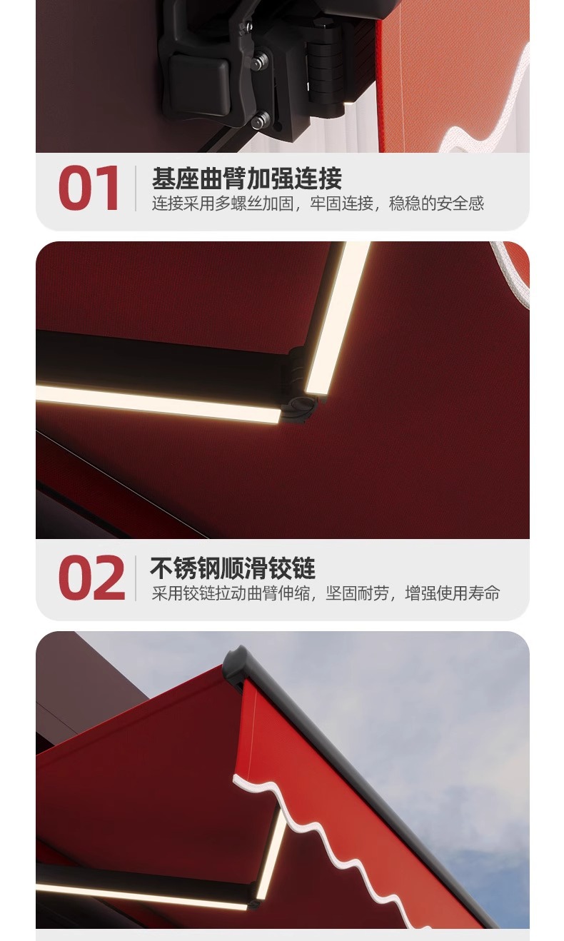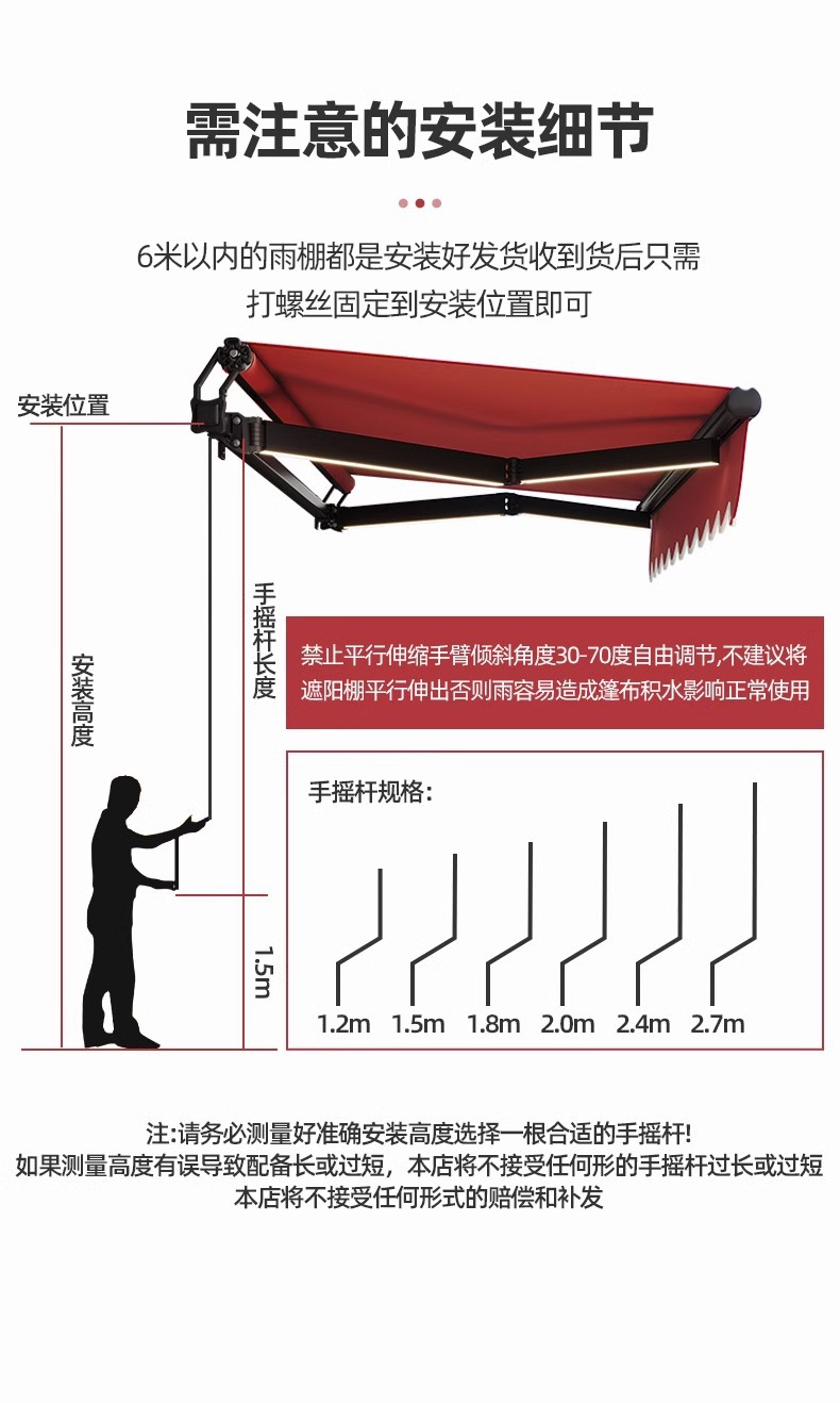 더블빔 체인 차양 접이식 개폐식 홈 발코니 파라솔 수축 캐노피 야외 차양 핸드 크랭크 블랙스토어 가기