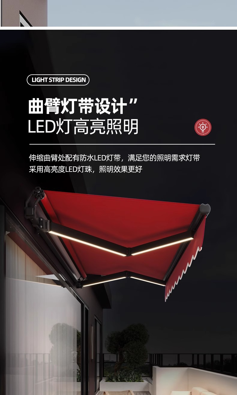 더블빔 체인 차양 접이식 개폐식 홈 발코니 파라솔 수축 캐노피 야외 차양 핸드 크랭크 블랙