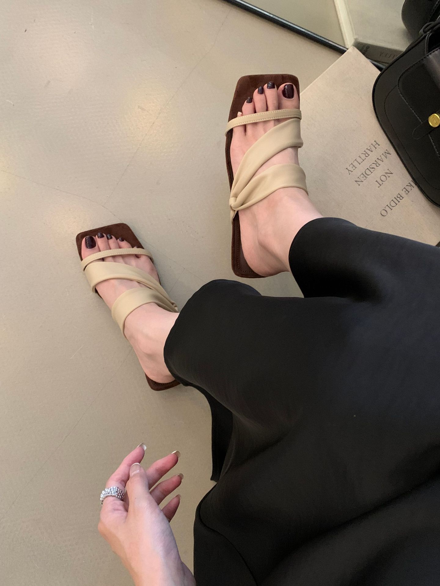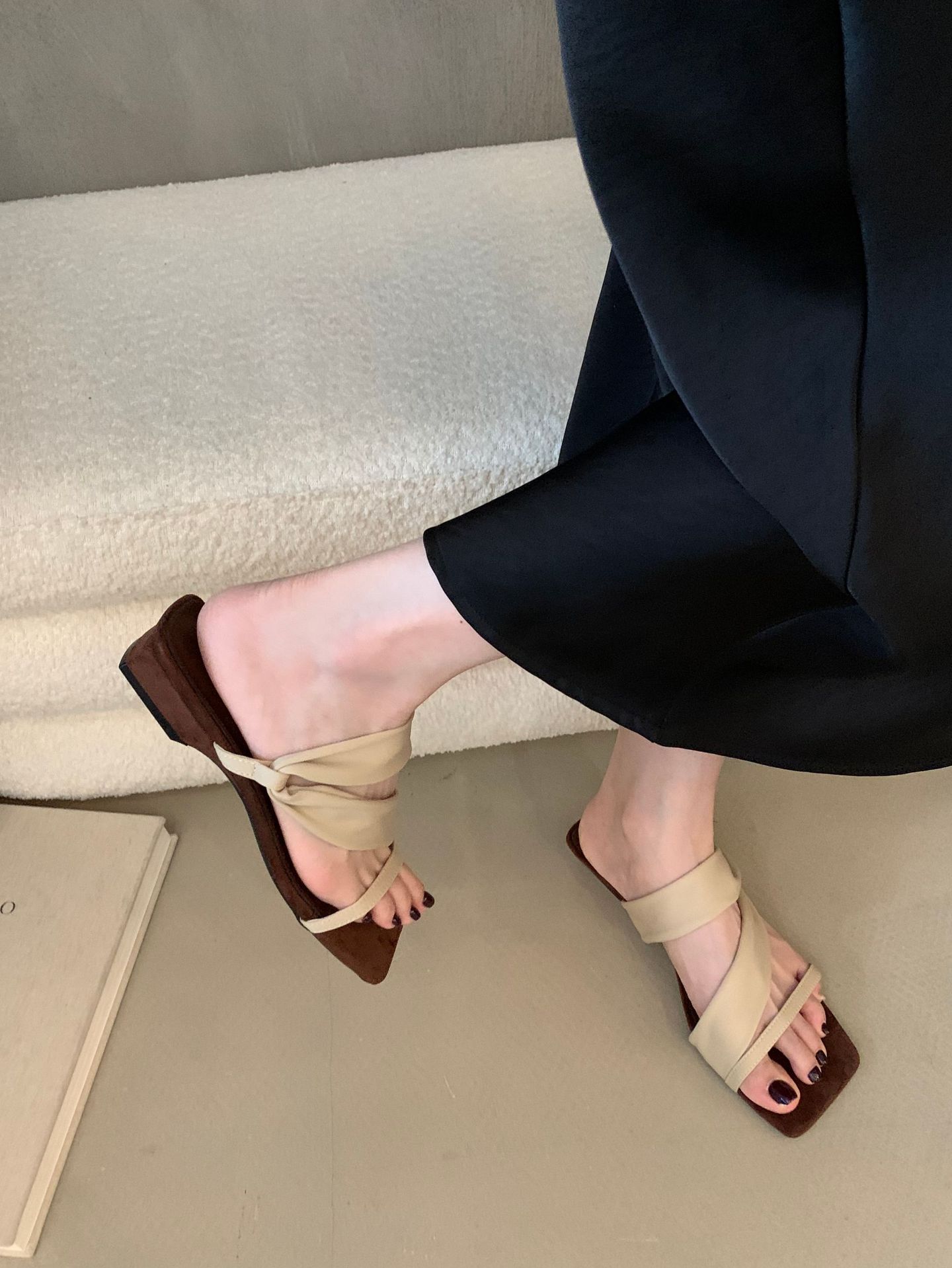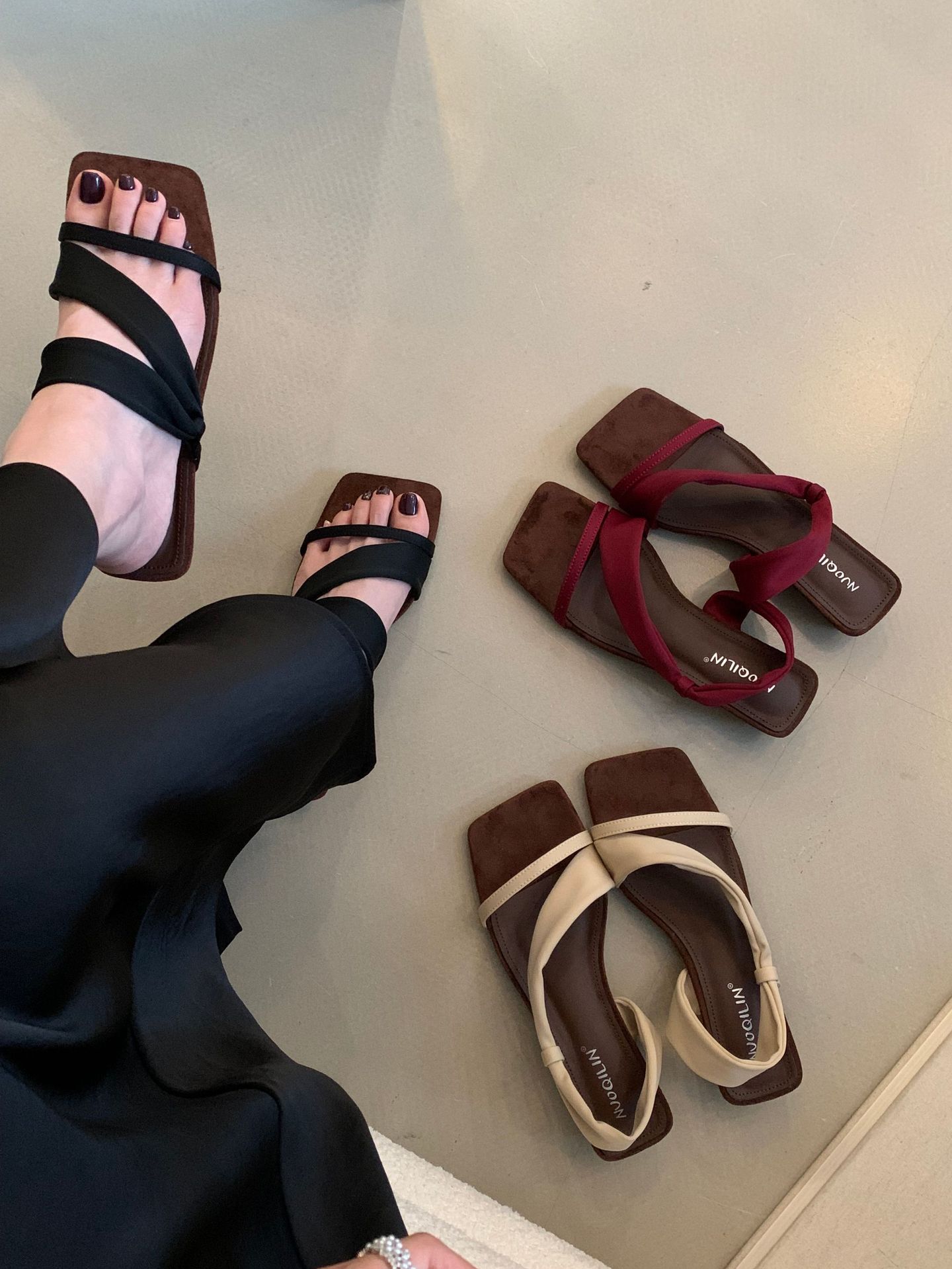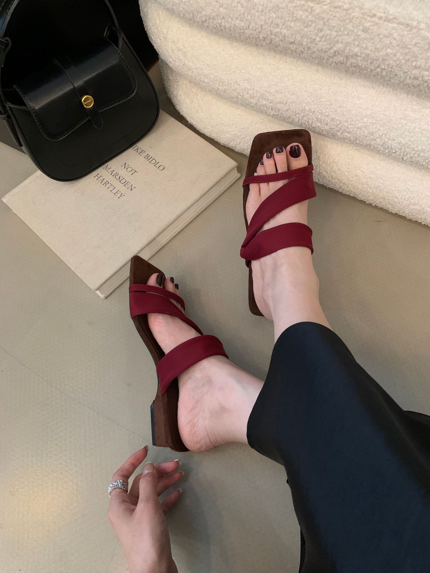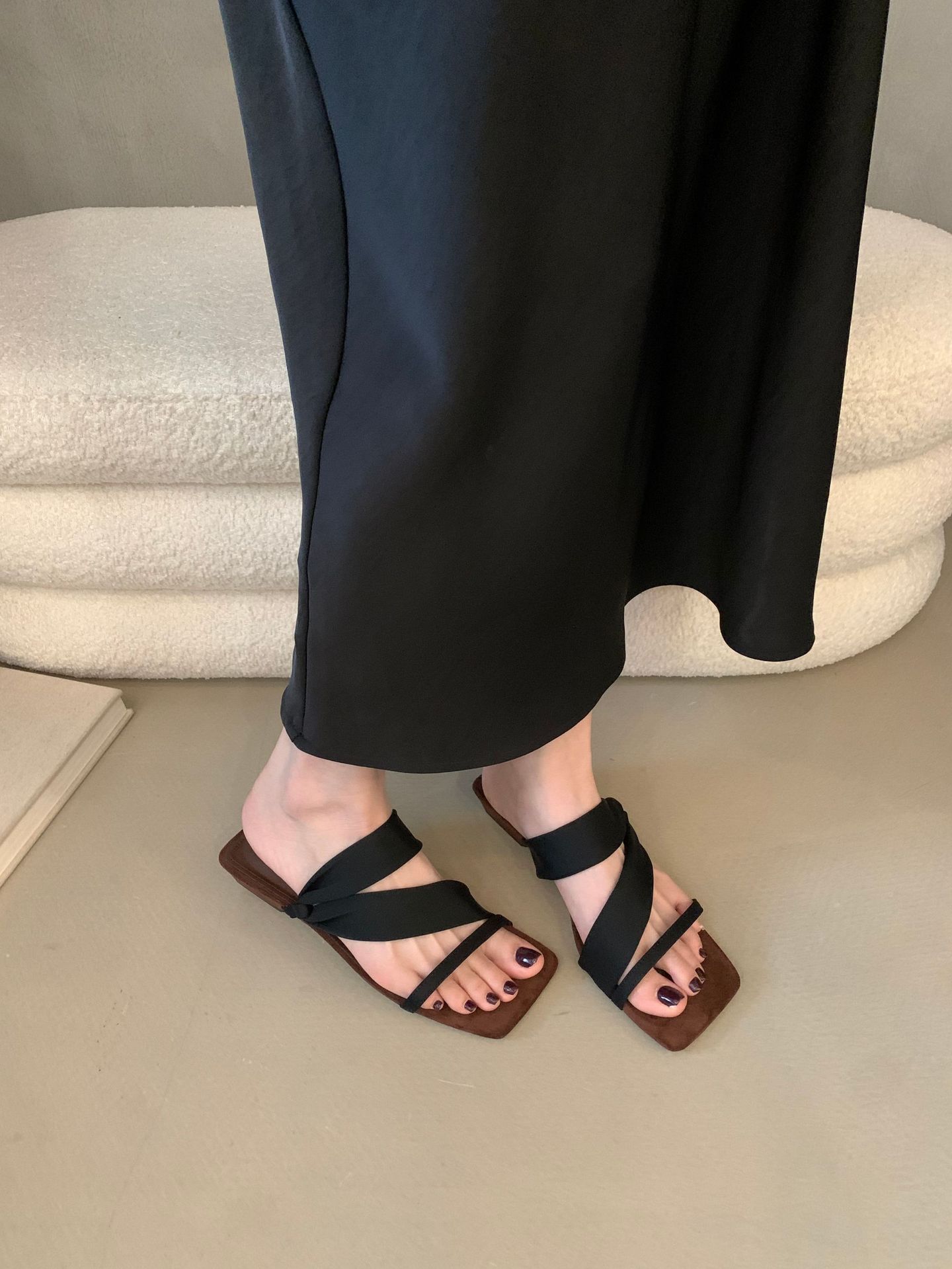 2025년 신상 여름 스타일 새틴 슬리퍼, 유럽과 미국 스타일의 웨지힐 슬리퍼, 여성용 패셔너블한 두꺼운 굽 샌들