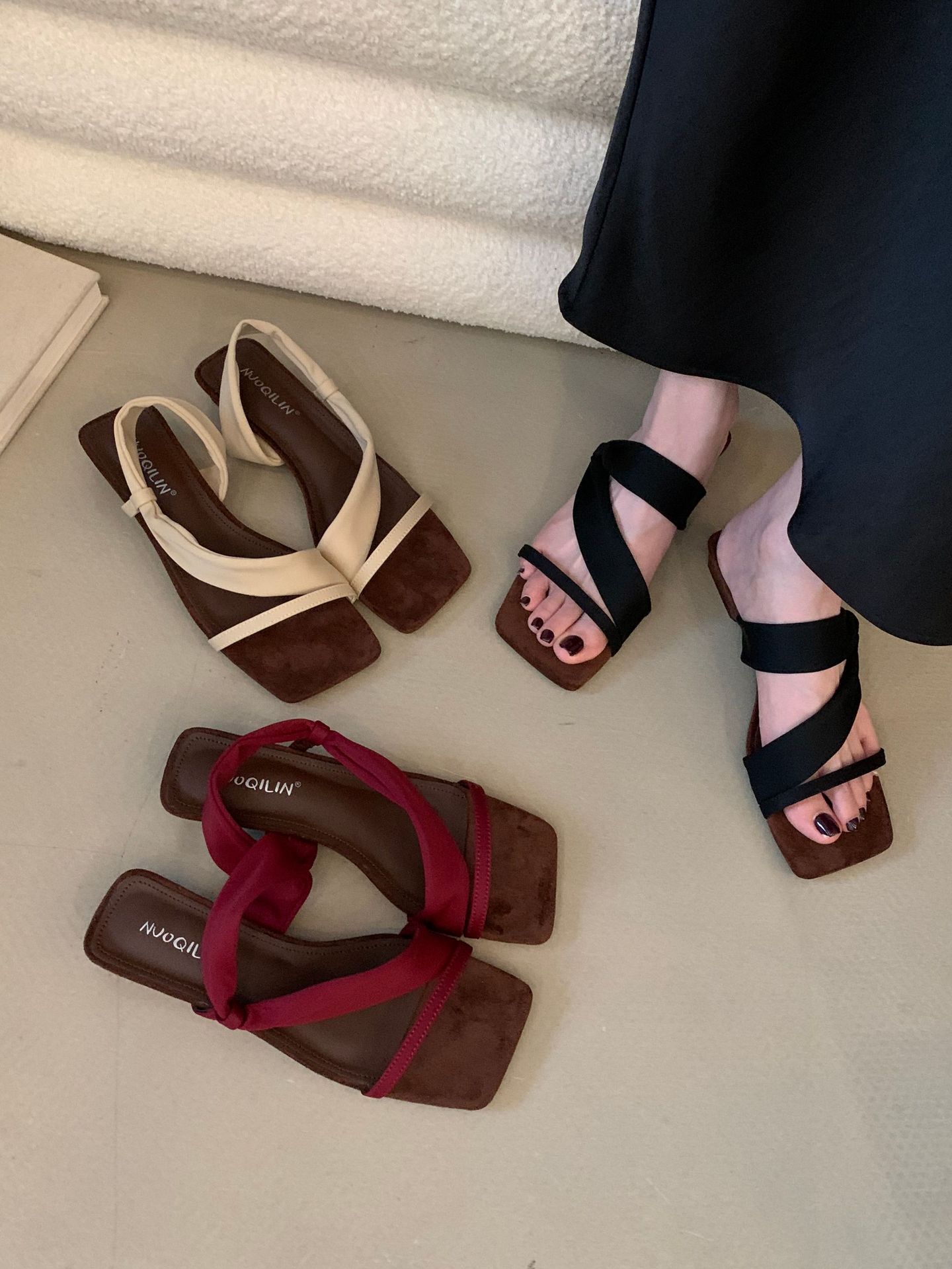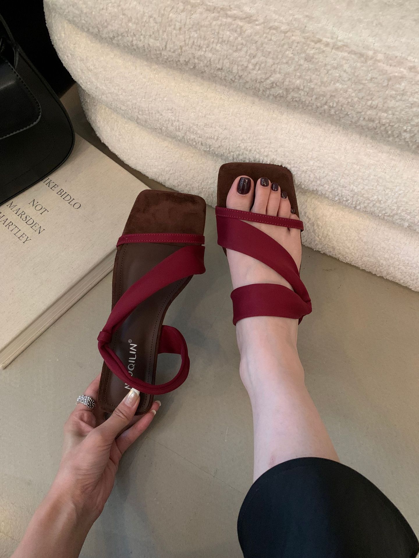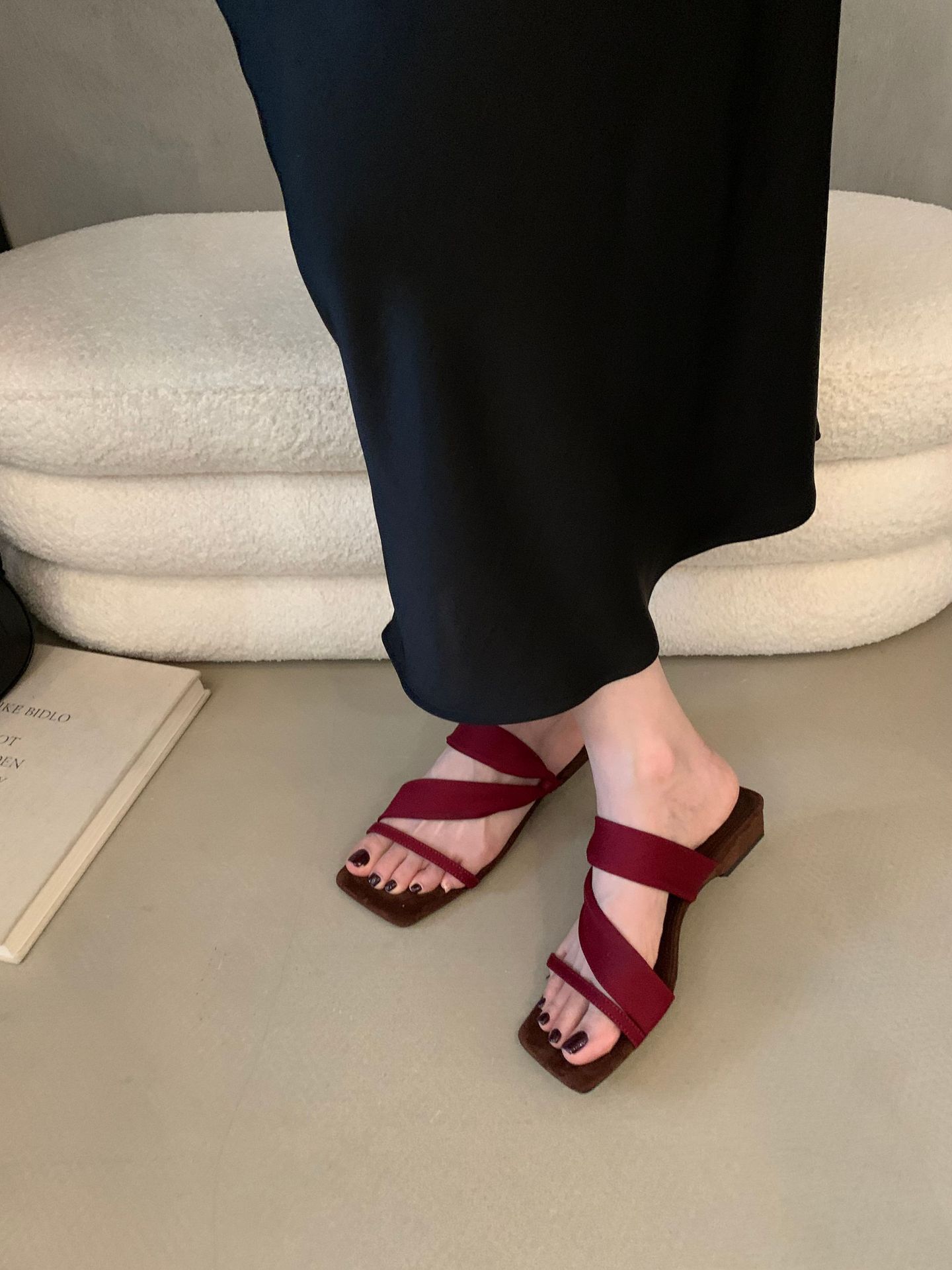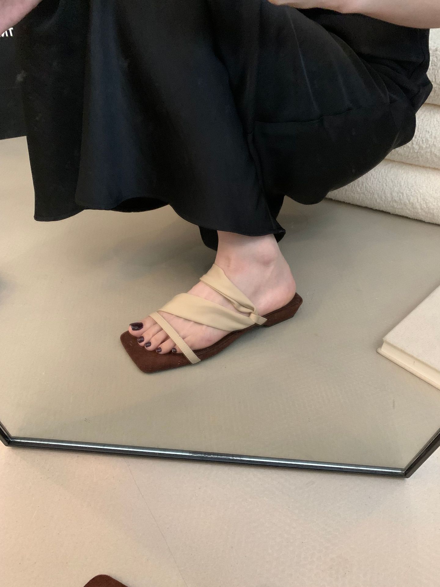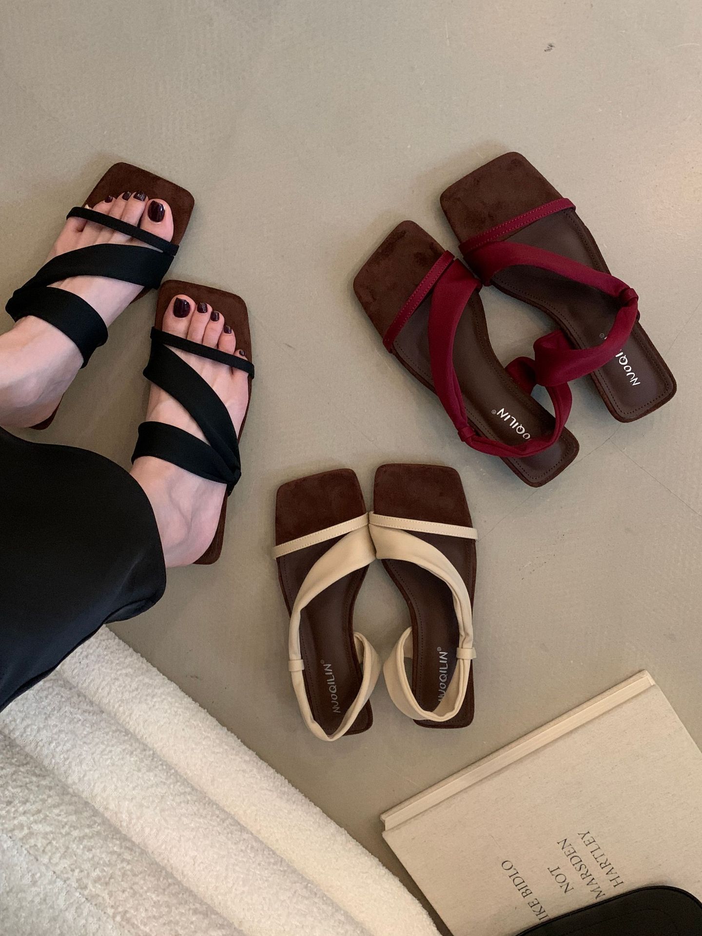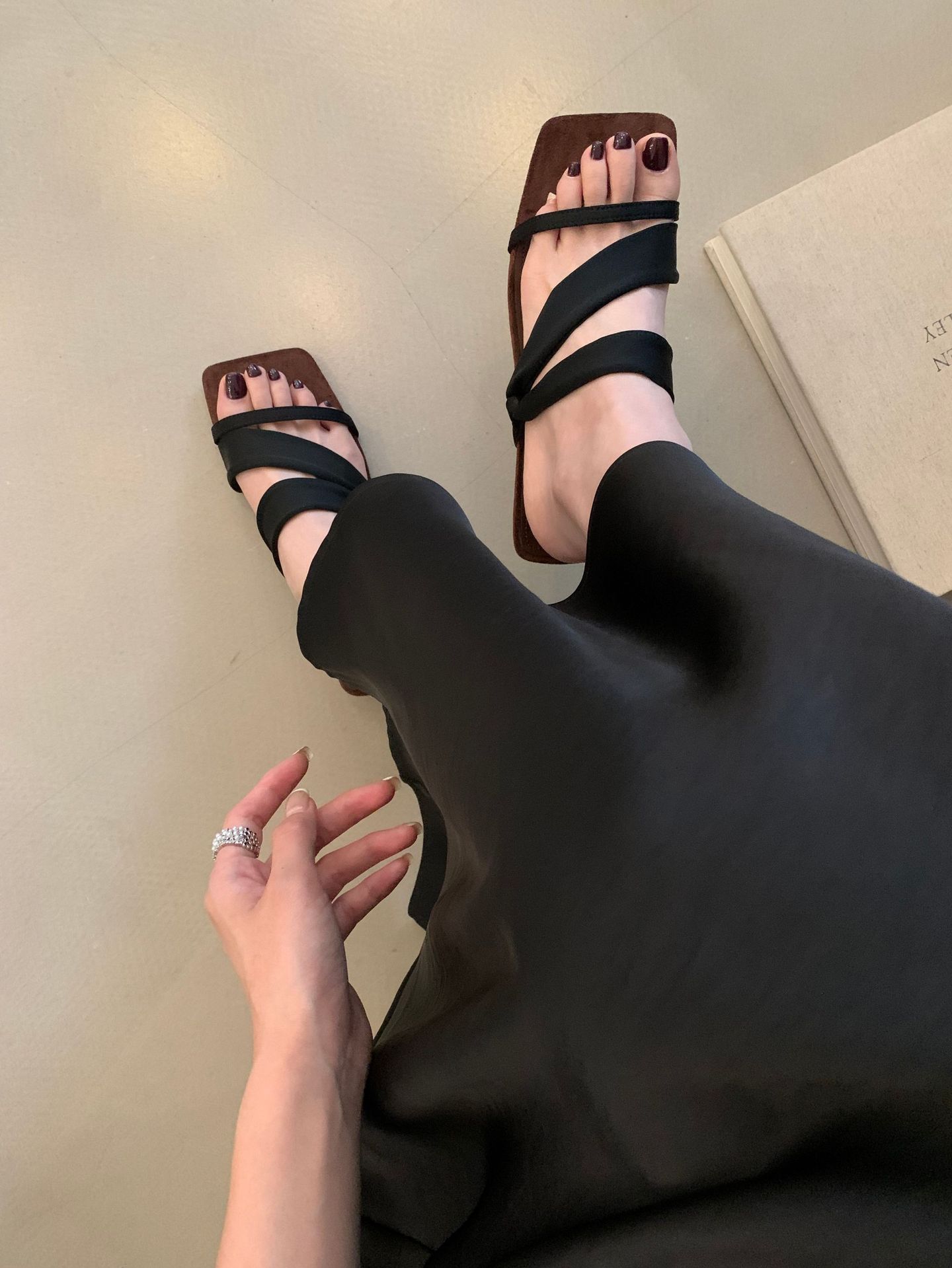2025년 신상 여름 스타일 새틴 슬리퍼, 유럽과 미국 스타일의 웨지힐 슬리퍼, 여성용 패셔너블한 두꺼운 굽 샌들