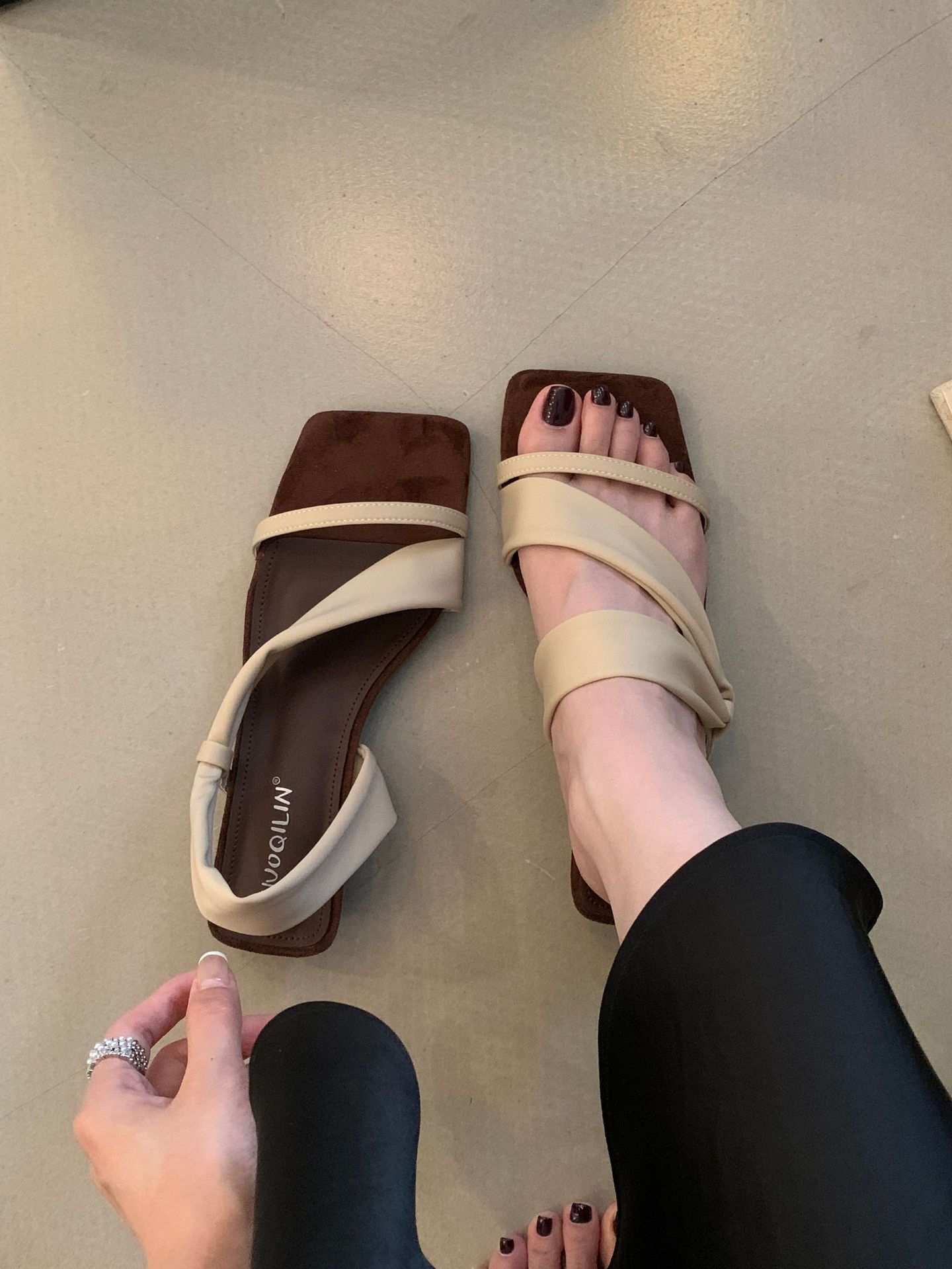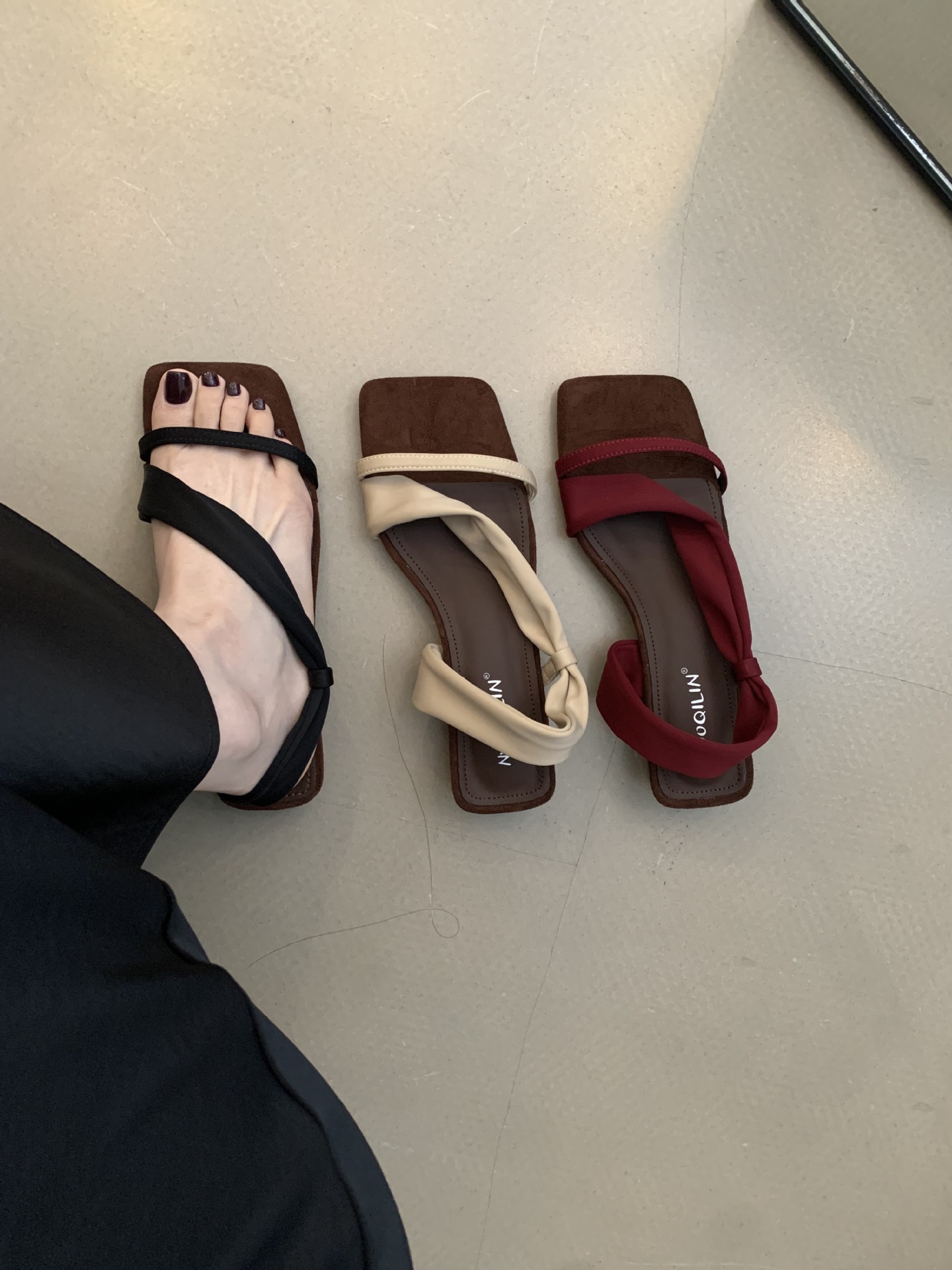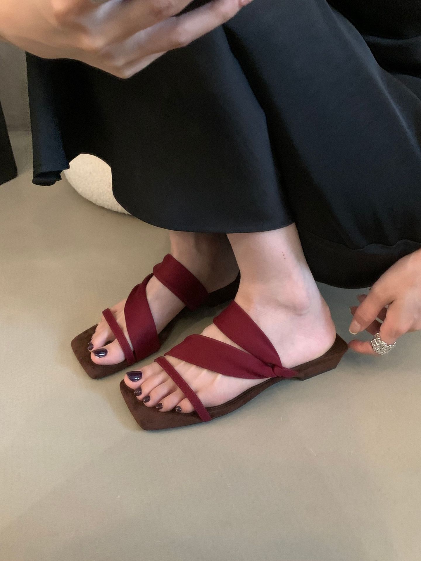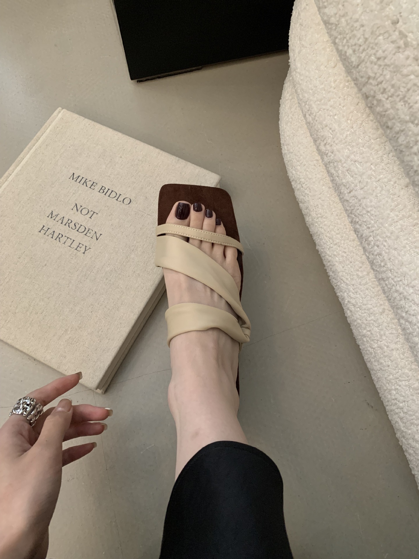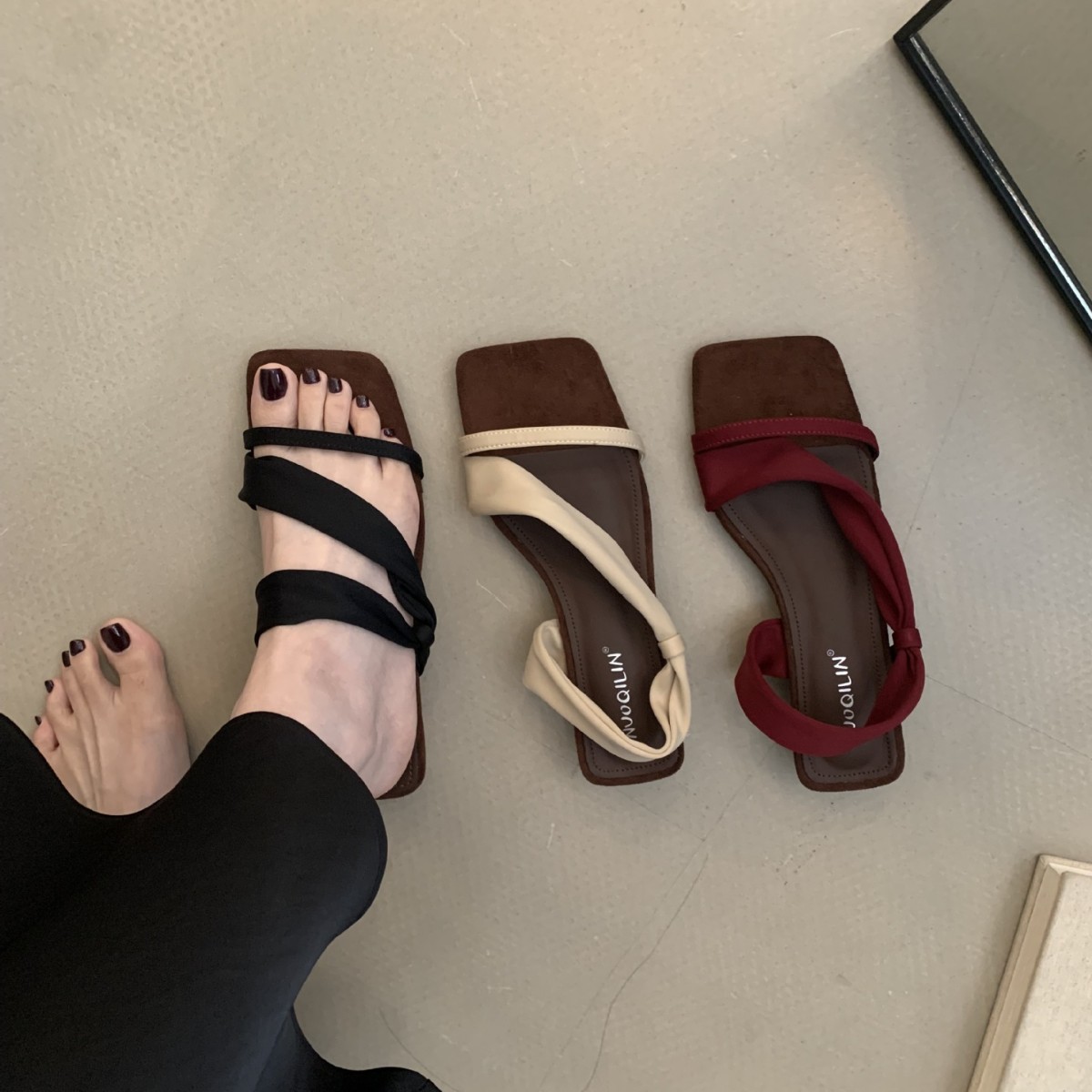 2025년 신상 여름 스타일 새틴 슬리퍼, 유럽과 미국 스타일의 웨지힐 슬리퍼, 여성용 패셔너블한 두꺼운 굽 샌들