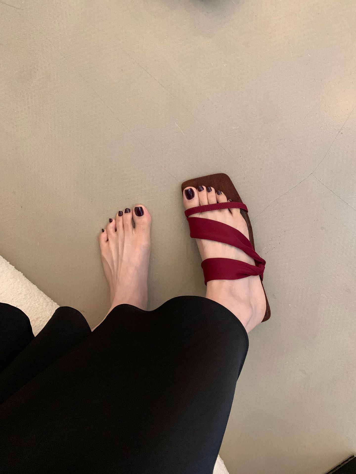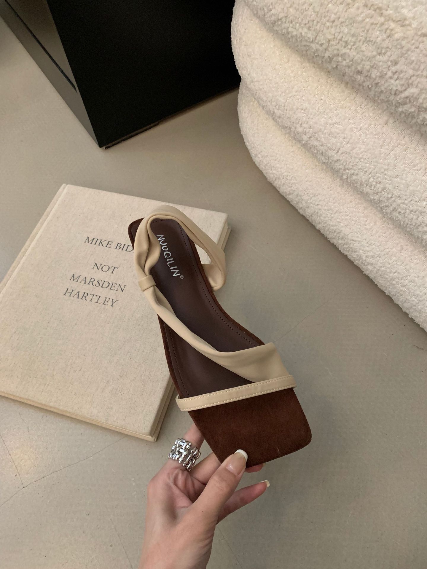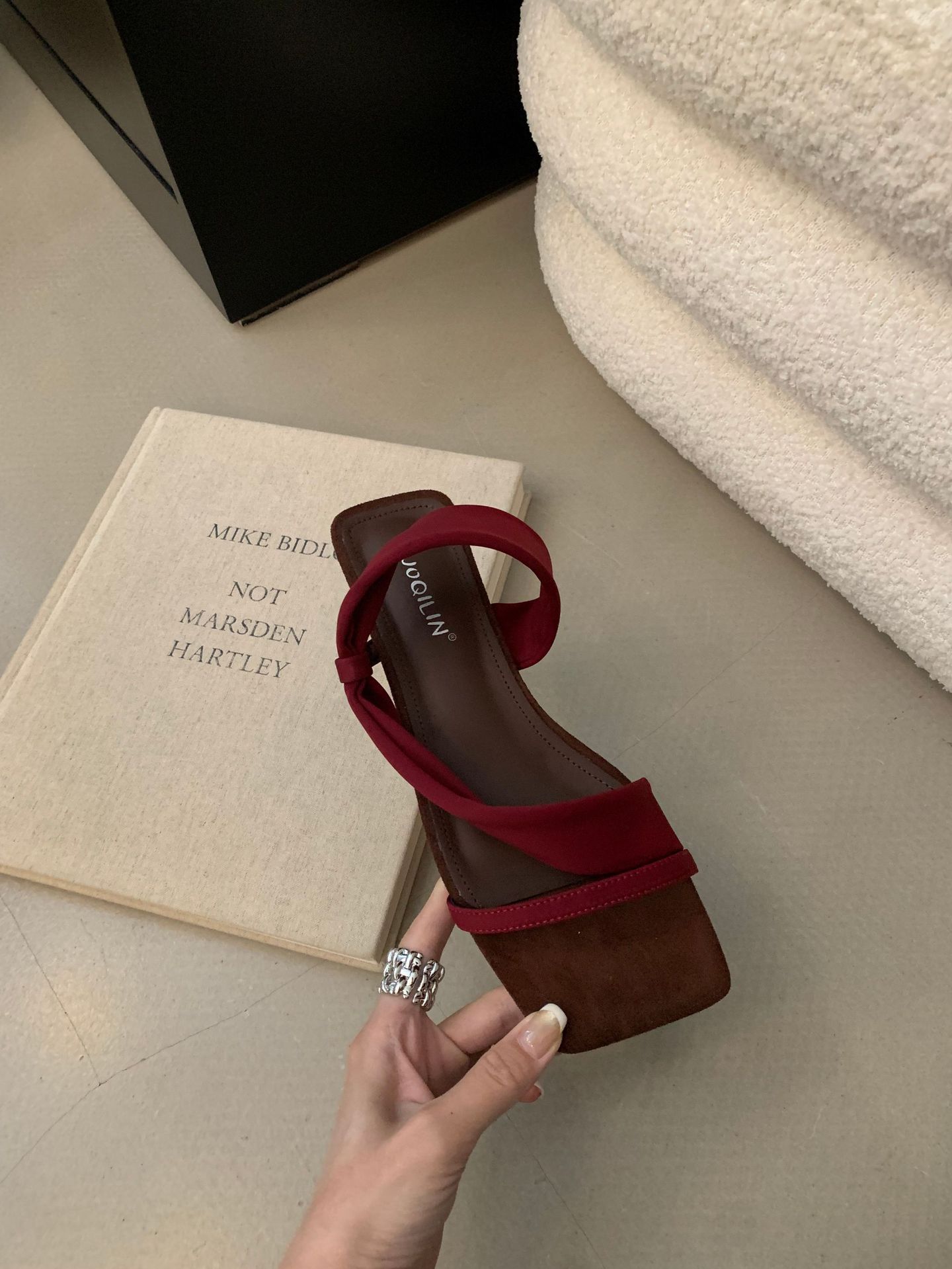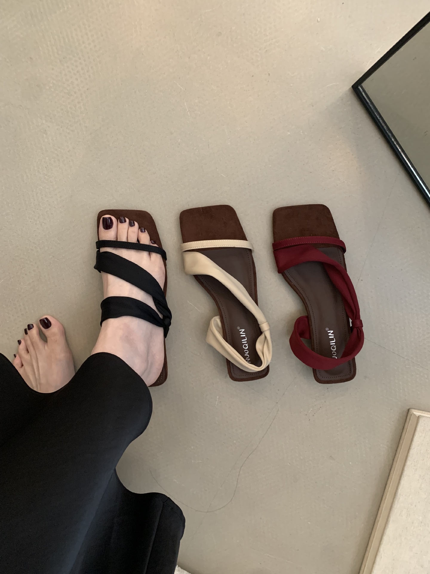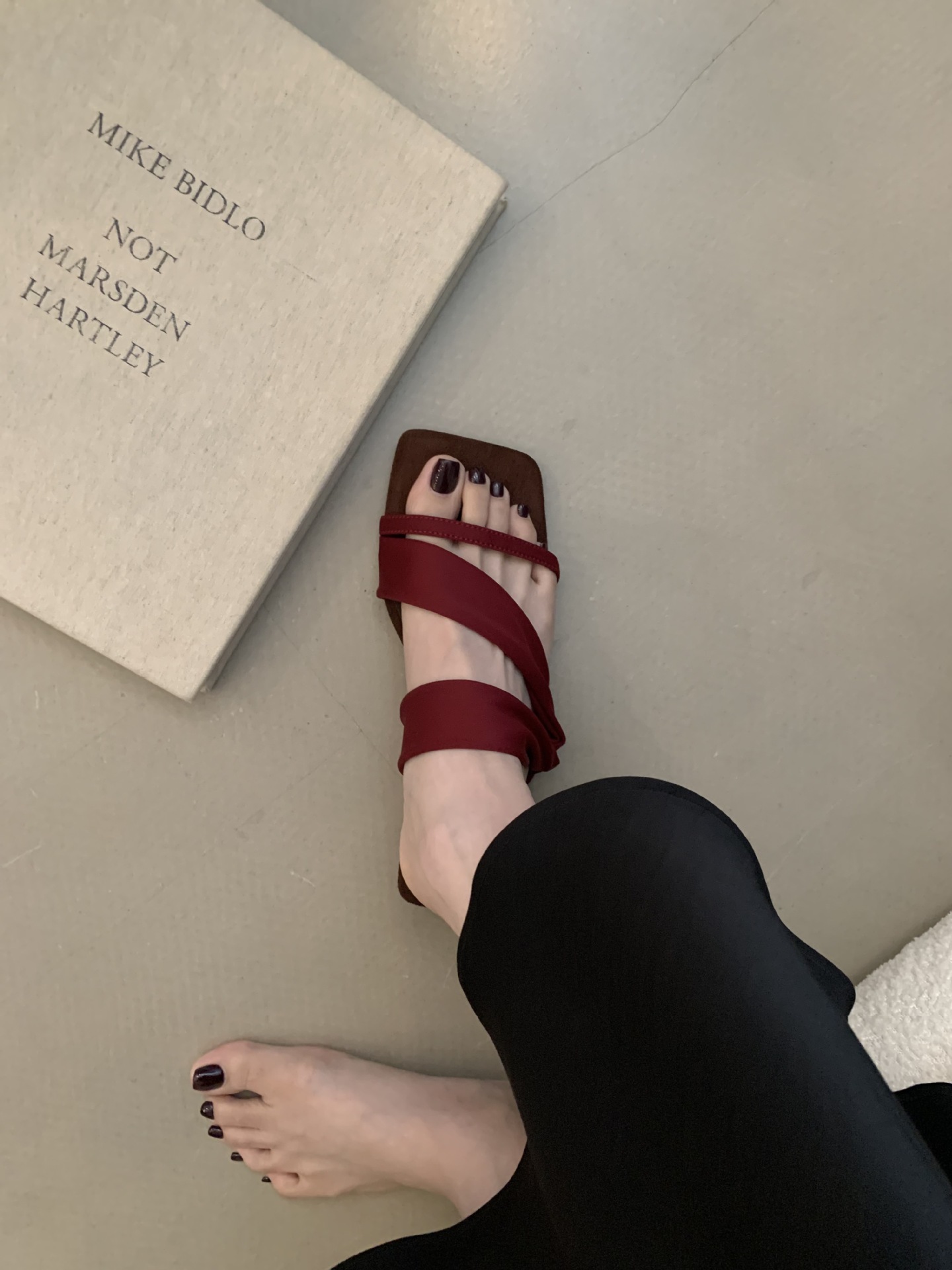 2025년 신상 여름 스타일 새틴 슬리퍼, 유럽과 미국 스타일의 웨지힐 슬리퍼, 여성용 패셔너블한 두꺼운 굽 샌들