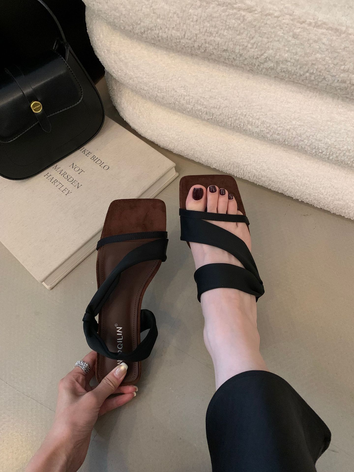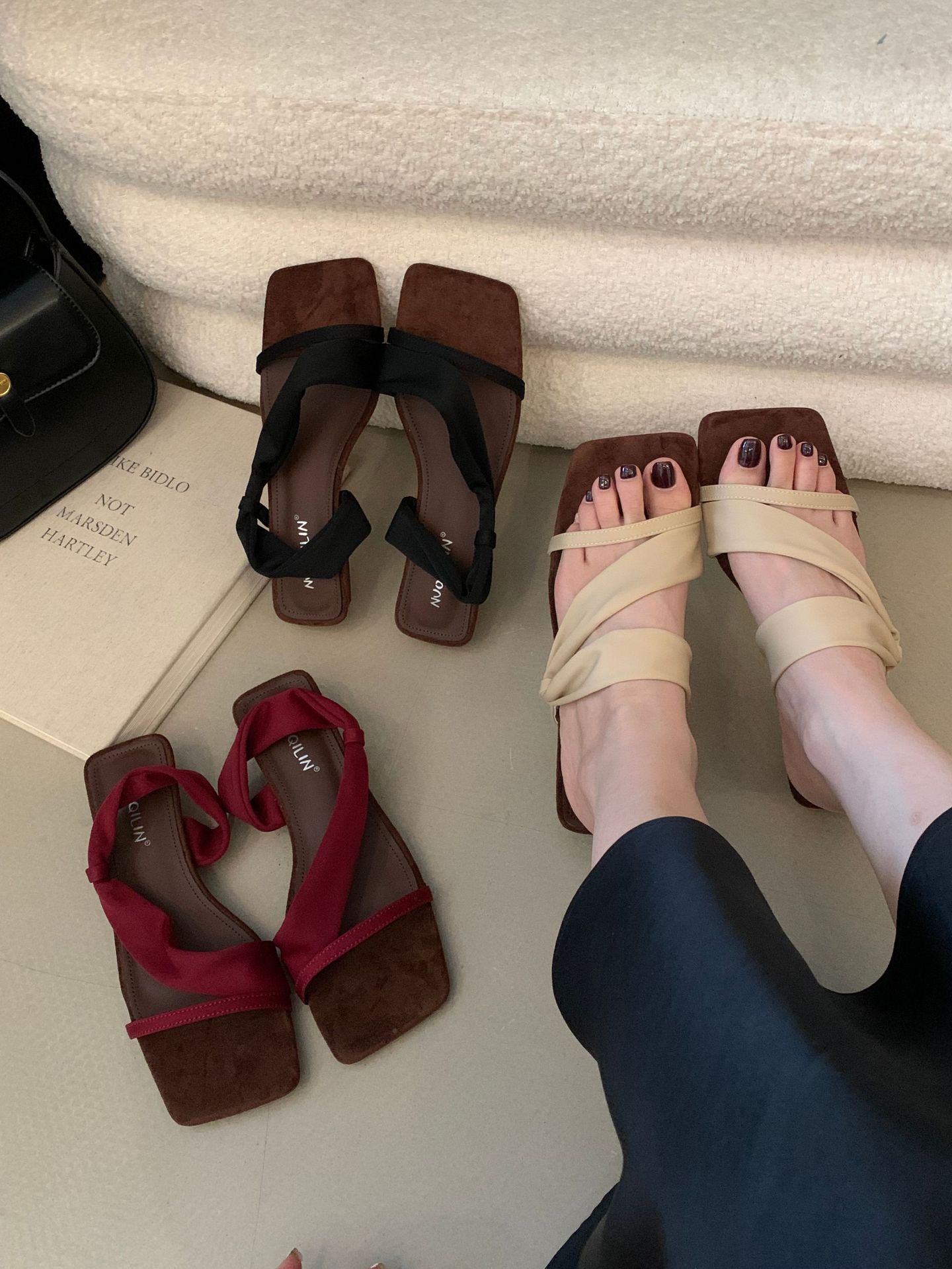 2025년 신상 여름 스타일 새틴 슬리퍼, 유럽과 미국 스타일의 웨지힐 슬리퍼, 여성용 패셔너블한 두꺼운 굽 샌들스토어 가기