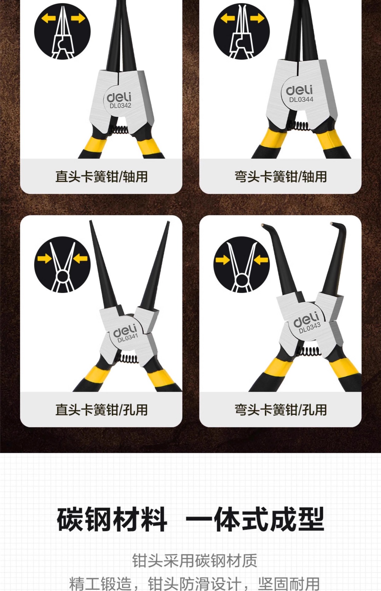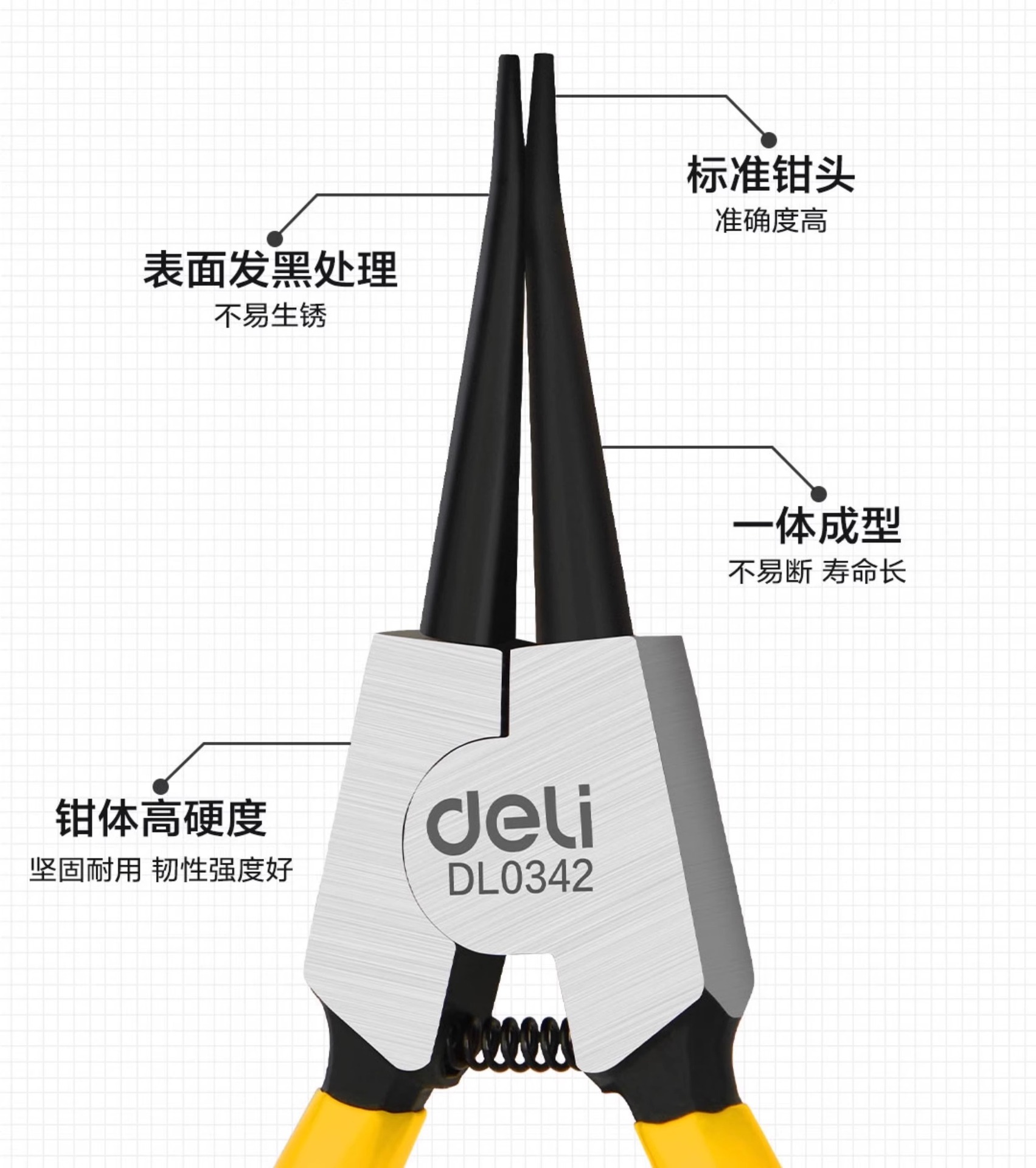 델리툴 DL0333 일본식 내부 곡선 스냅링 플라이어 5inch 크롬 바나듐 스틸 스냅링 플라이어 내부 직선 및 외부 곡선 스냅링 플라이어 직선
