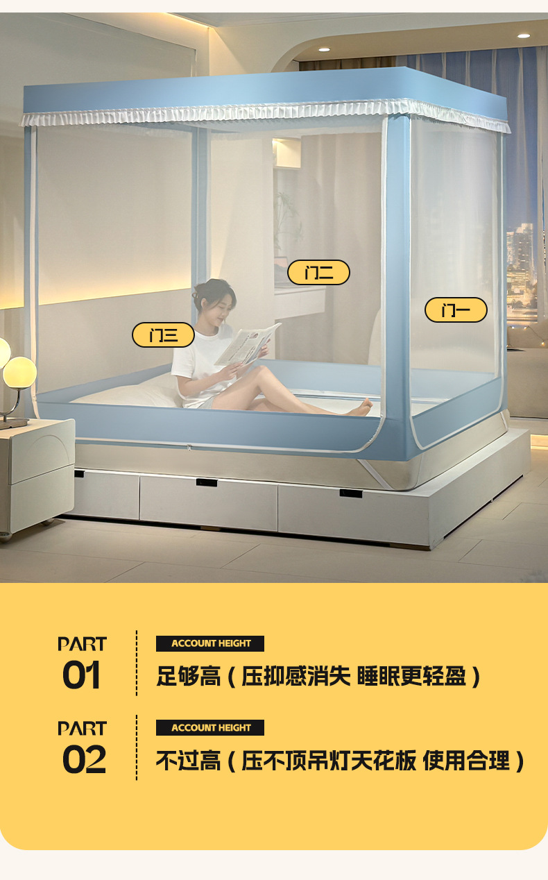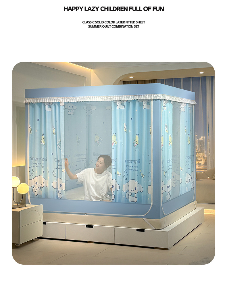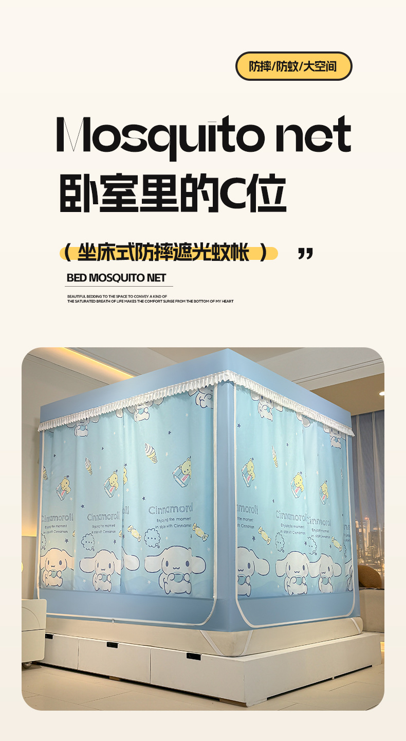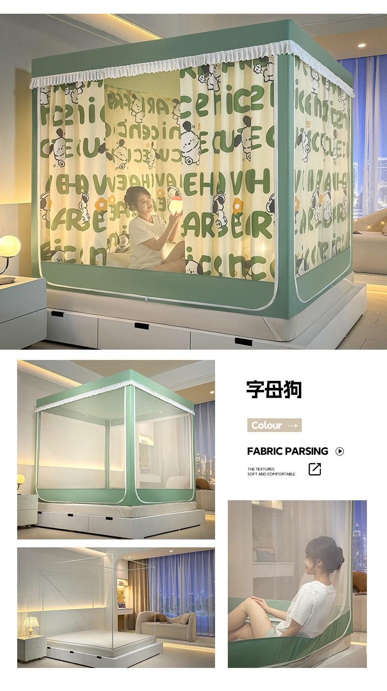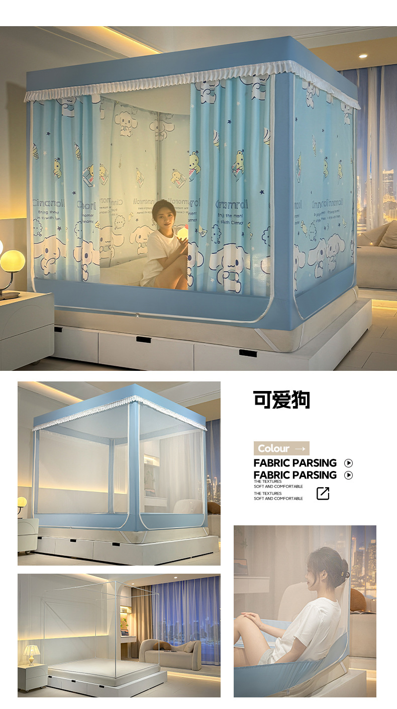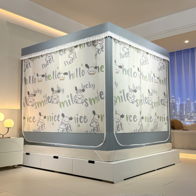 가정용 만화 모기장 차광 새로운 방진 탑 암호화 침대 커튼 지퍼 침실 침대 커튼 방진 3 도어 모기장스토어 가기