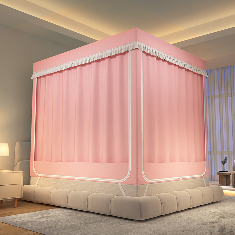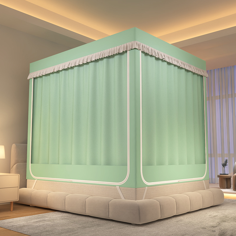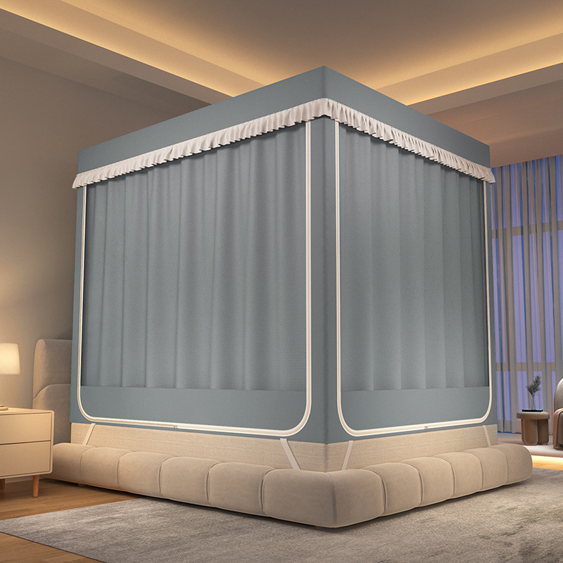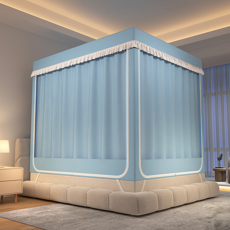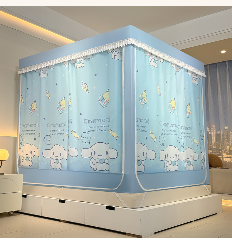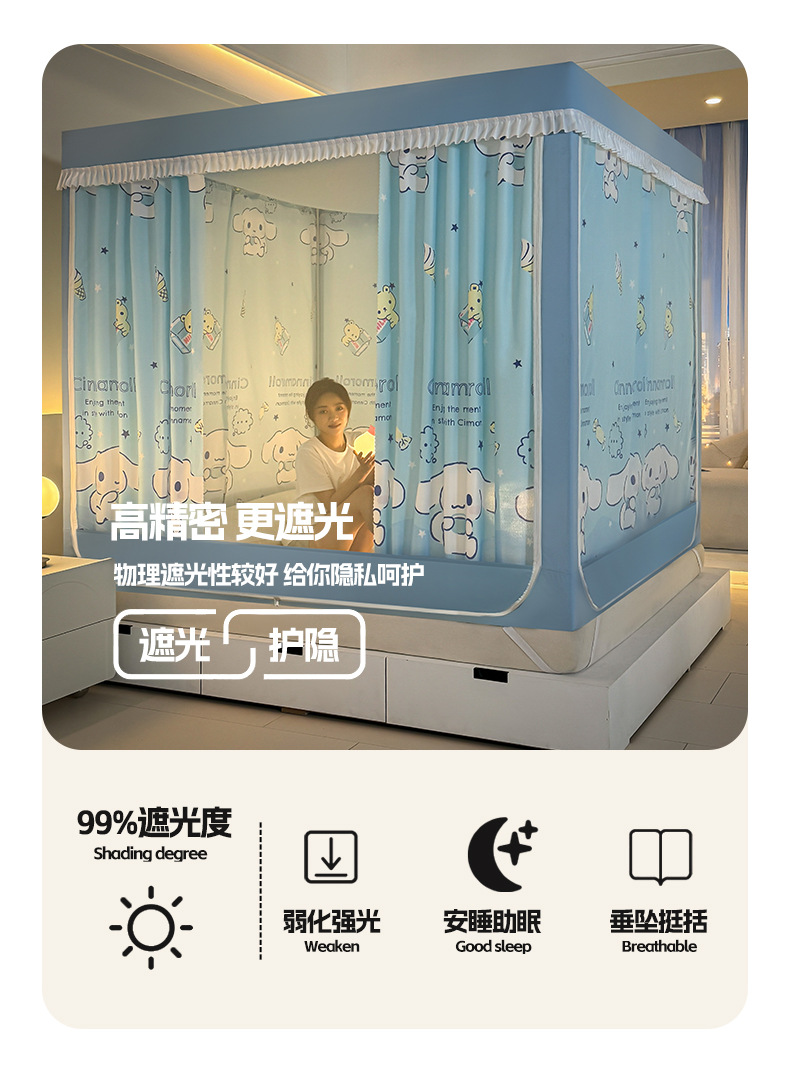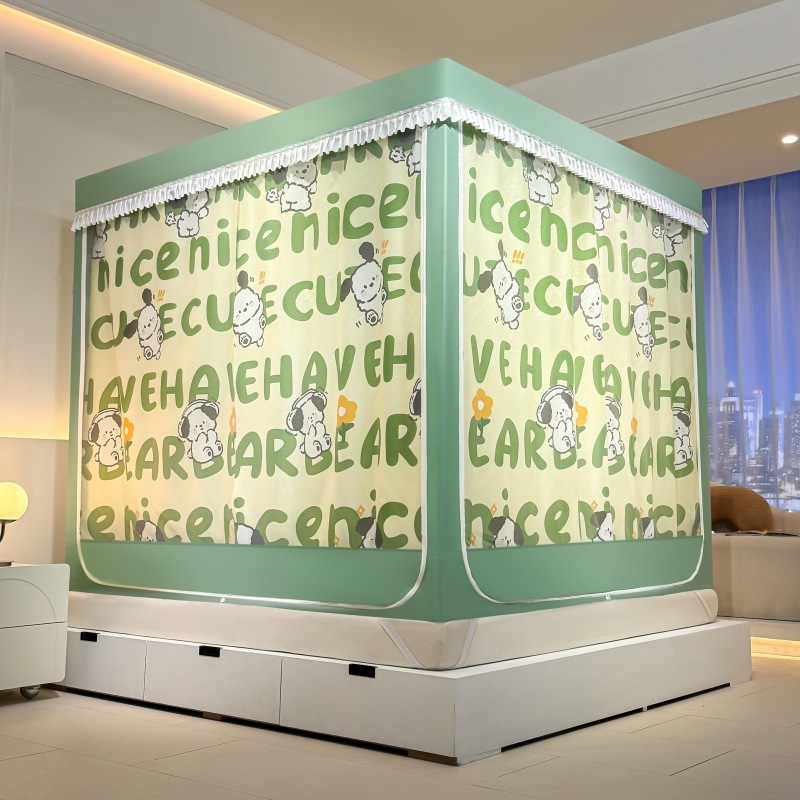 가정용 만화 모기장 차광 새로운 방진 탑 암호화 침대 커튼 지퍼 침실 침대 커튼 방진 3 도어 모기장